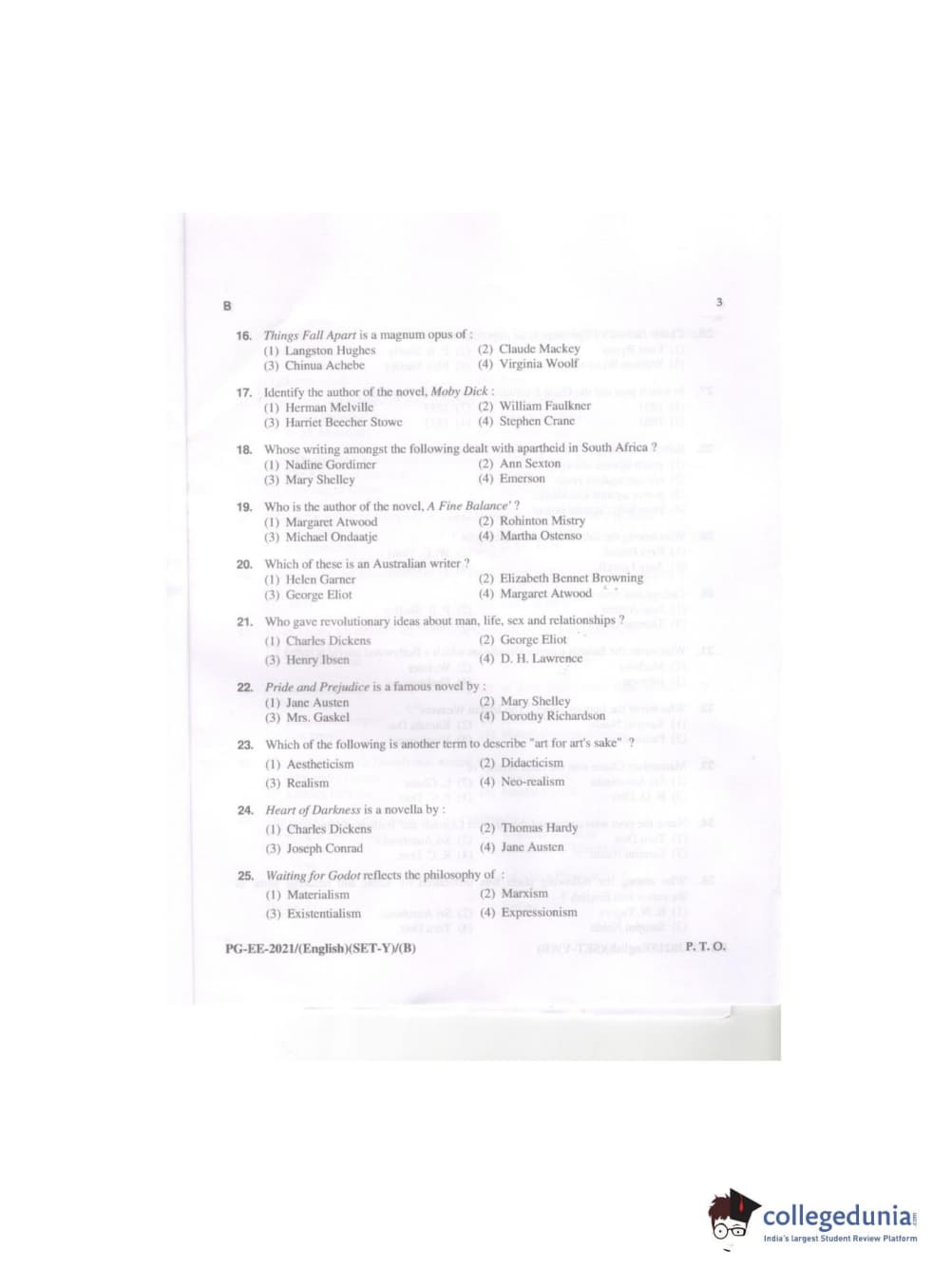 MDUCEE 2021 M.A. (English) Set B Question Paper with Answer Key PDFs