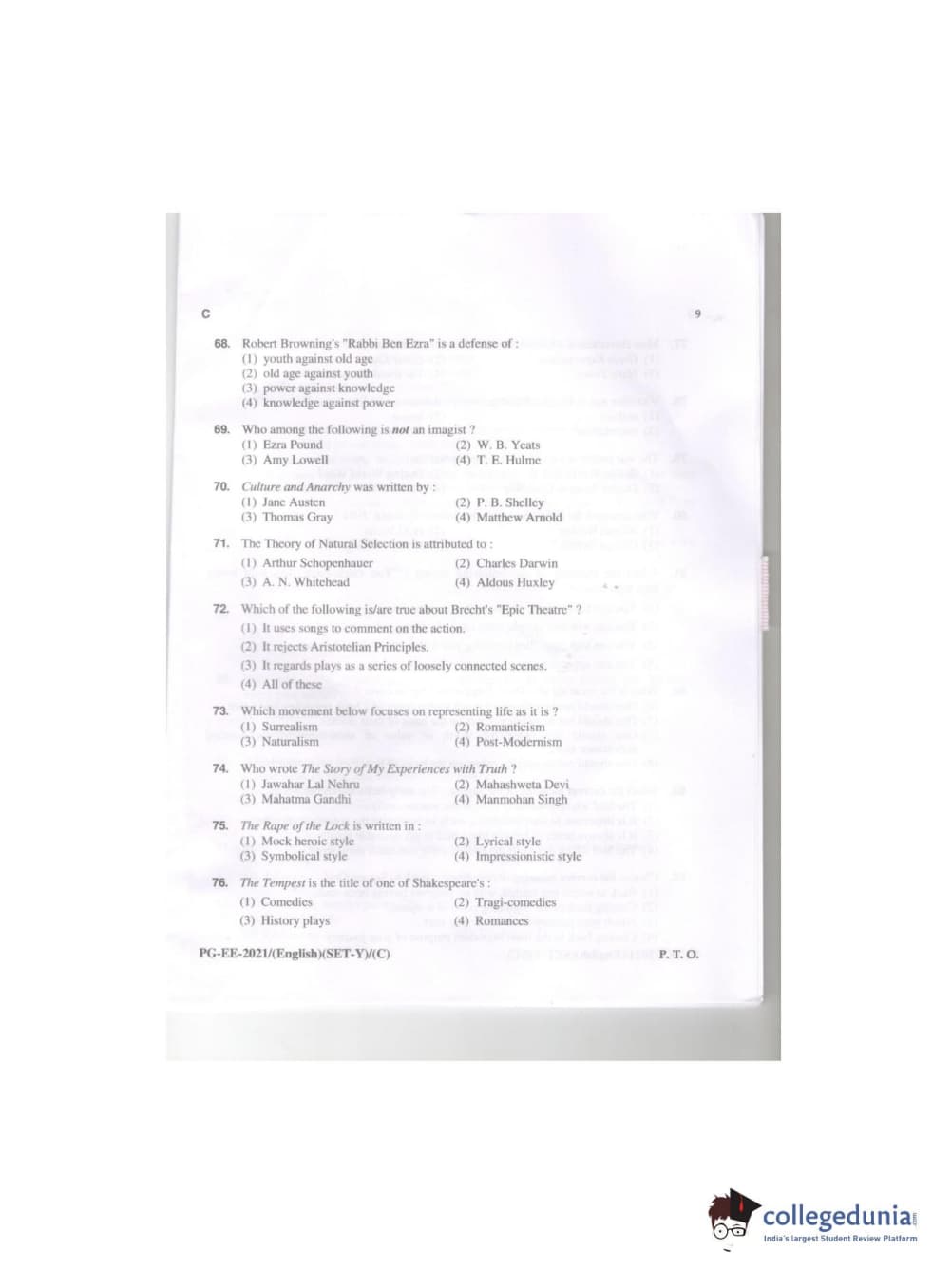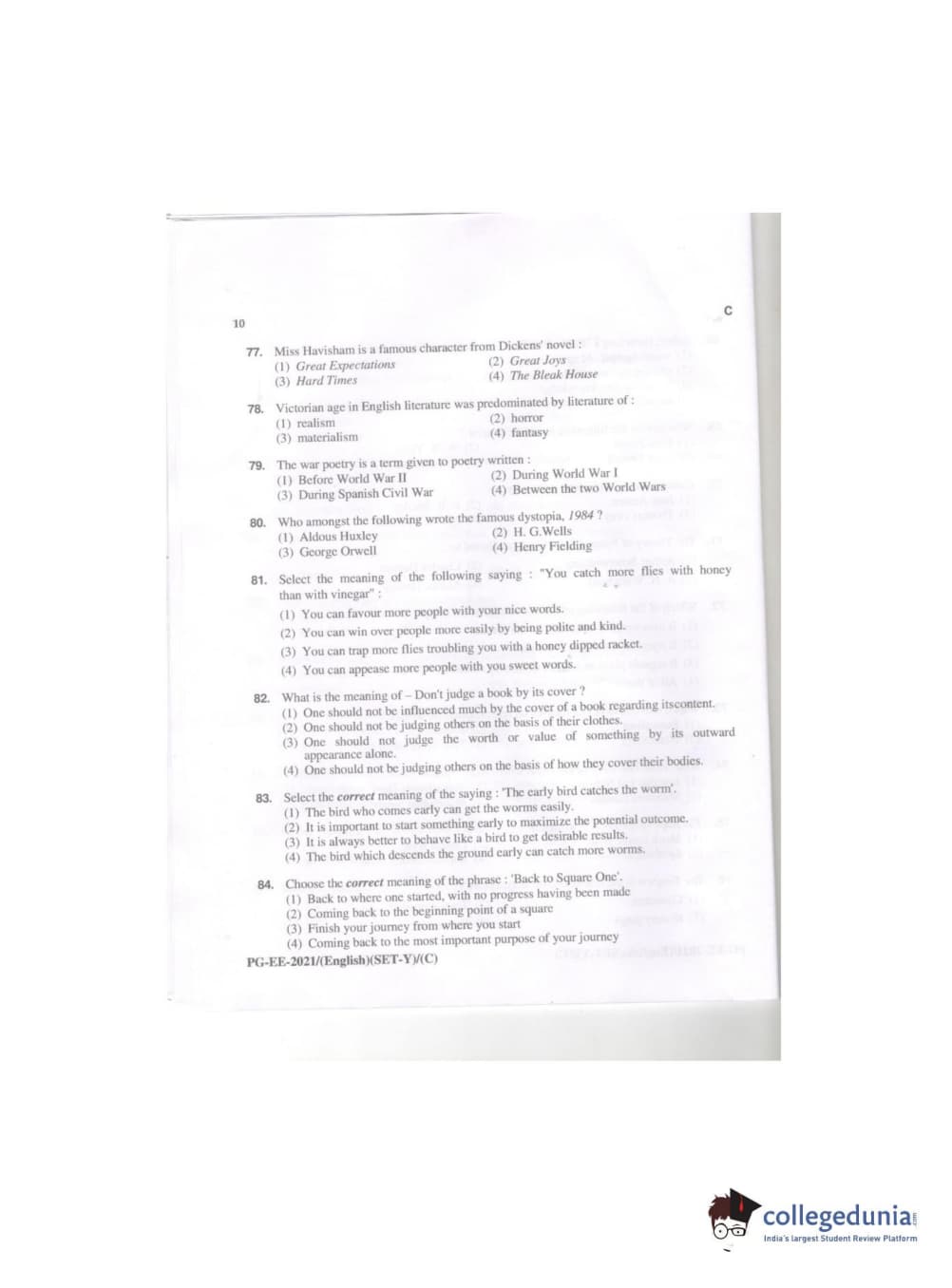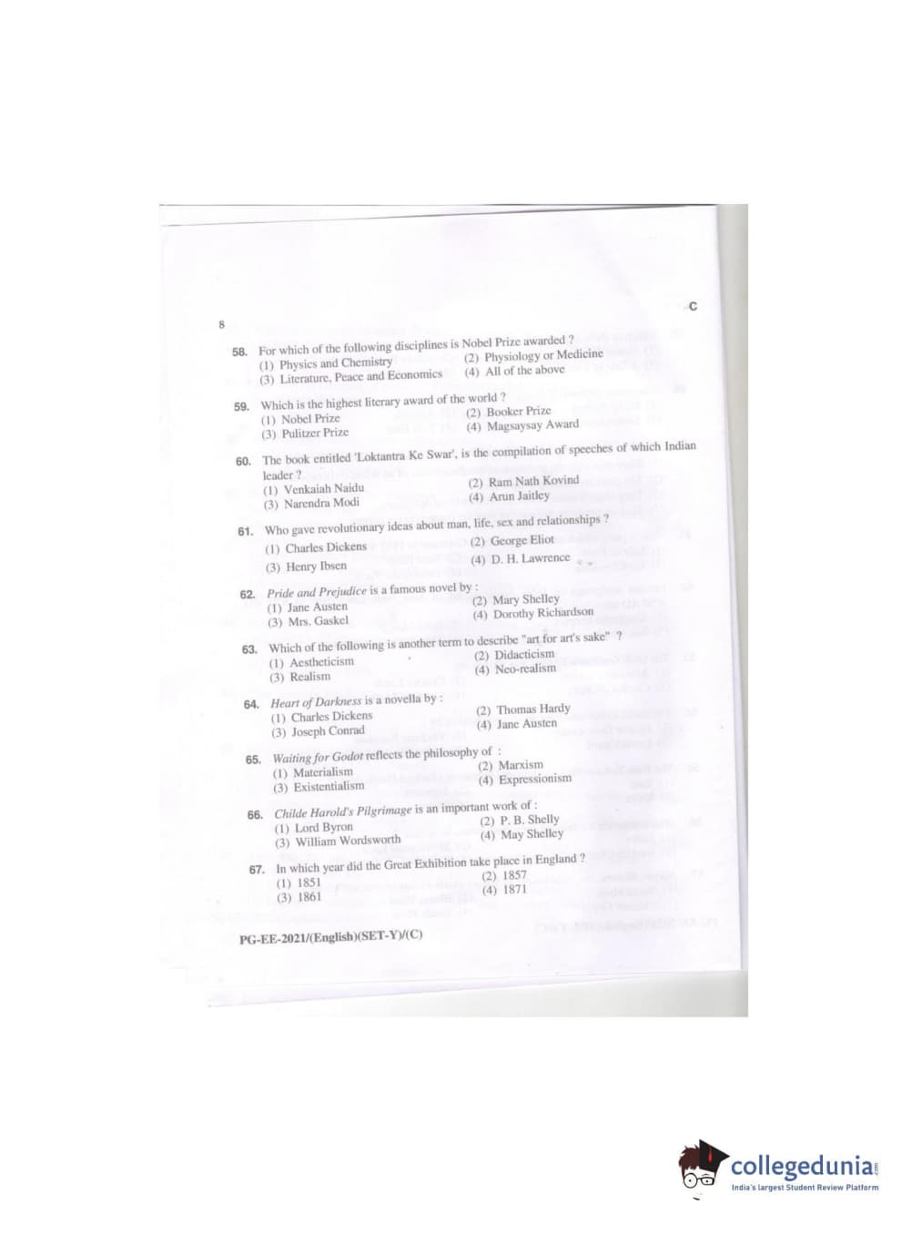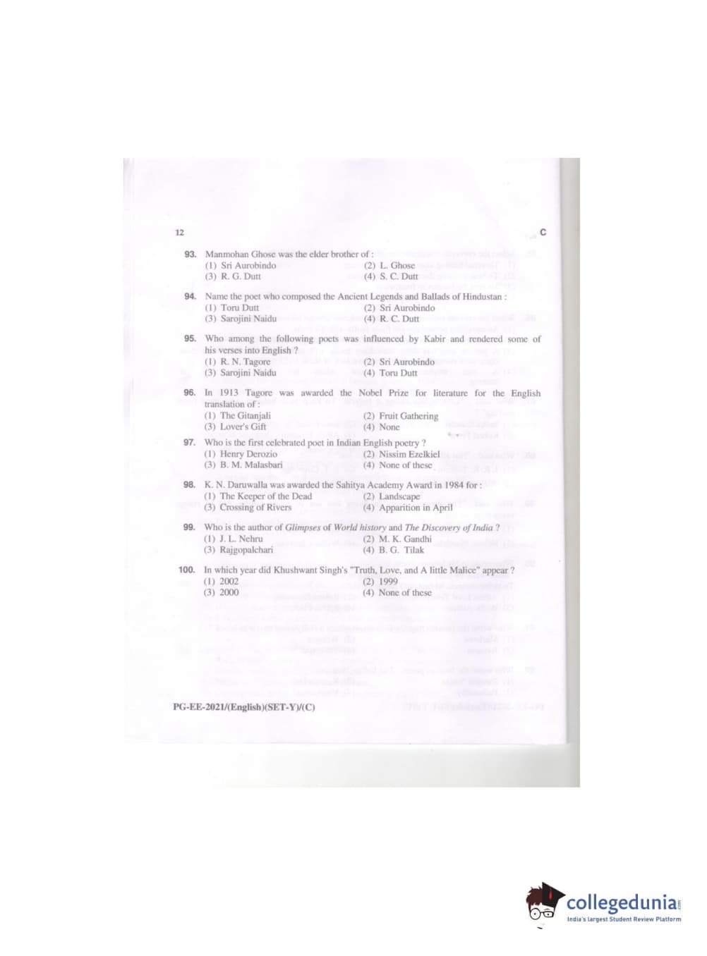 MDUCEE 2021 M.A. (English) Set C Question Paper with Answer Key PDFs