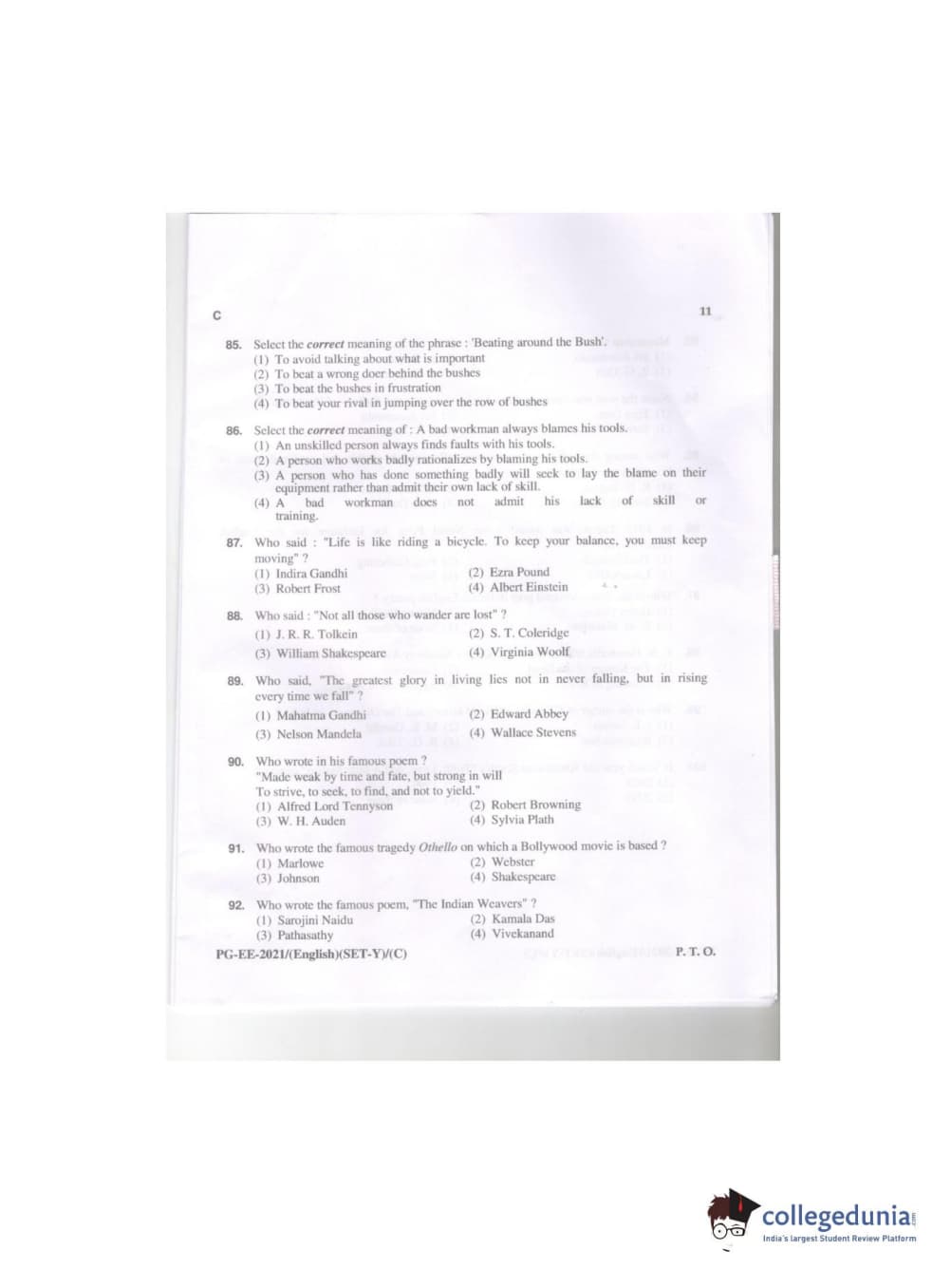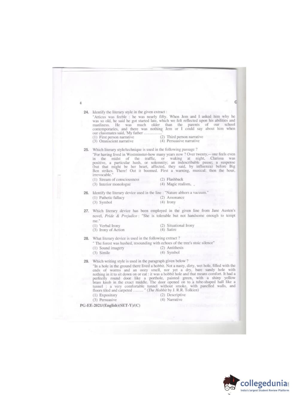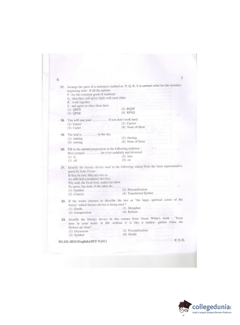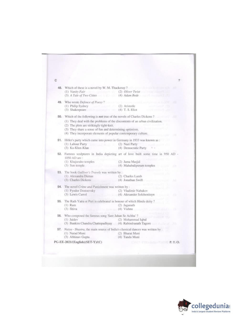 MDUCEE 2021 M.A. (English) Set C Question Paper with Answer Key PDFs