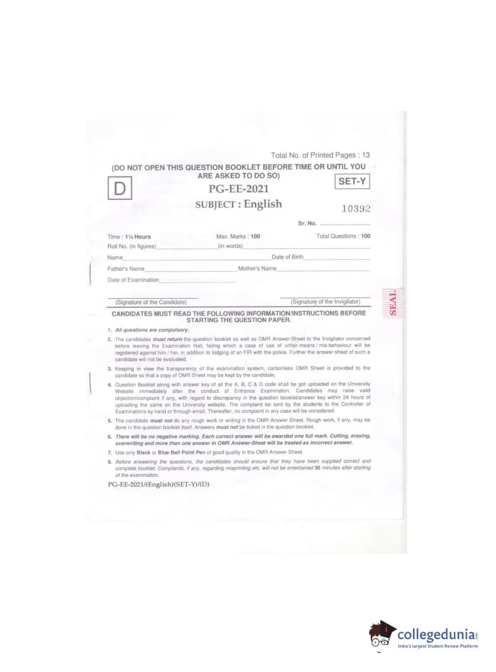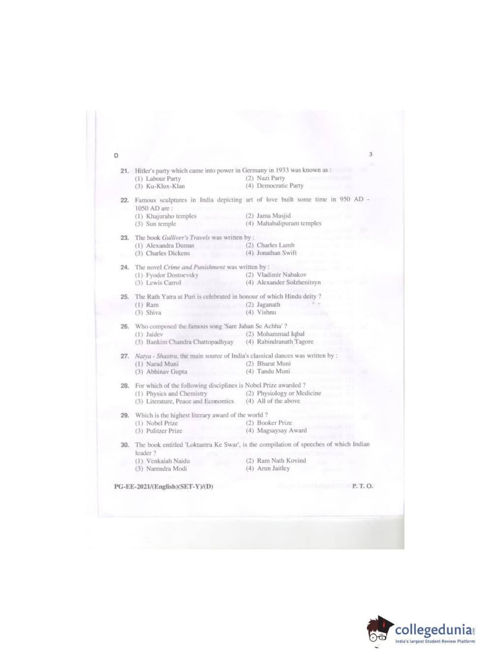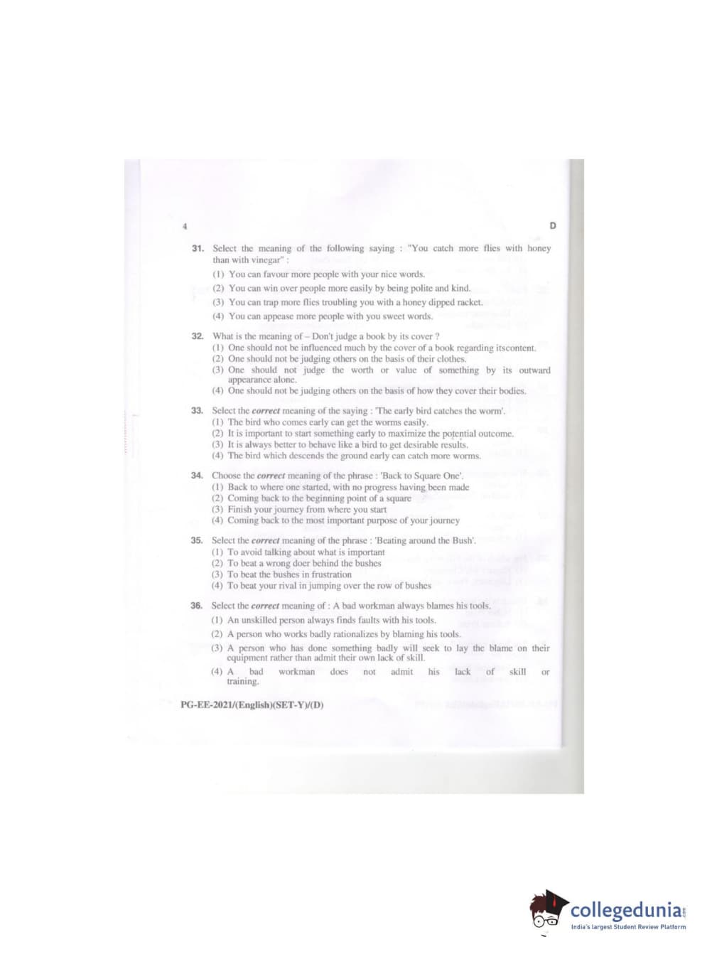| MDUCEE 2021 M.A. (English) Set D Question Paper PDF | MDUCEE 2021 M.A. (English) Set D Answer Key PDF |