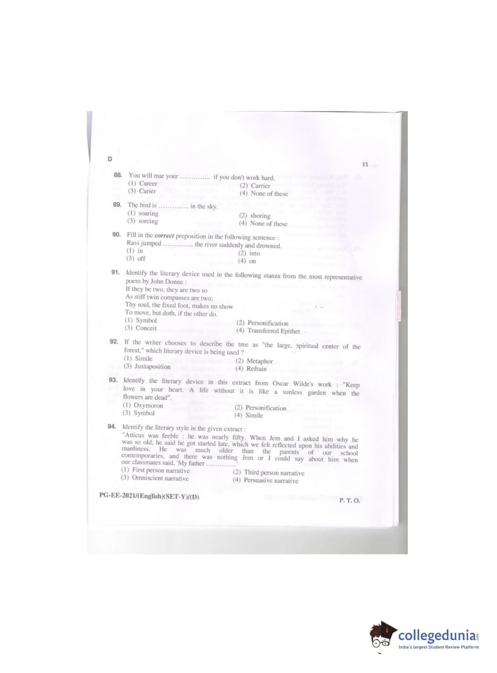 MDUCEE 2021 M.A. (English) Set D Question Paper with Answer Key PDFs