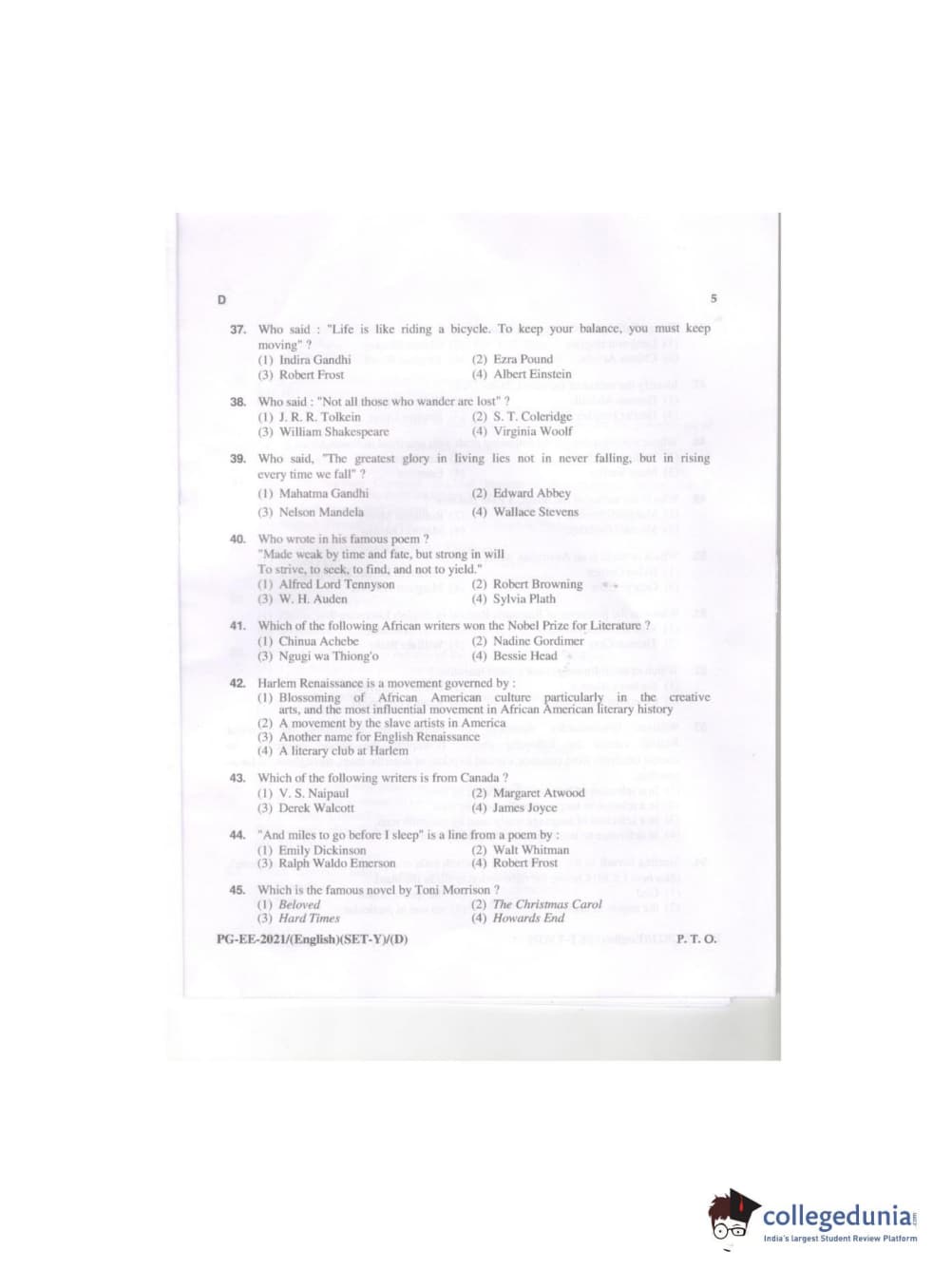 MDUCEE 2021 M.A. (English) Set D Question paper with answer key pdf conducted on September 21, 2021 is available for download. The exam was successfully organized by Maharishi Dayanand University. The question paper comprised a total of 100 questions.