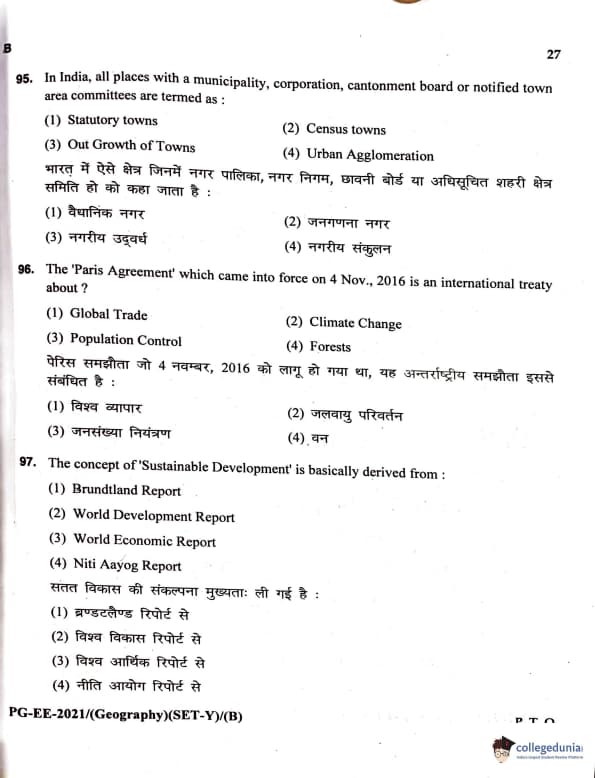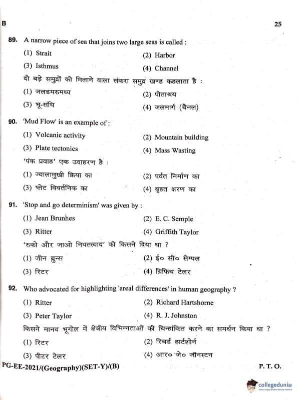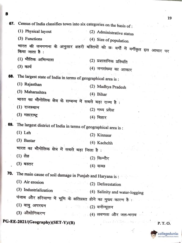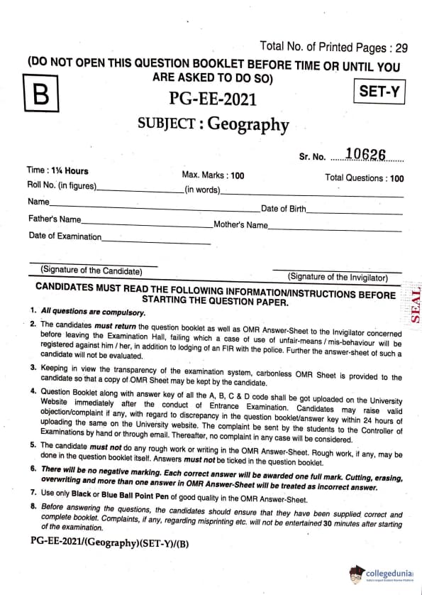 MDUCEE 2021 M.A. Geography Question paper with answer key pdf for Set B conducted on September 23, 2021 is available for download. The exam was successfully organized by Maharishi Dayanand University. The question paper comprised a total of 100 questions.