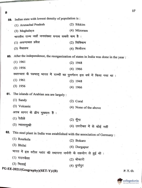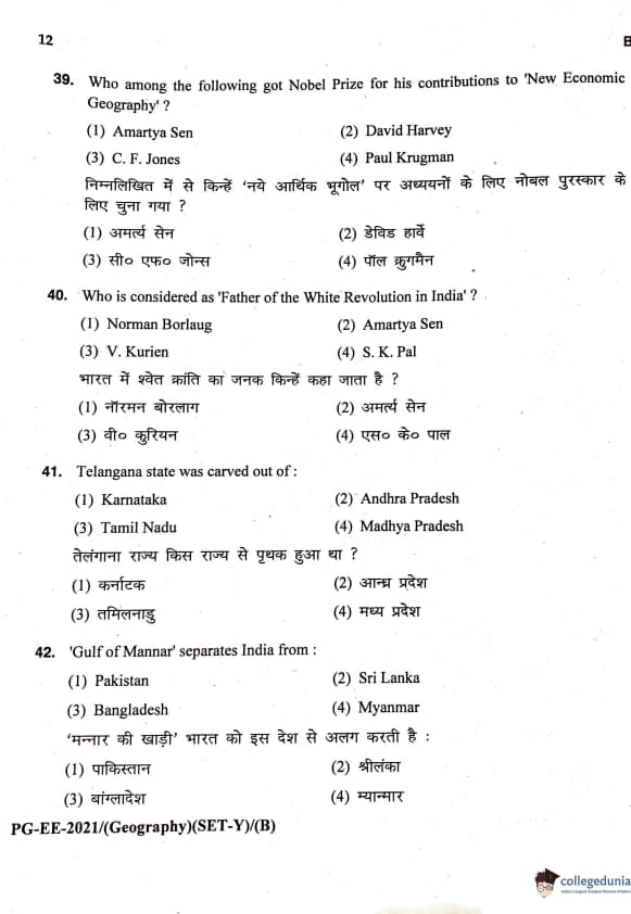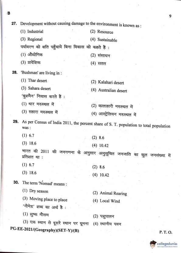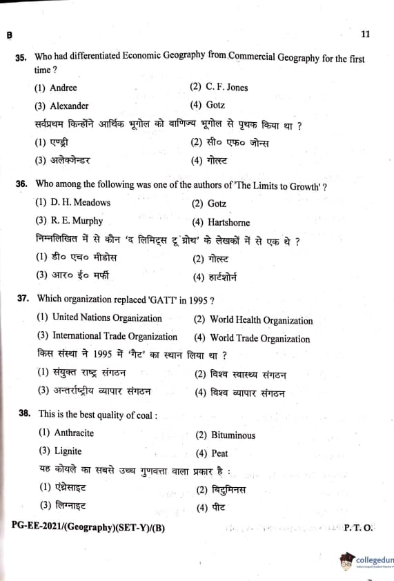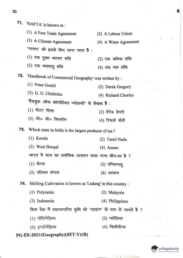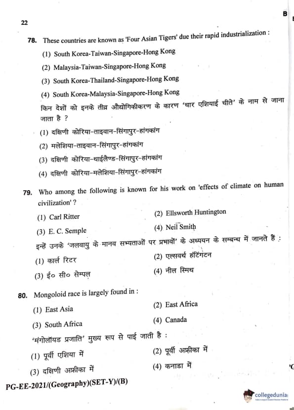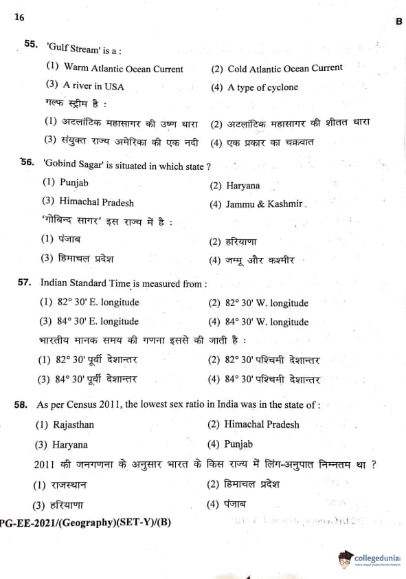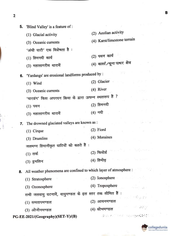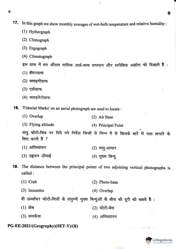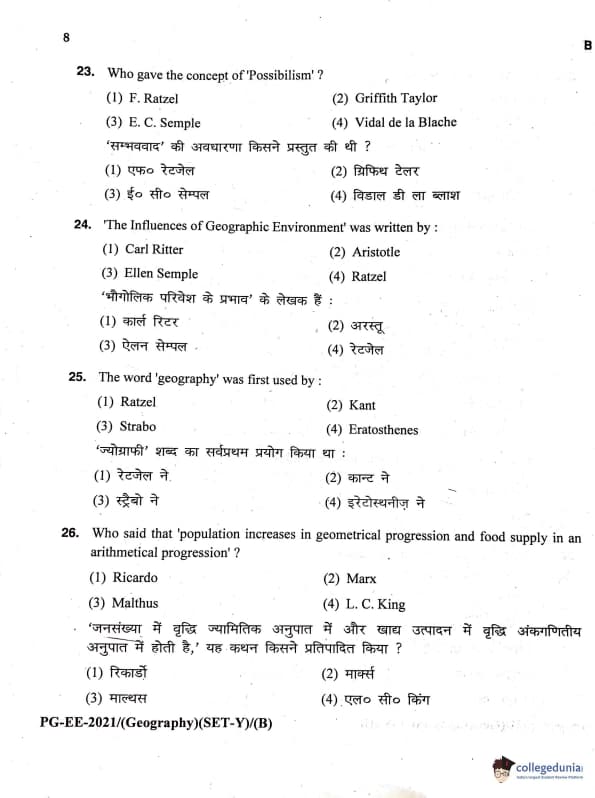 MDUCEE 2021 M.A. Geography Question Paper with Answer Key PDFs Set B