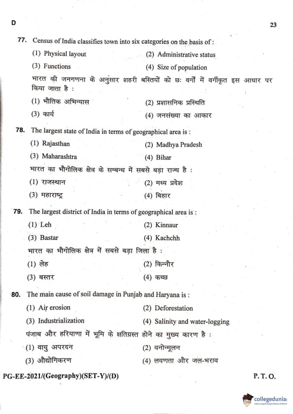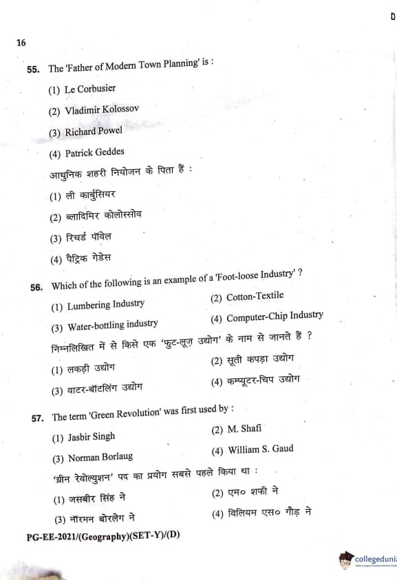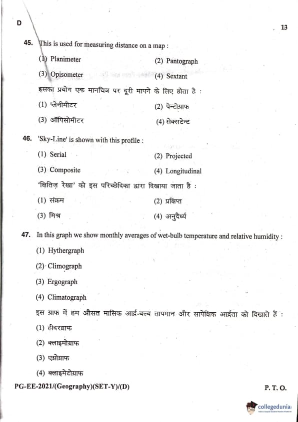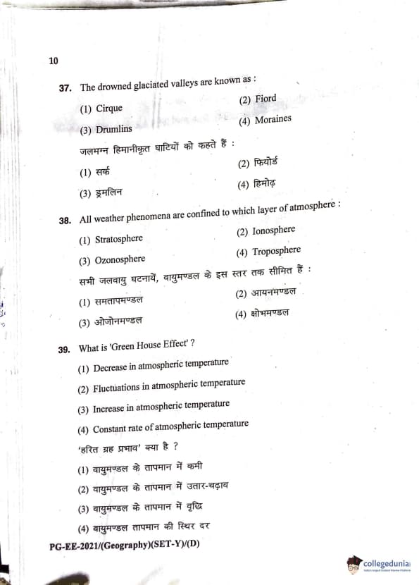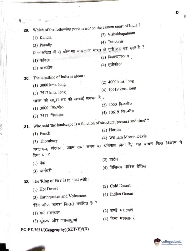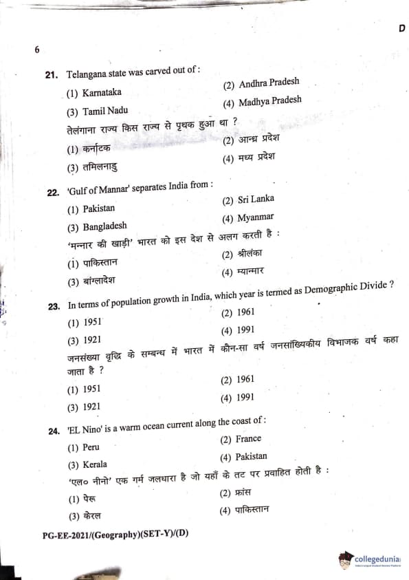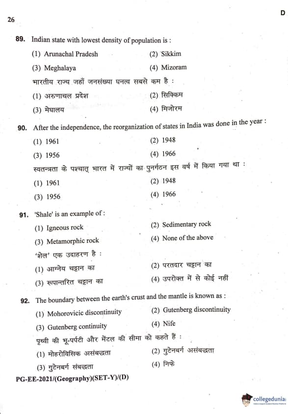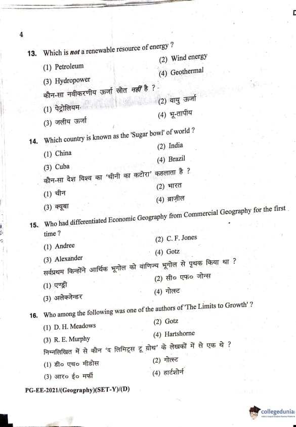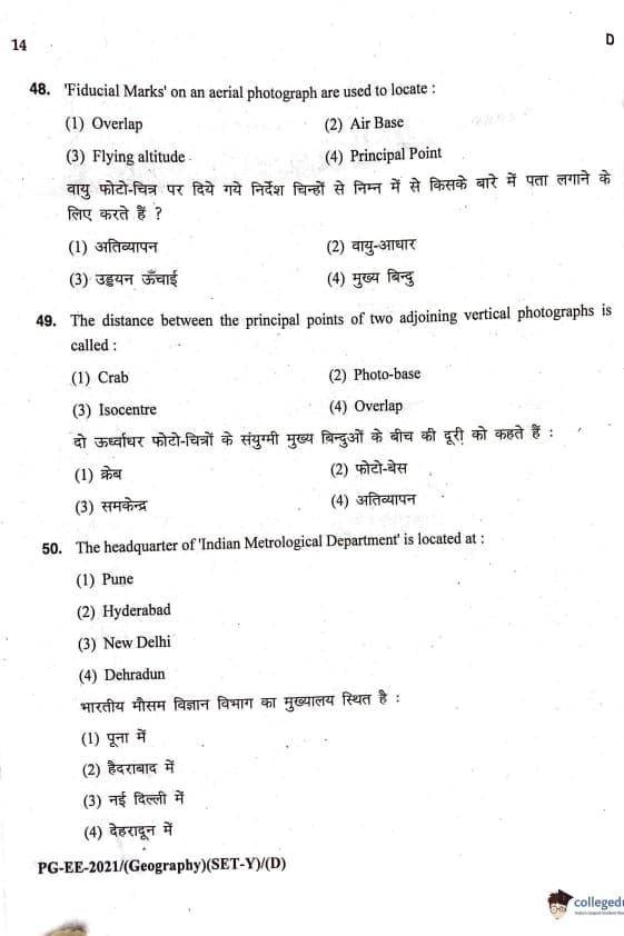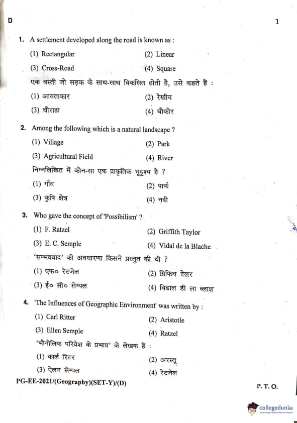 MDUCEE 2021 M.A. Geography Question Paper with Answer Key PDFs Set D