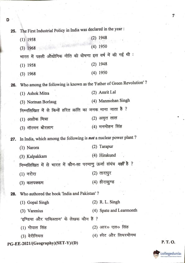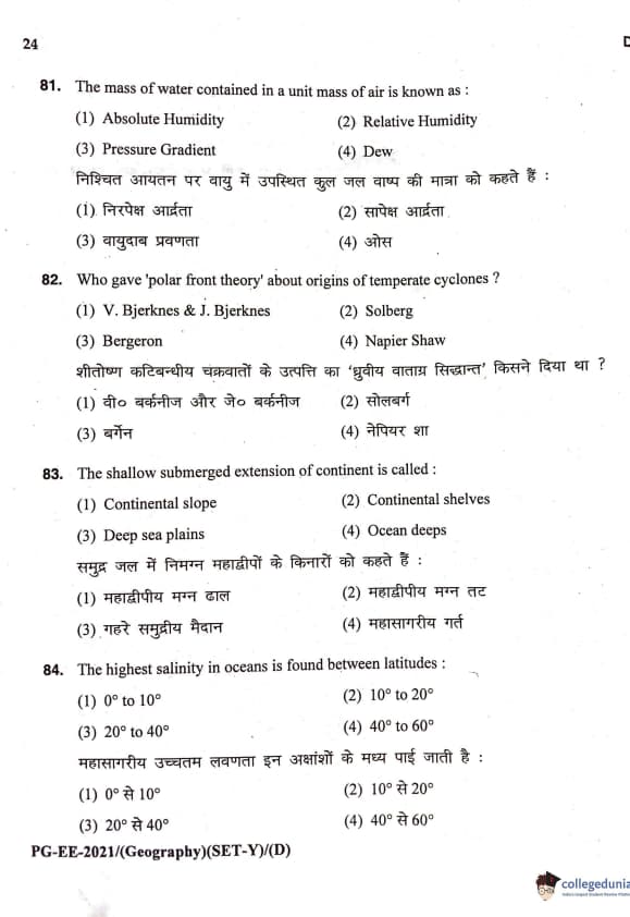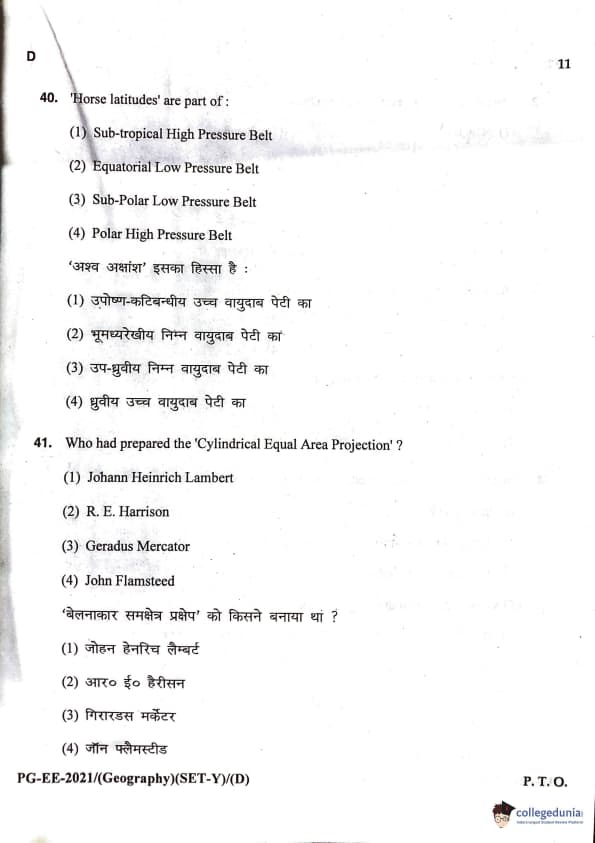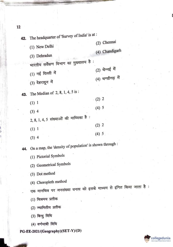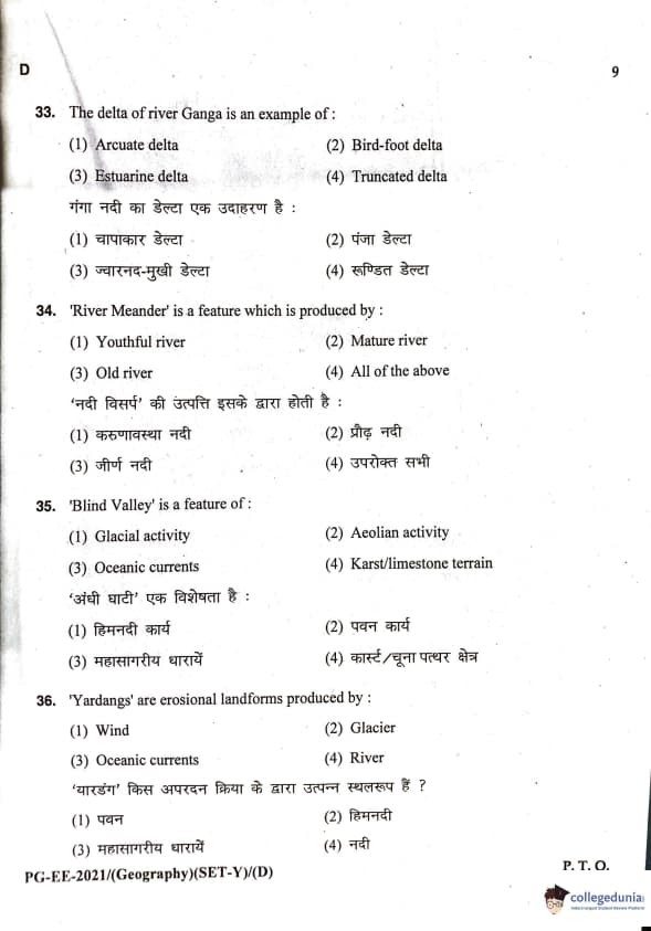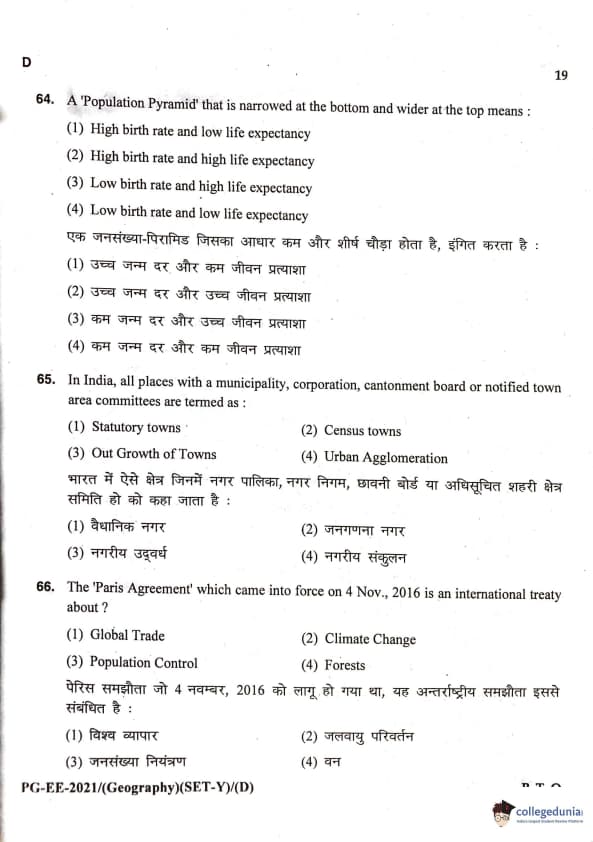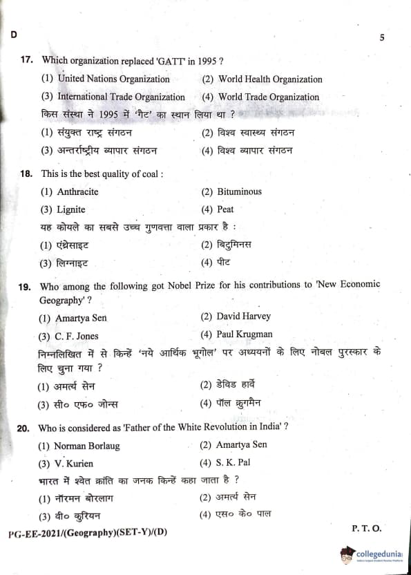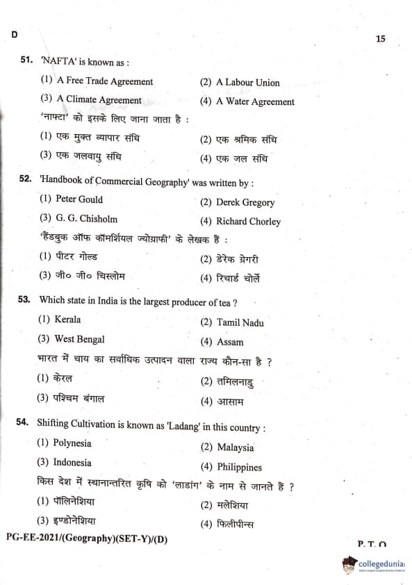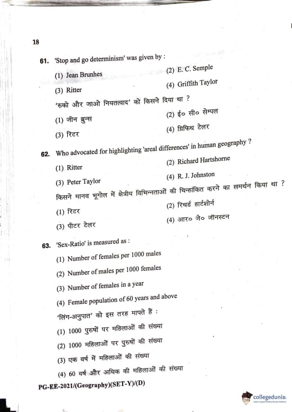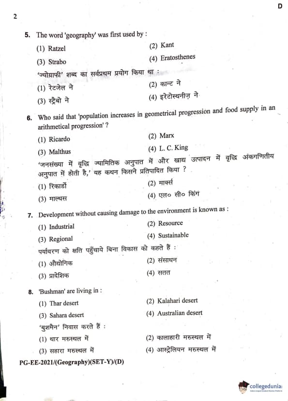 MDUCEE 2021 M.A. Geography Question Paper with Answer Key PDFs Set D