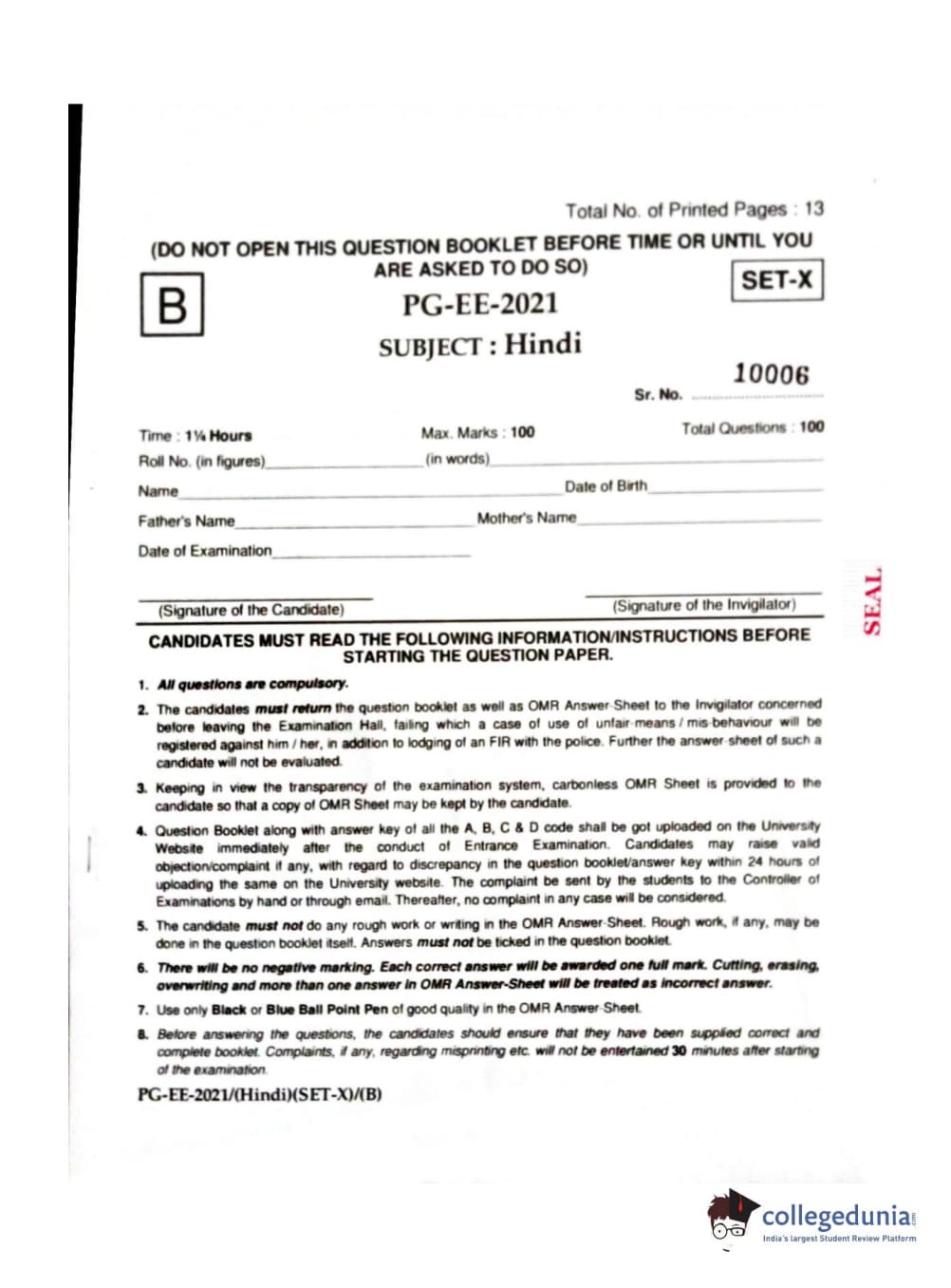 | MDUCEE 2021 M.A. Hindi Set B Question Paper PDF | MDUCEE 2021 M.A. Hindi Set B Answer Key PDF |