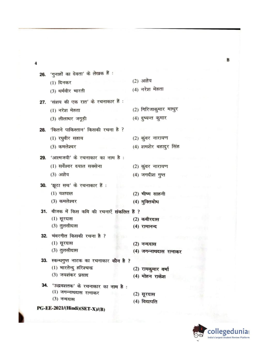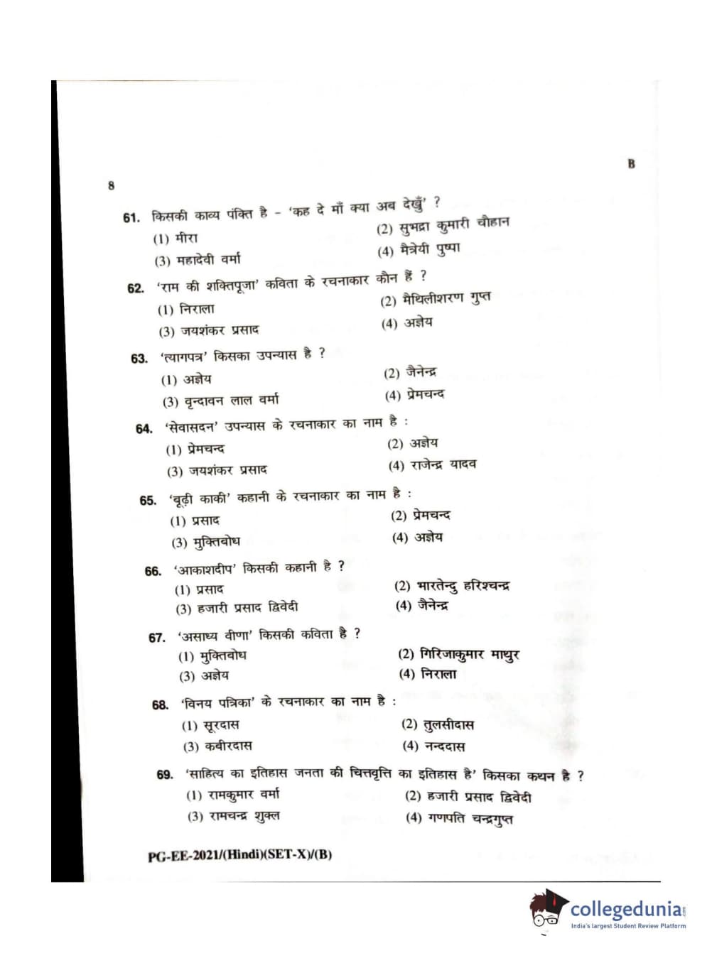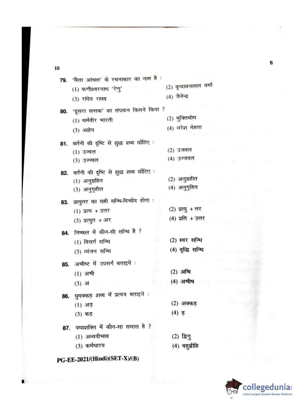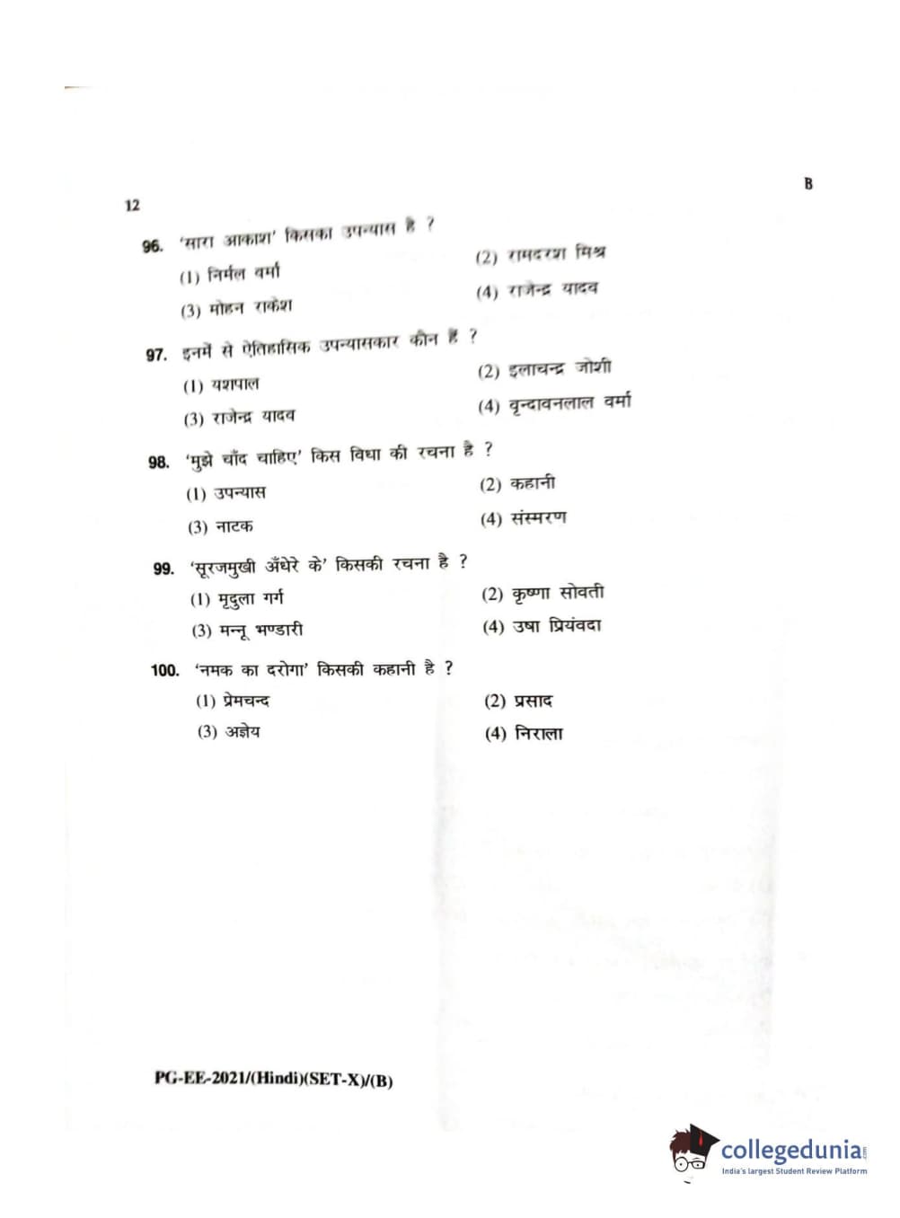 MDUCEE 2021 M.A. Hindi Set B Question Paper with Answer Key PDFs