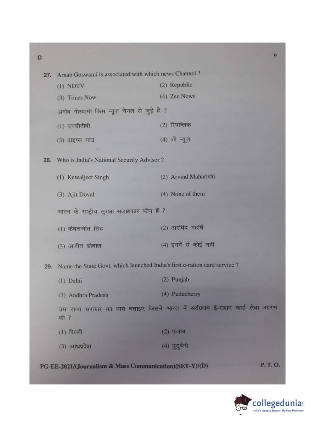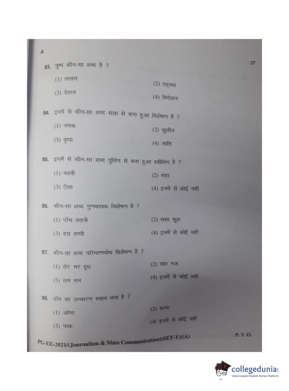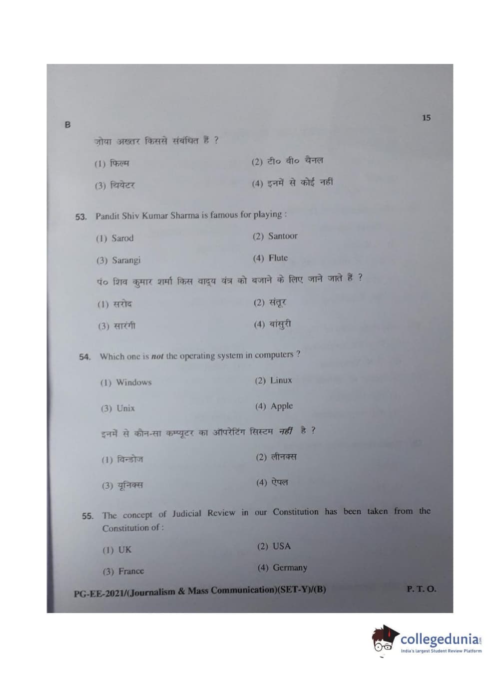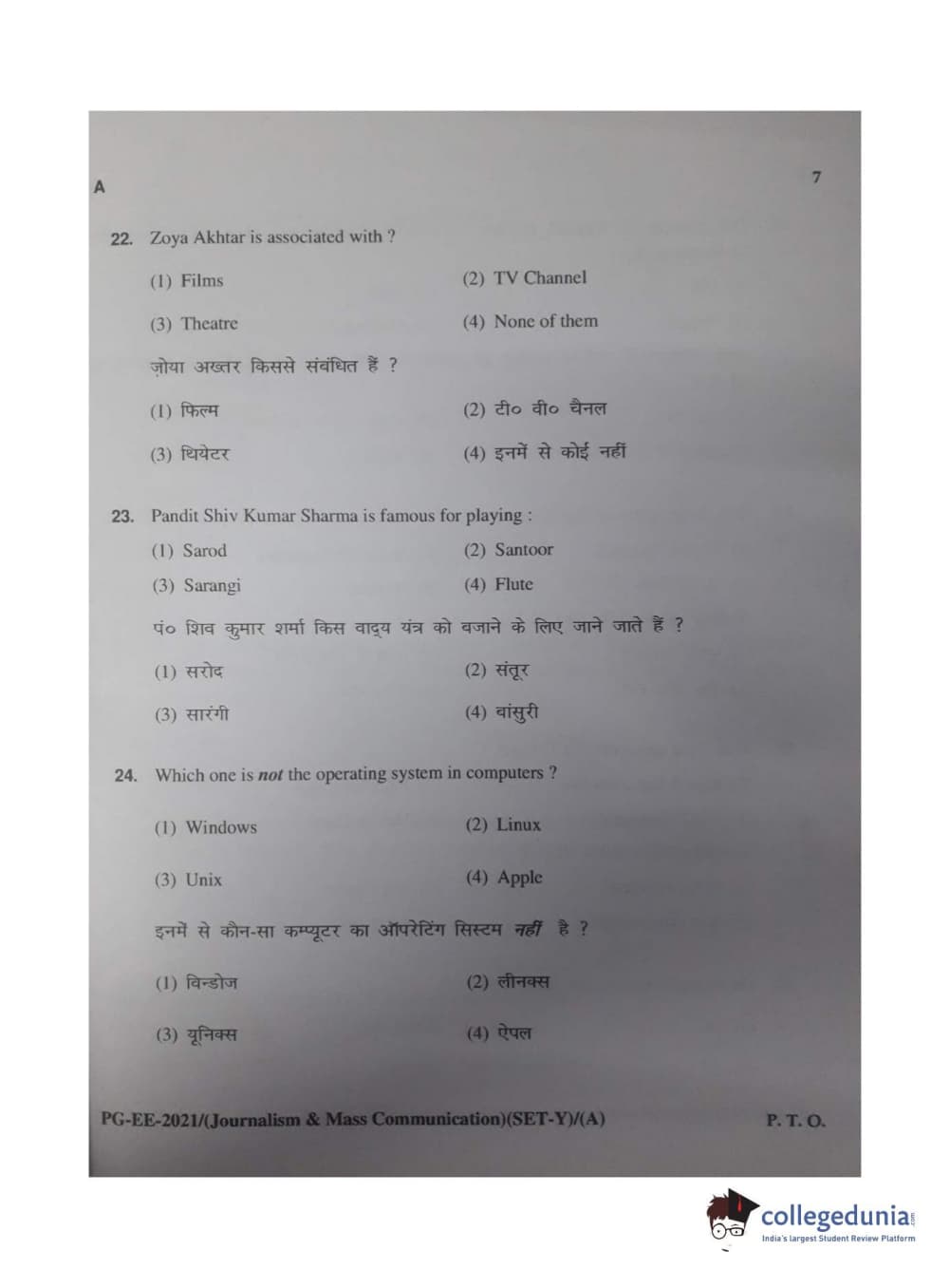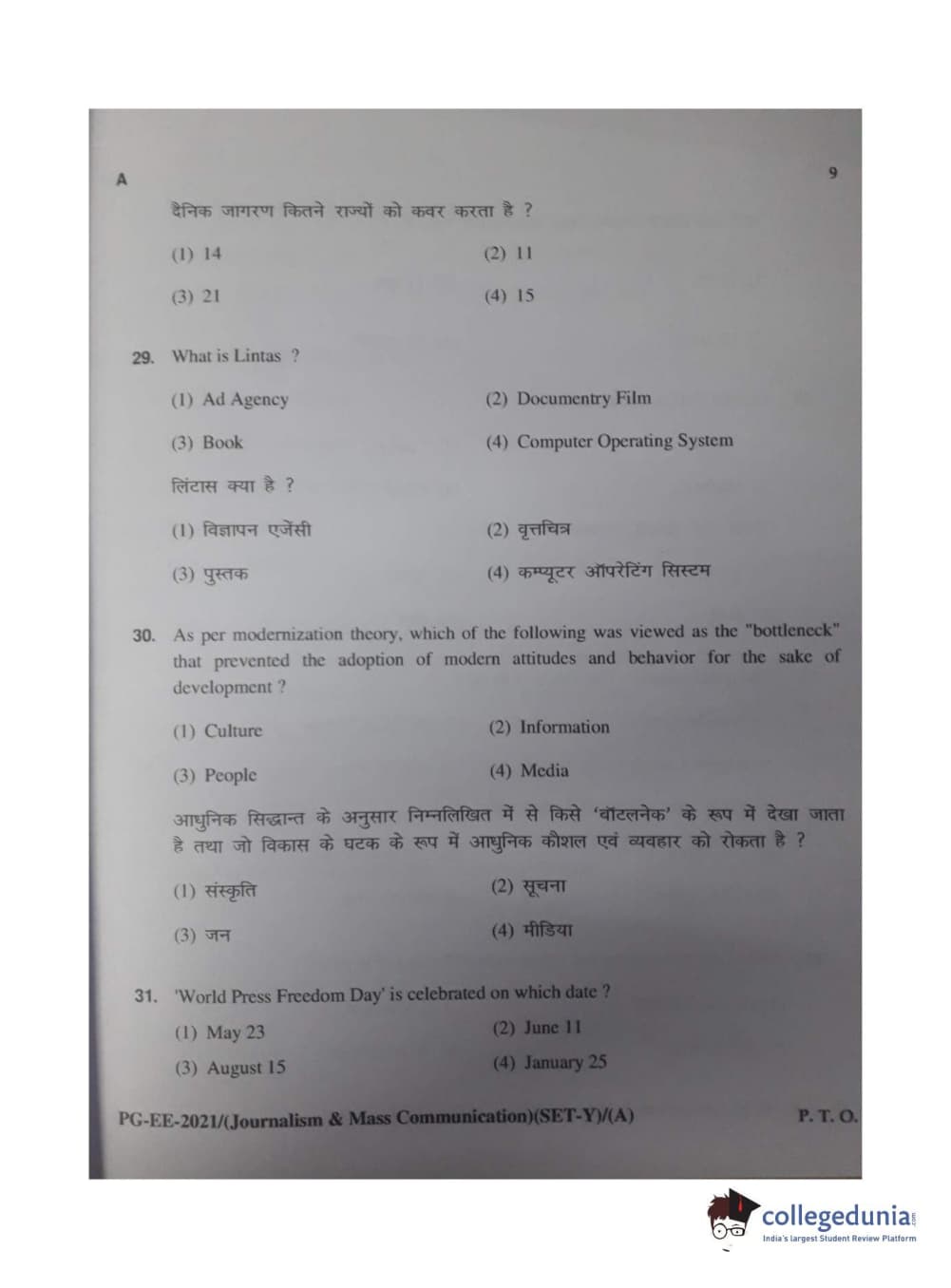 MDUCEE 2021 MA (JMC) Question paper with answer key pdf conducted on September 22, 2021 is available for download. The exam was successfully organized by Maharishi Dayanand University. The question paper comprised a total of 100 questions.