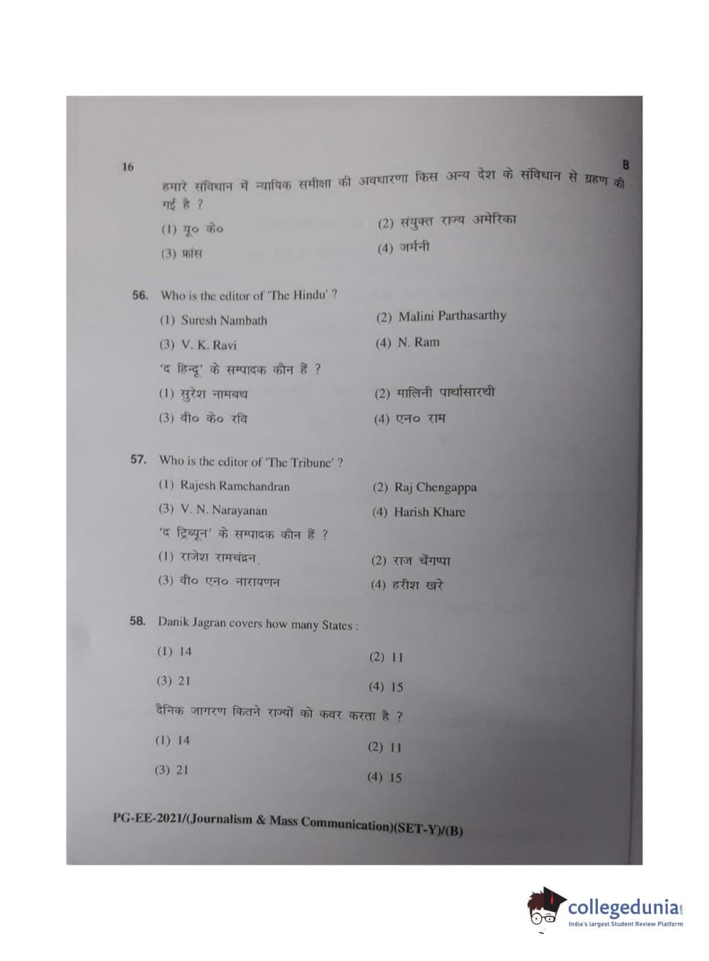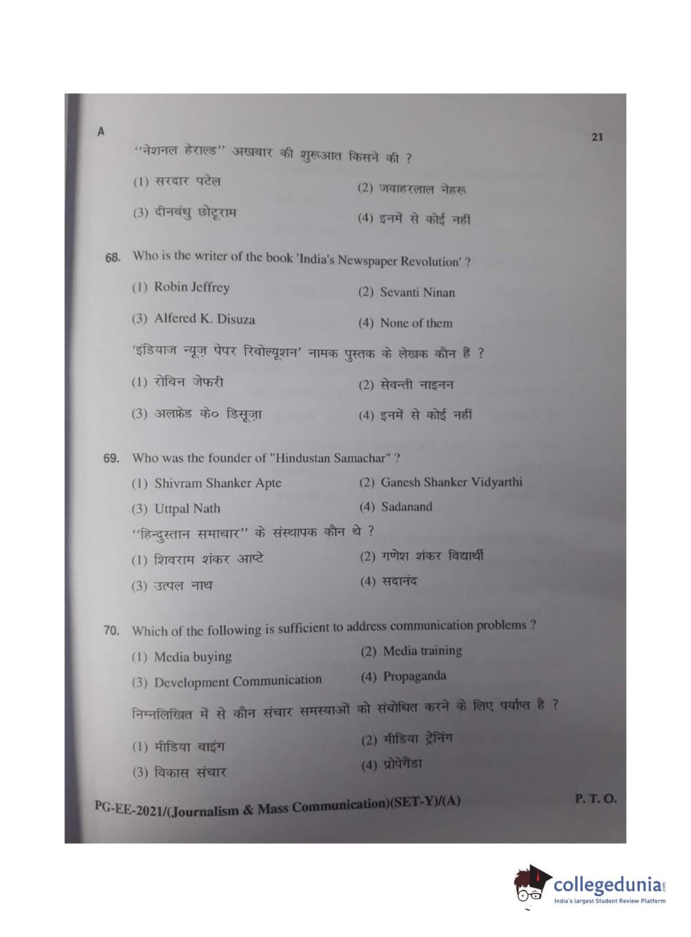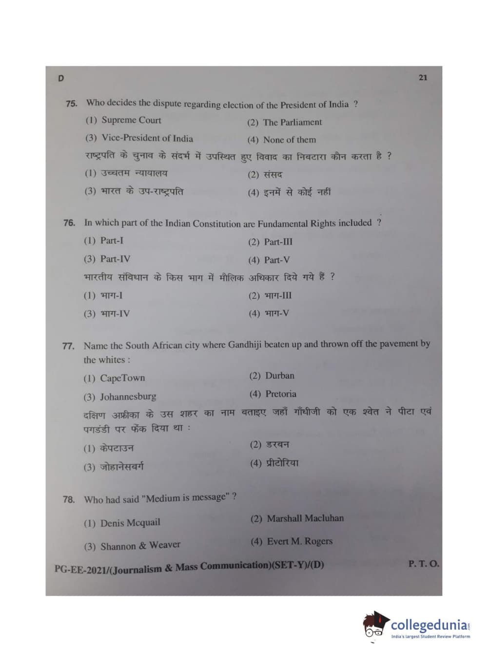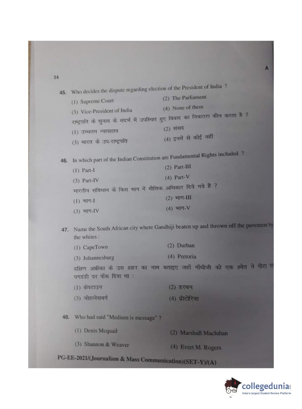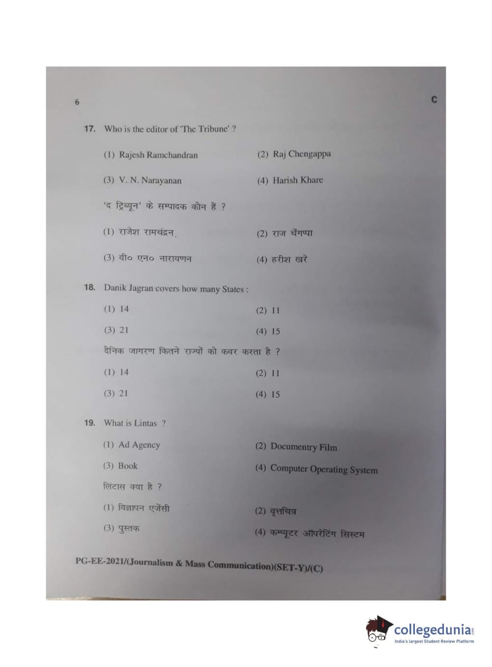 | MDUCEE 2021 MA (JMC) Question Paper PDF | MDUCEE 2021 MA (JMC) Answer Key PDF |