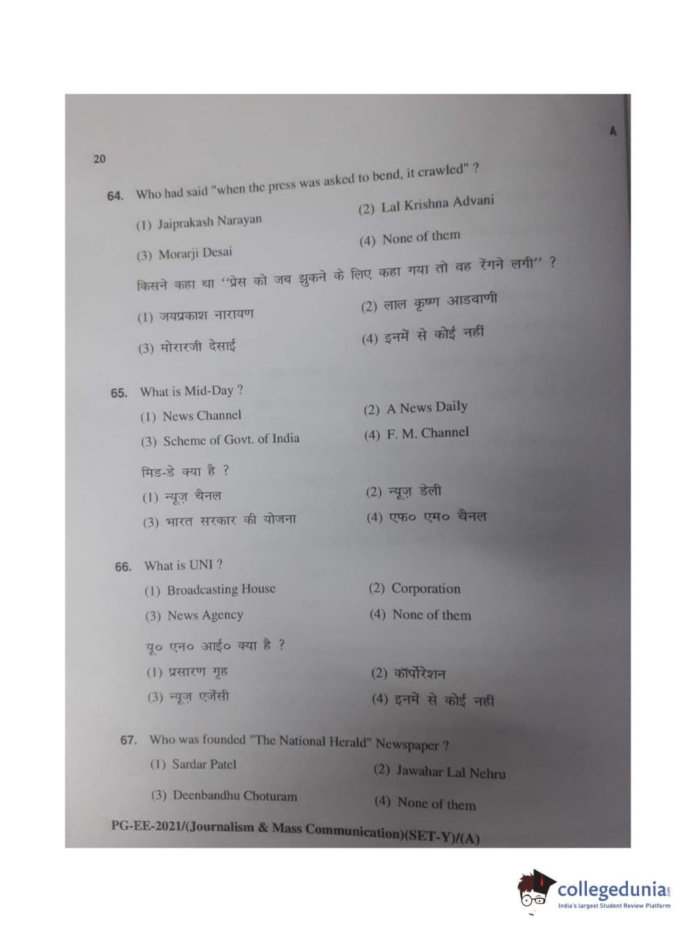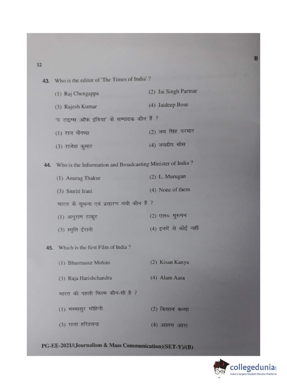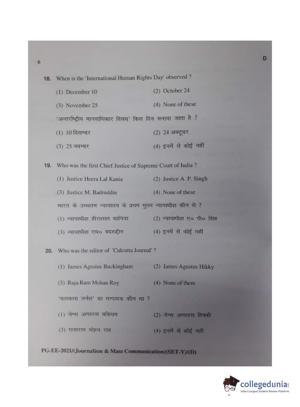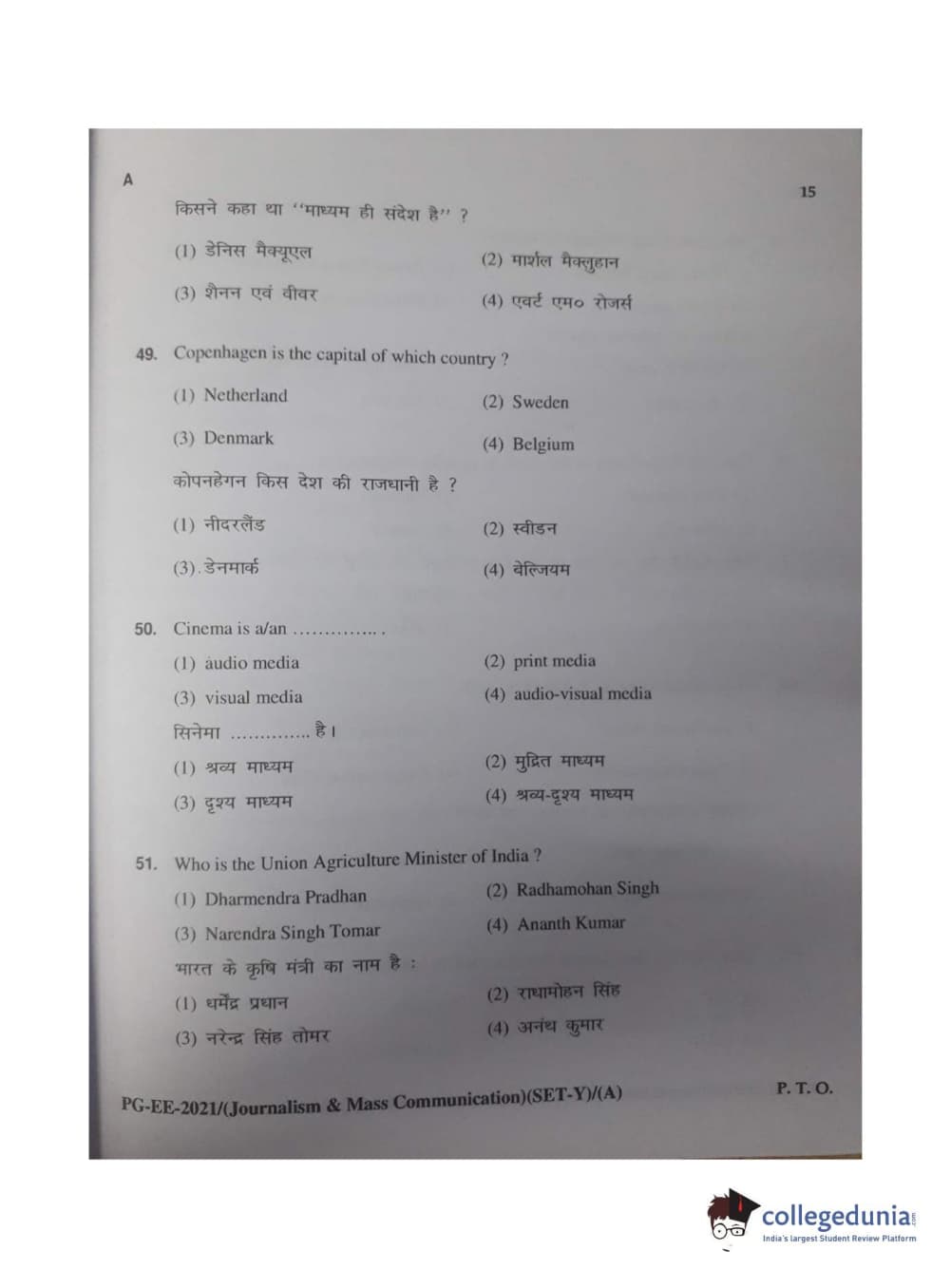 | MDUCEE 2021 MA (JMC) Question Paper PDF | MDUCEE 2021 MA (JMC) Answer Key PDF |