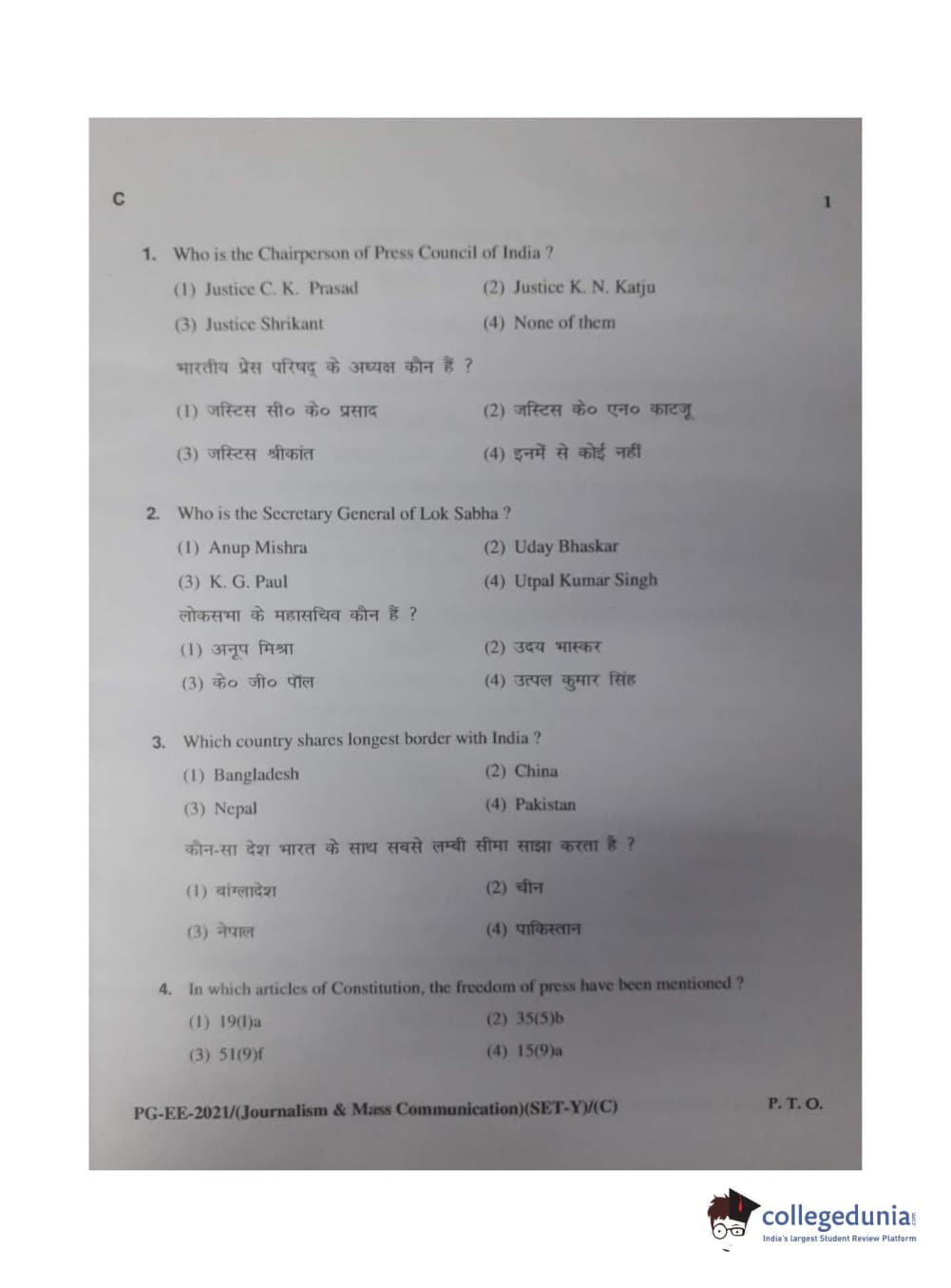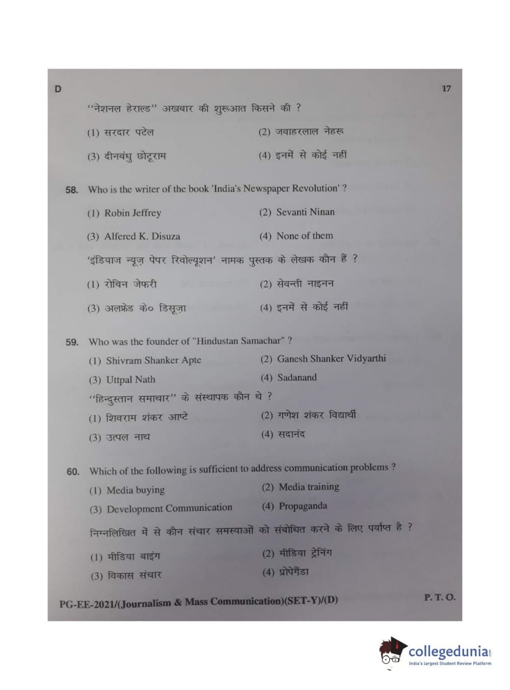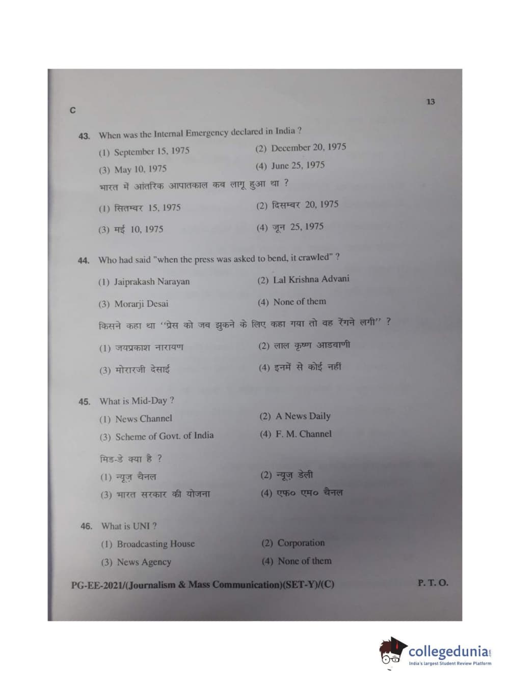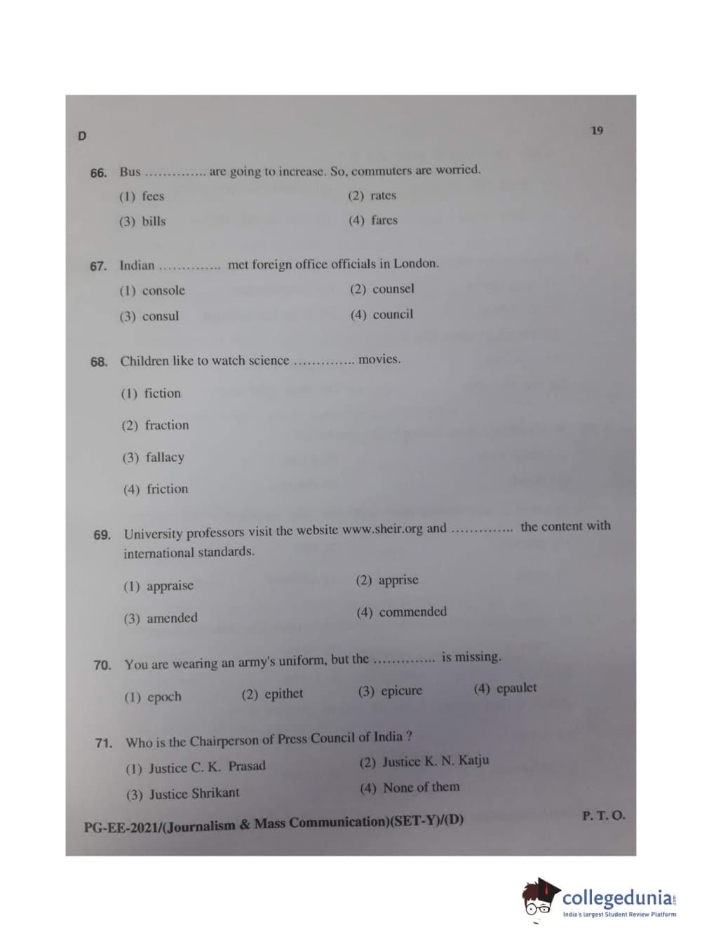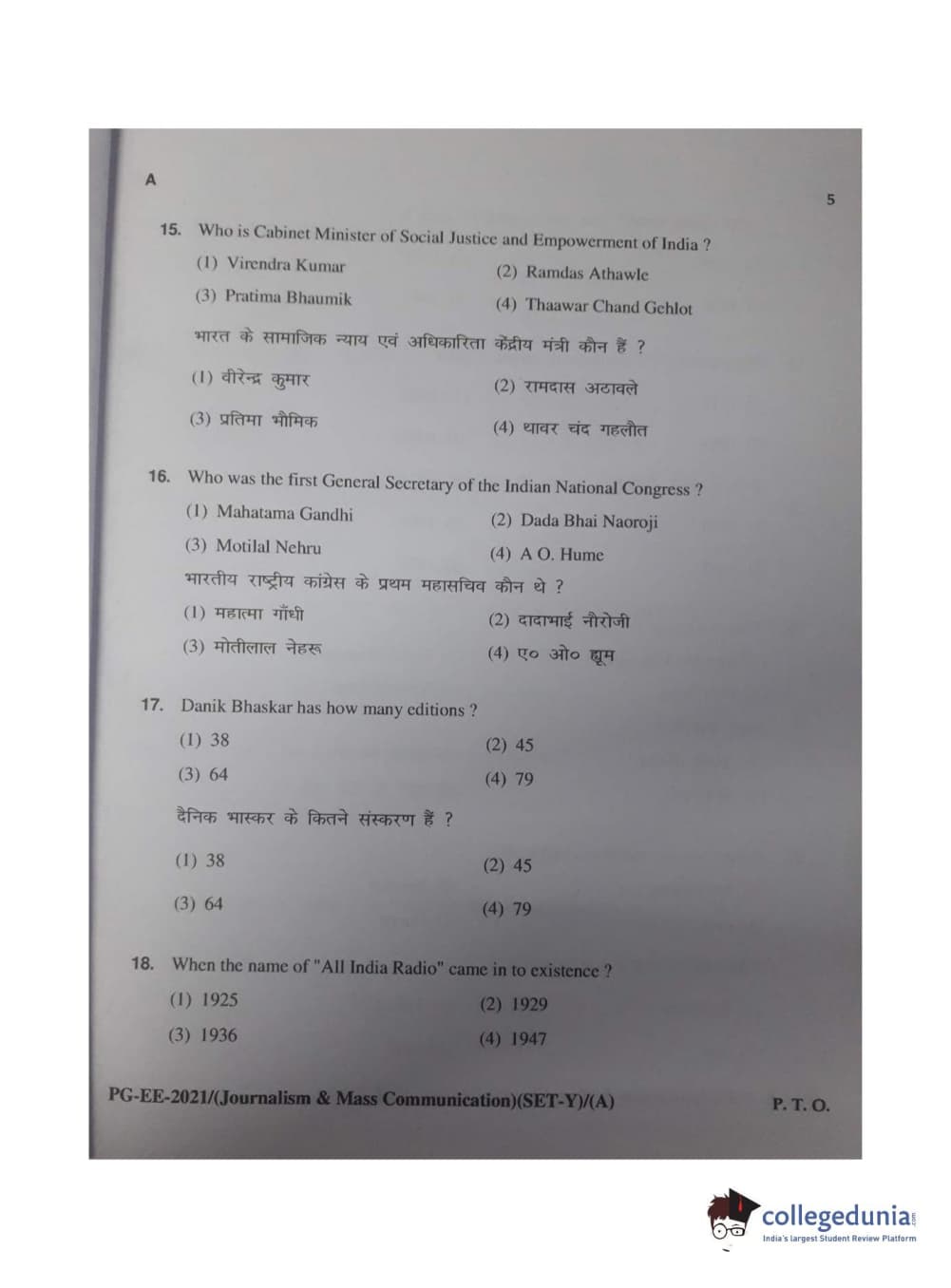 | MDUCEE 2021 MA (JMC) Question Paper PDF | MDUCEE 2021 MA (JMC) Answer Key PDF |