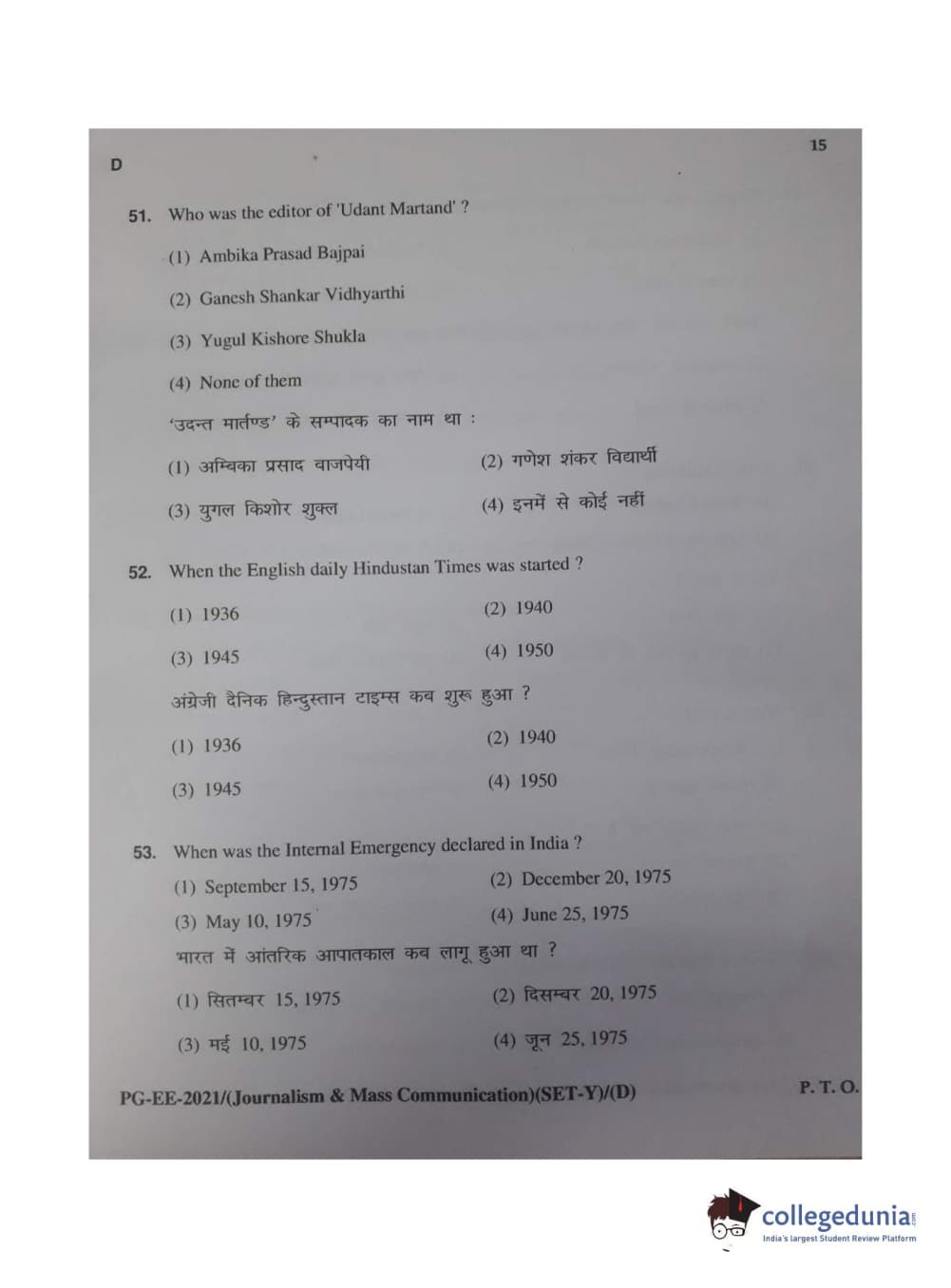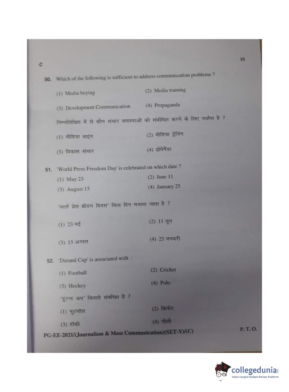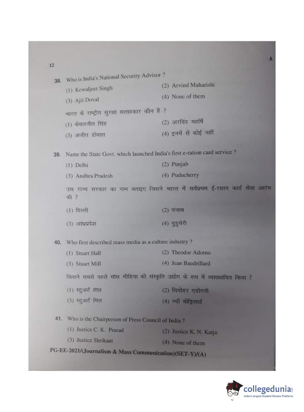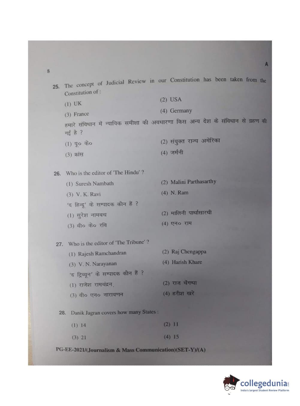 | MDUCEE 2021 MA (JMC) Question Paper PDF | MDUCEE 2021 MA (JMC) Answer Key PDF |