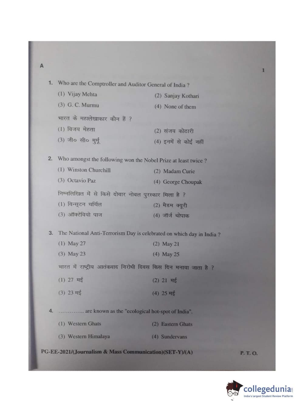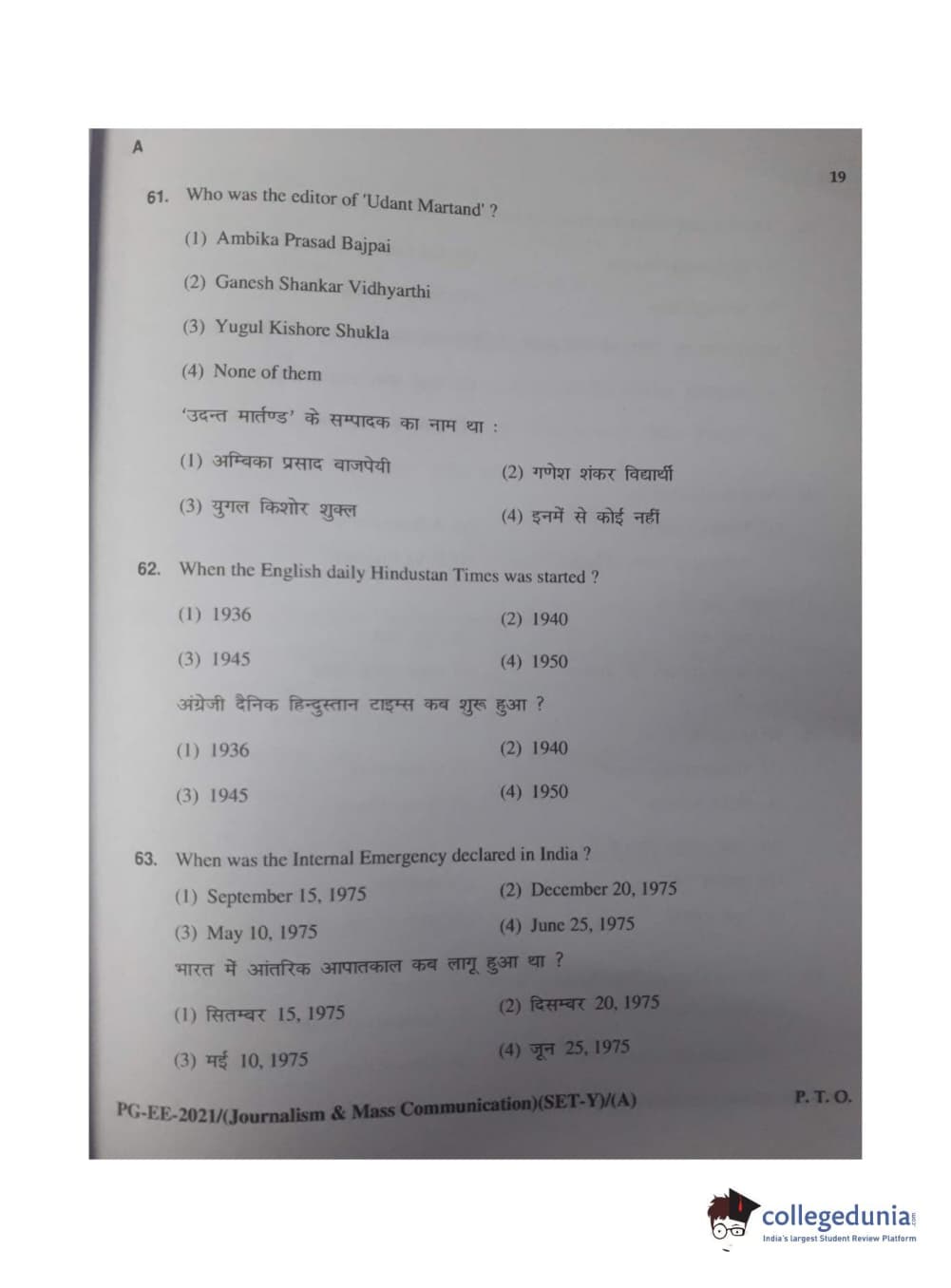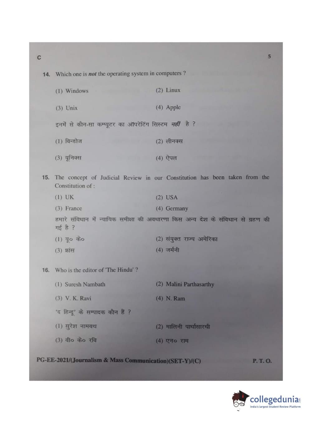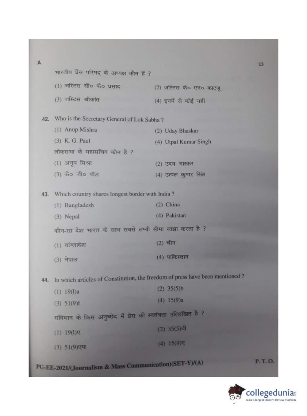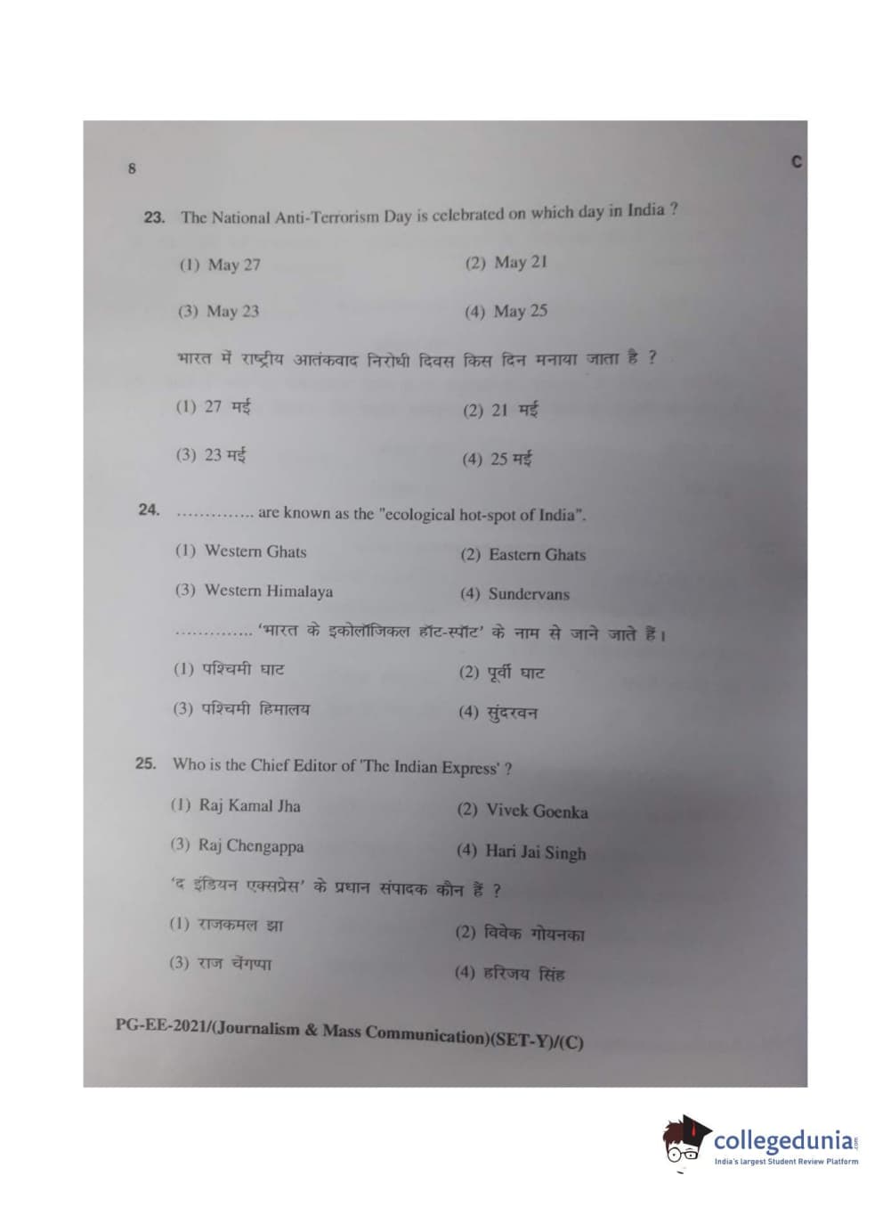 | MDUCEE 2021 MA (JMC) Question Paper PDF | MDUCEE 2021 MA (JMC) Answer Key PDF |