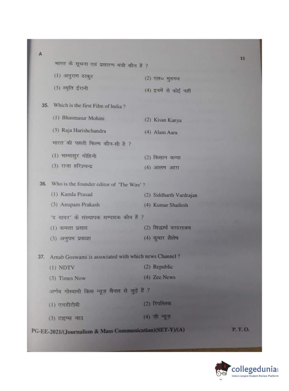 MDUCEE 2021 MA (JMC) Question Paper with Answer Key PDFs