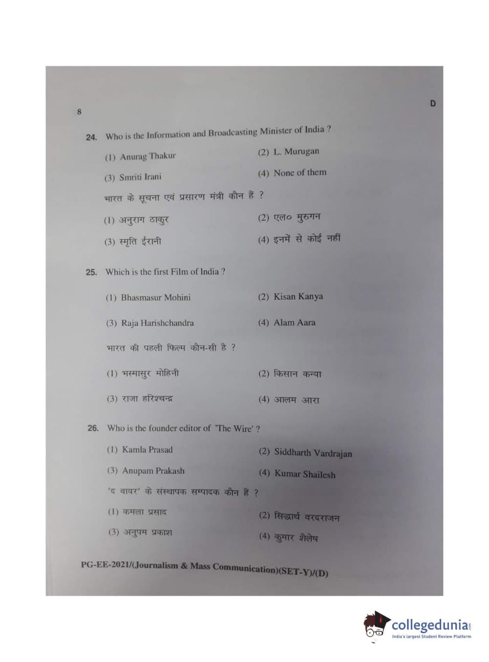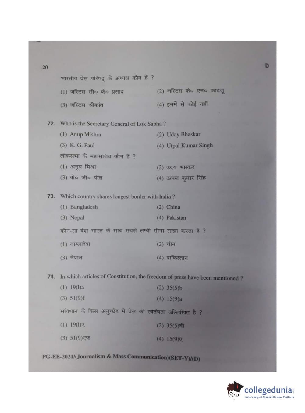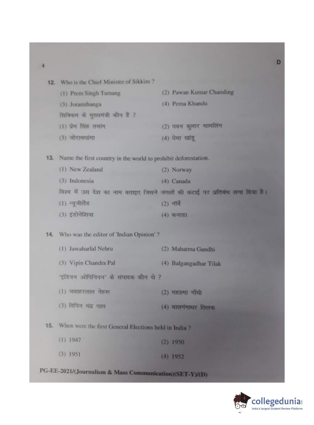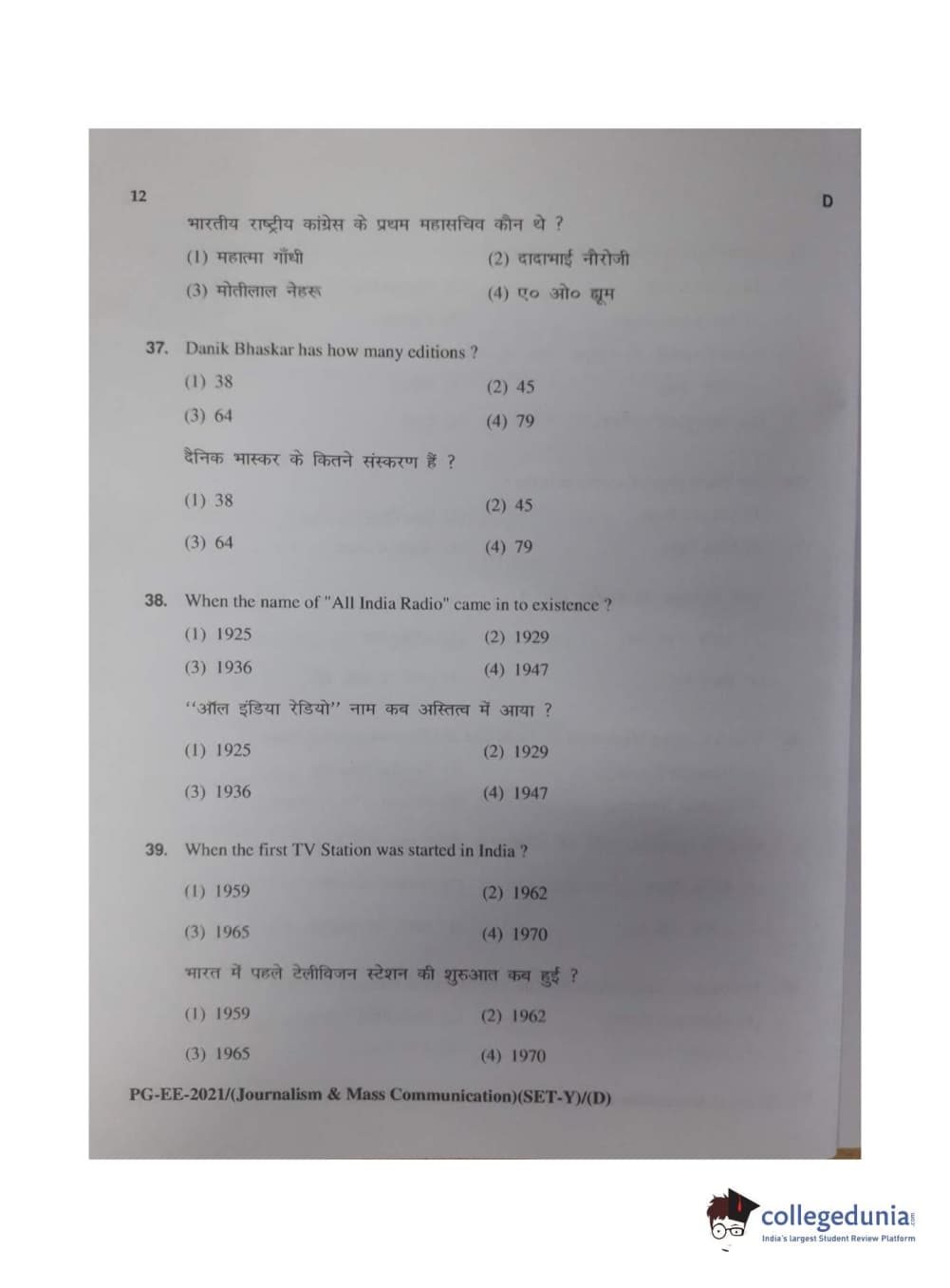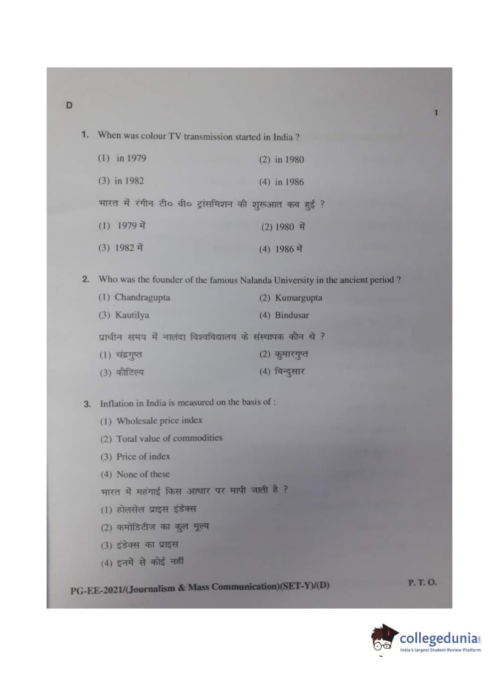 MDUCEE 2021 M.A Journalism and Mass Communication Set D Question Paper with Answer Key PDFs
