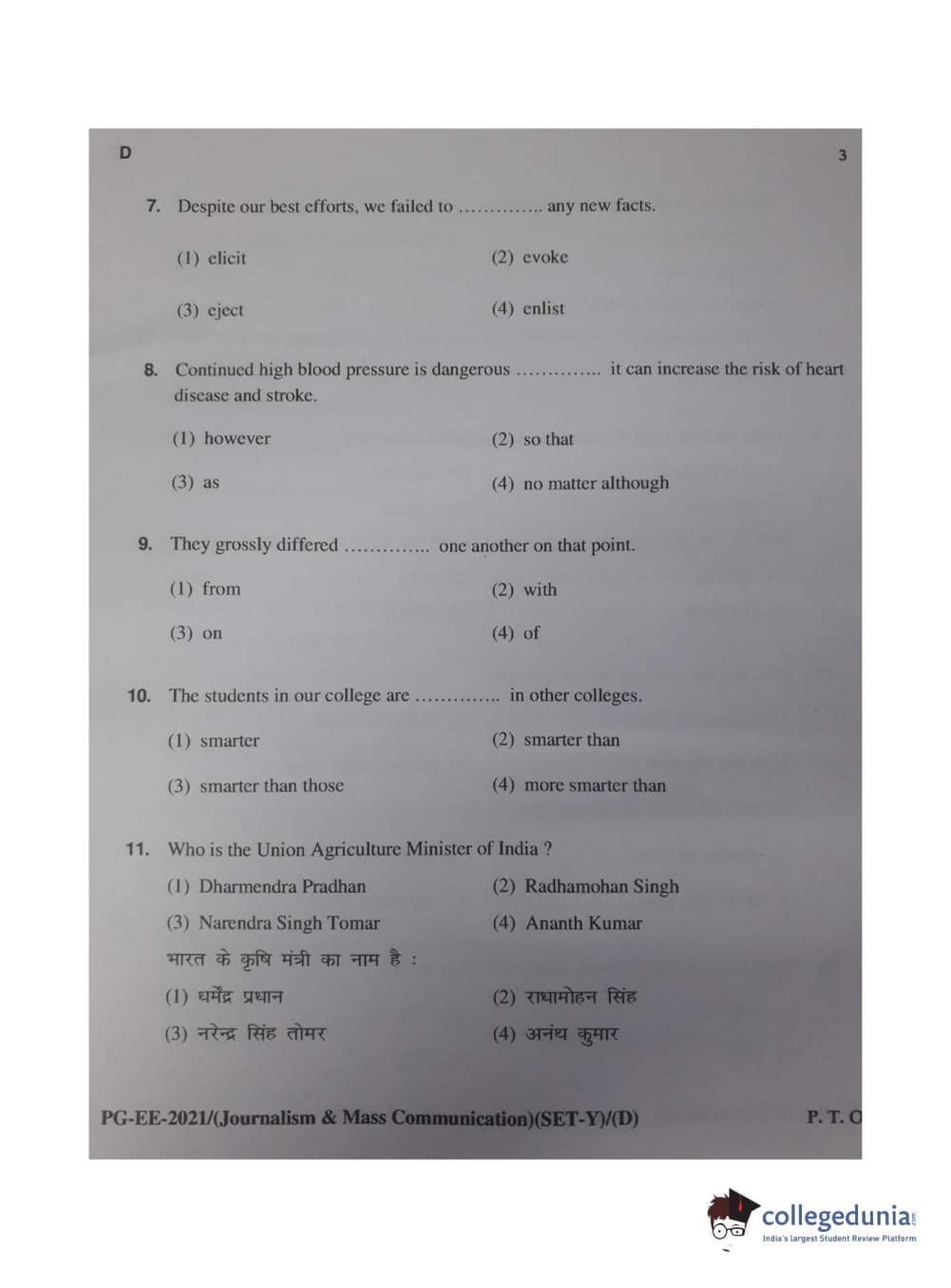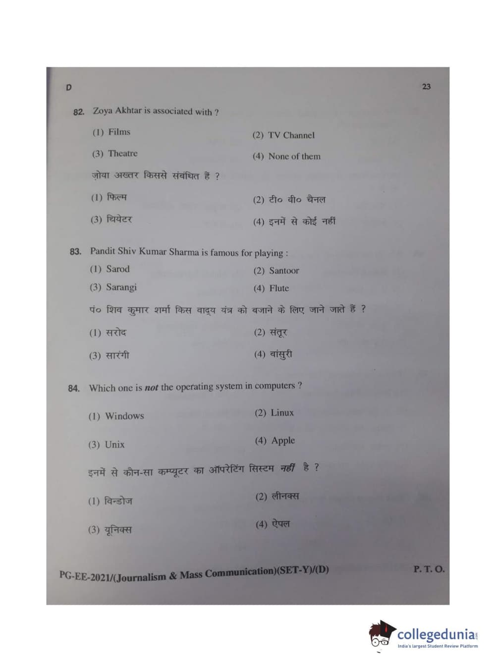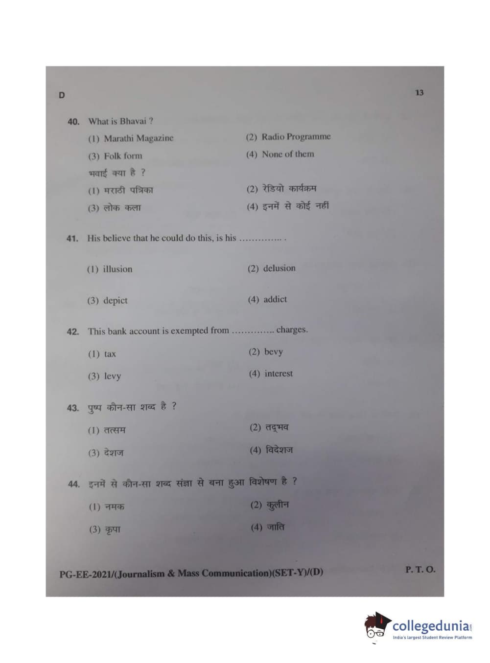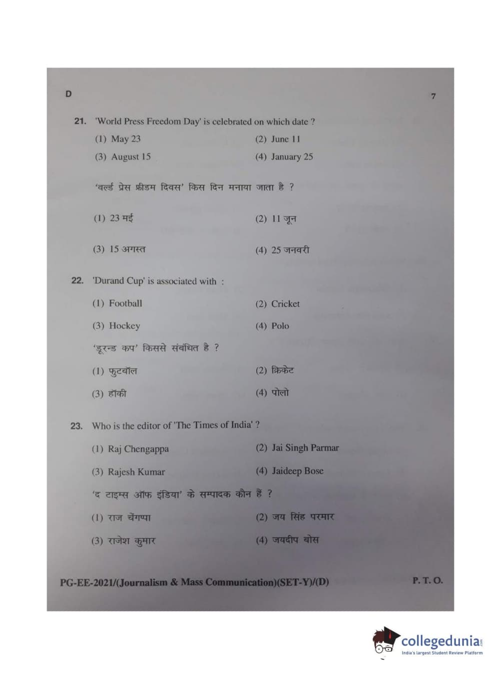 MDUCEE 2021 M.A Journalism and Mass Communication Set D Question Paper with Answer Key PDFs