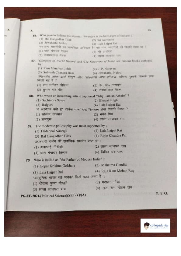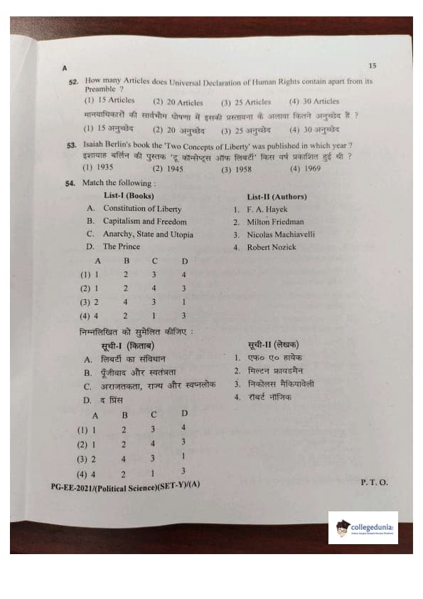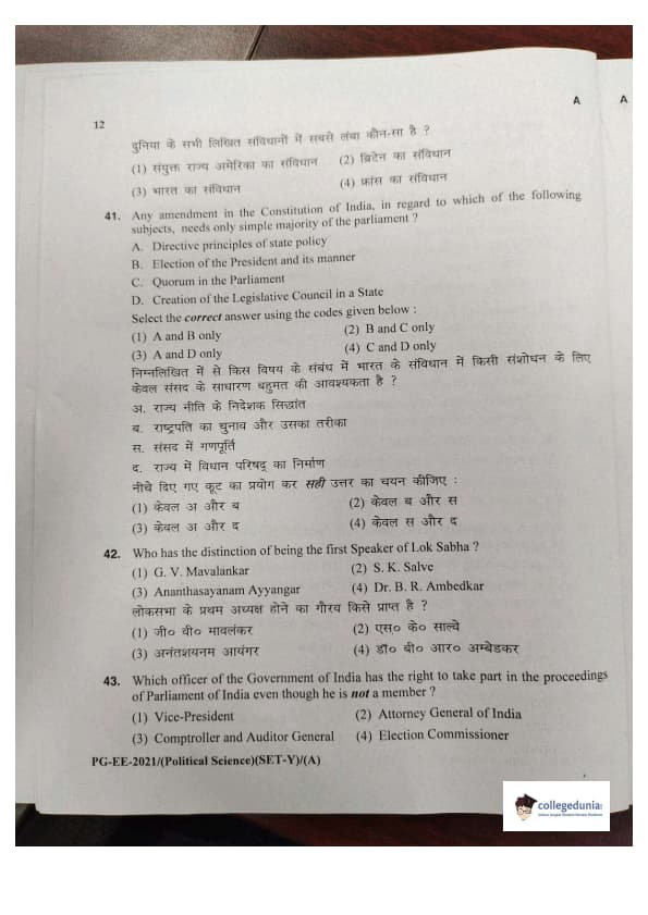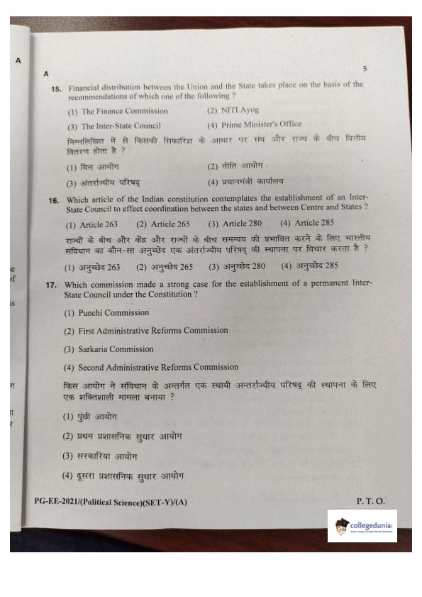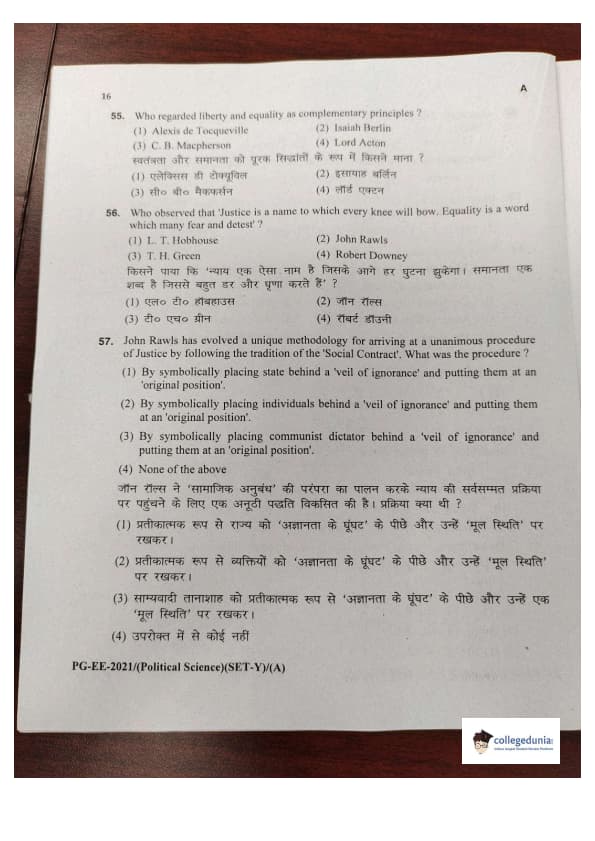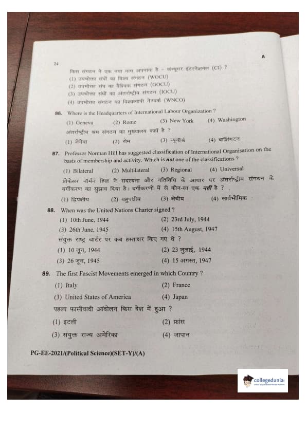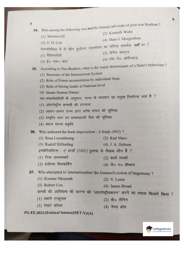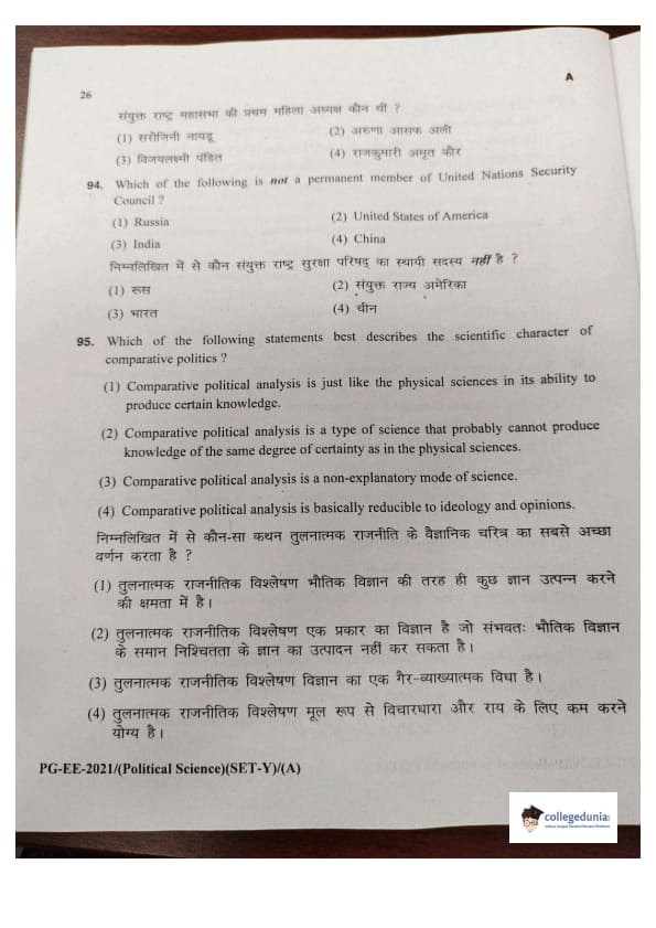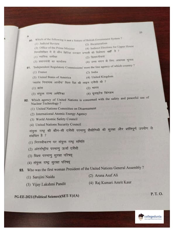 MDUCEE 2021 M.A. Political Science Set A Question Paper with Answer Key PDFs