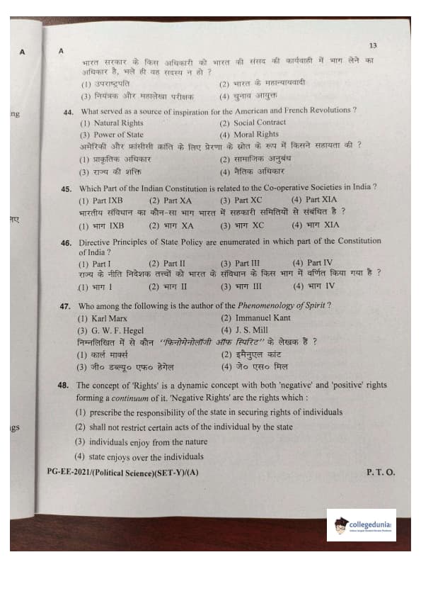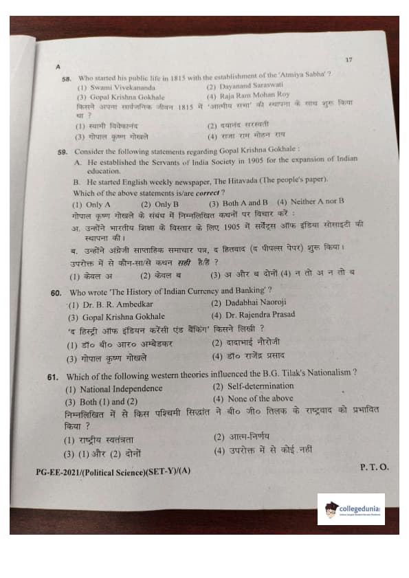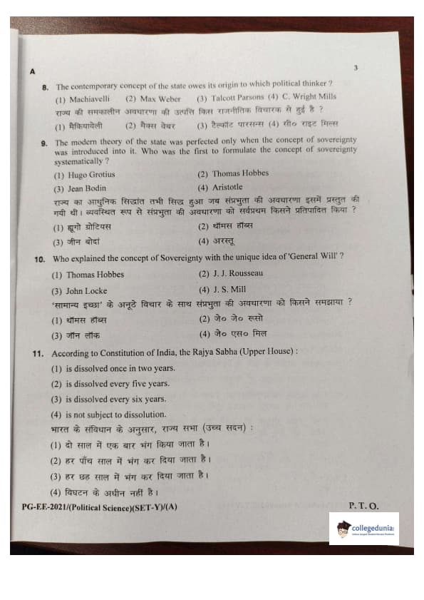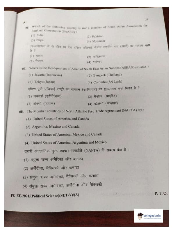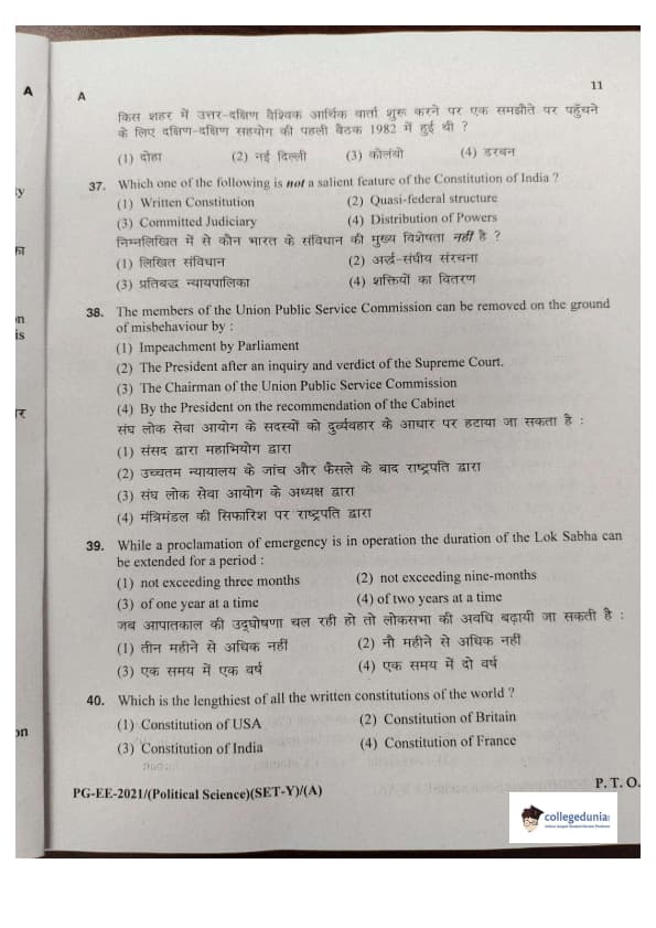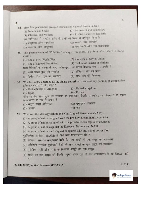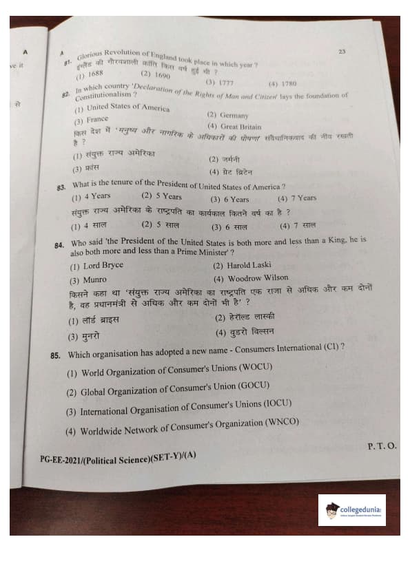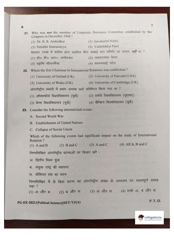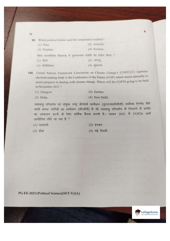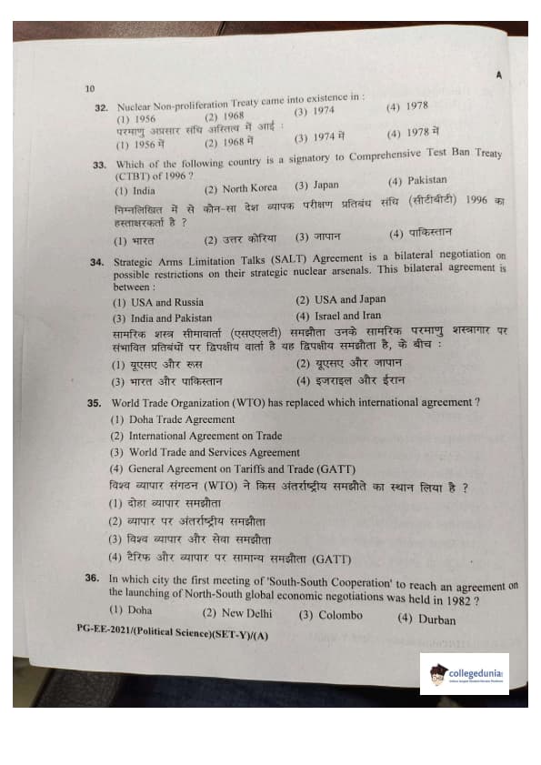 MDUCEE 2021 M.A. Political Science Set A Question Paper with Answer Key PDFs