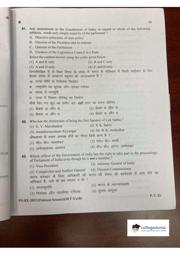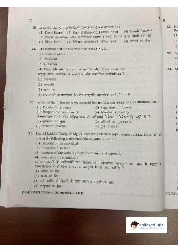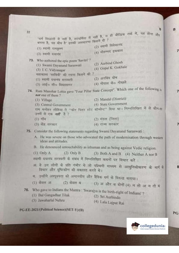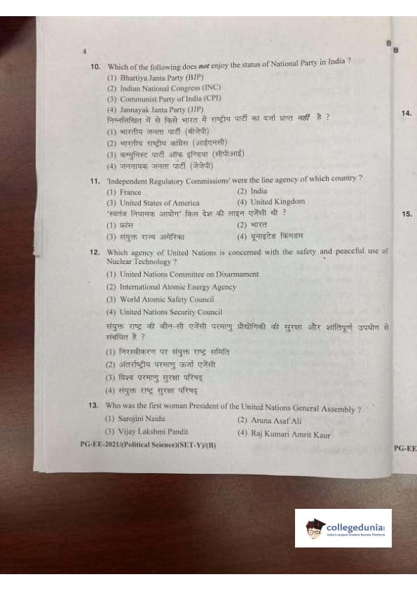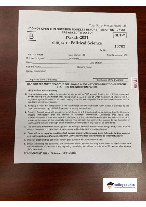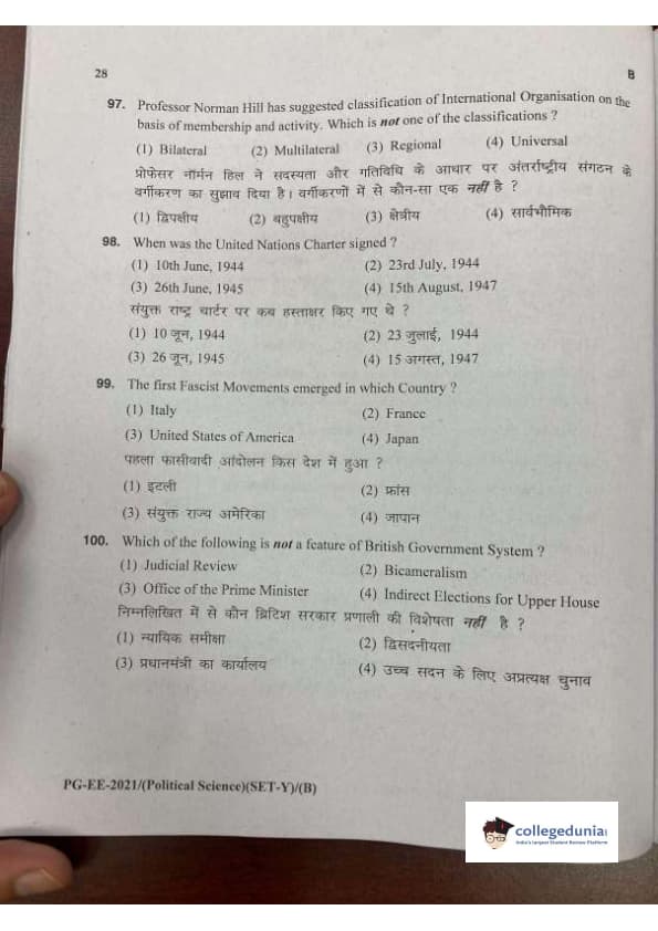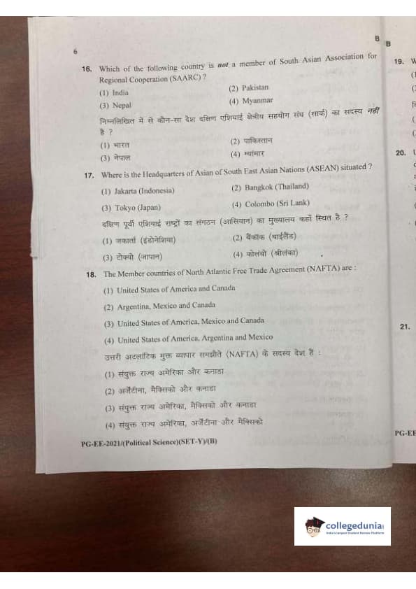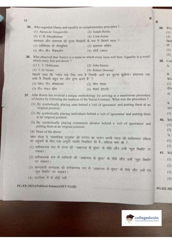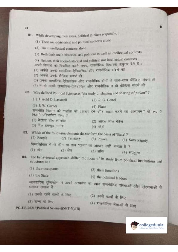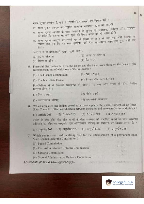 MDUCEE 2021 M.A. Political Science Set B Question Paper with Answer Key PDFs