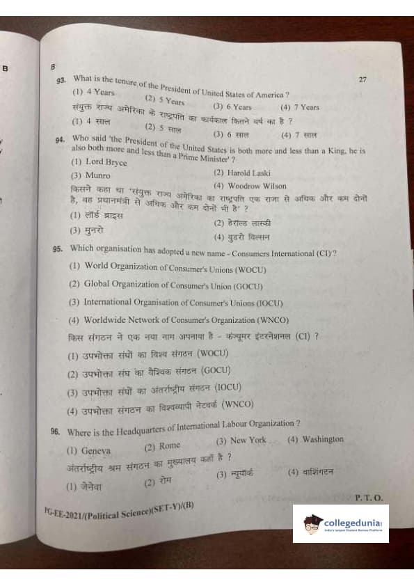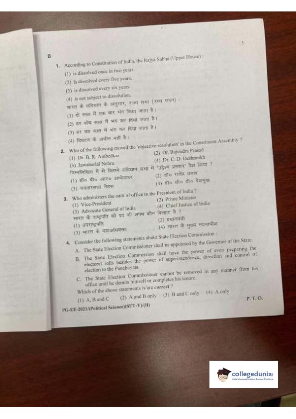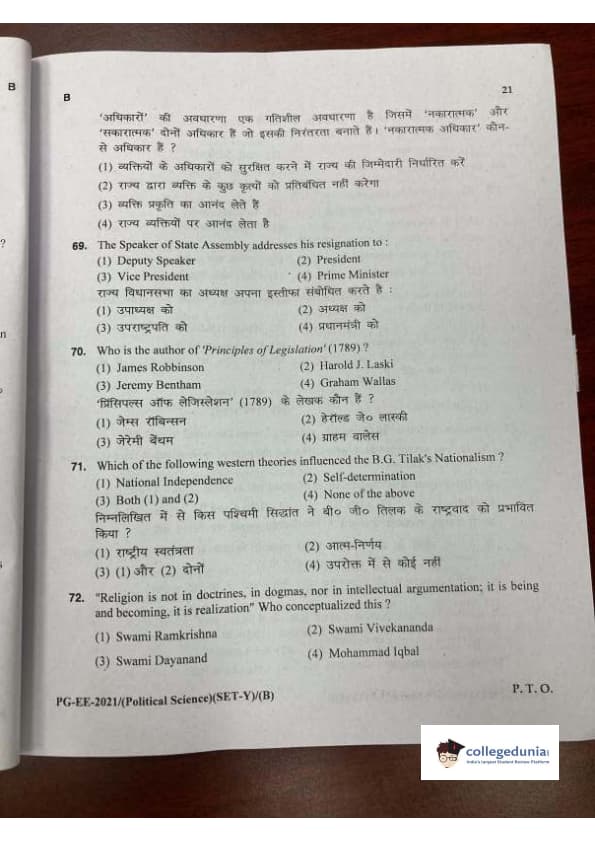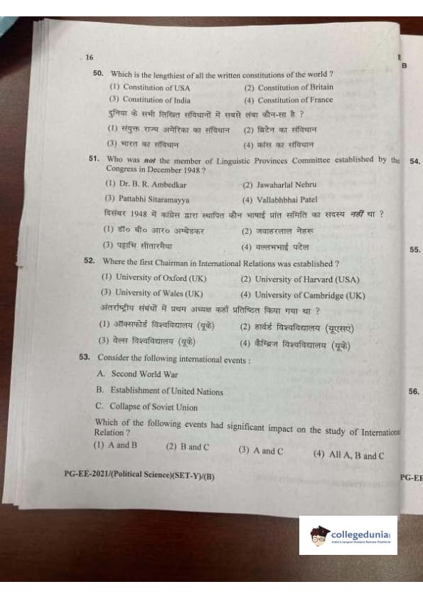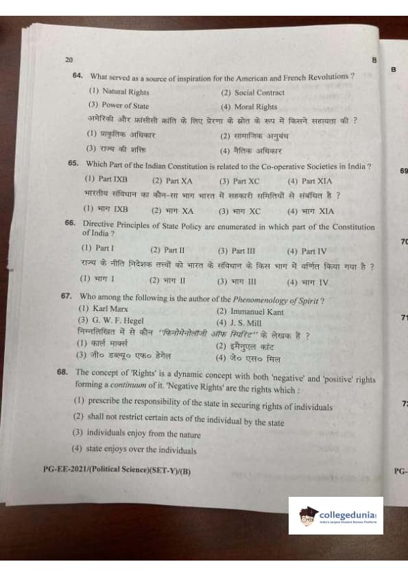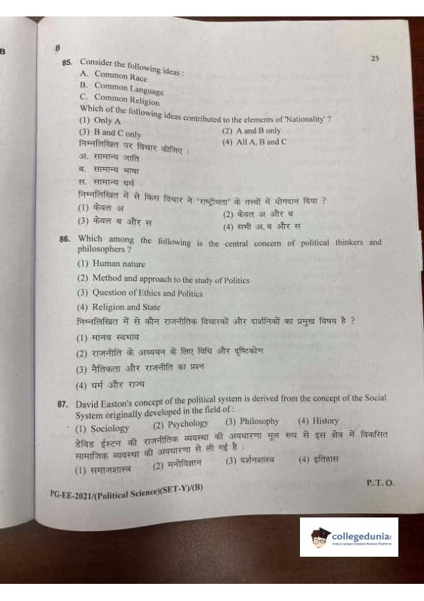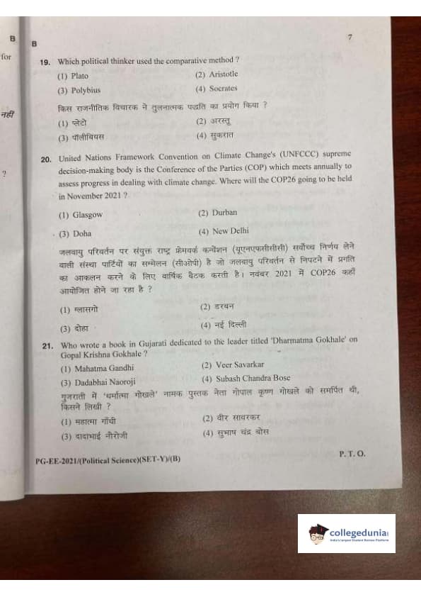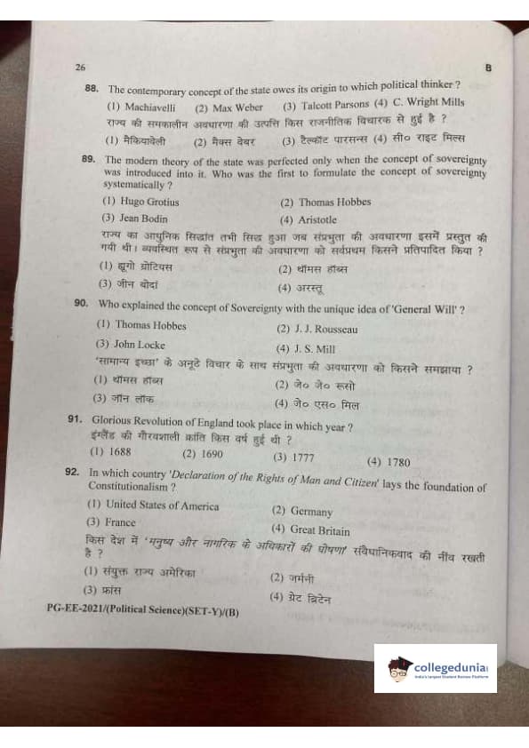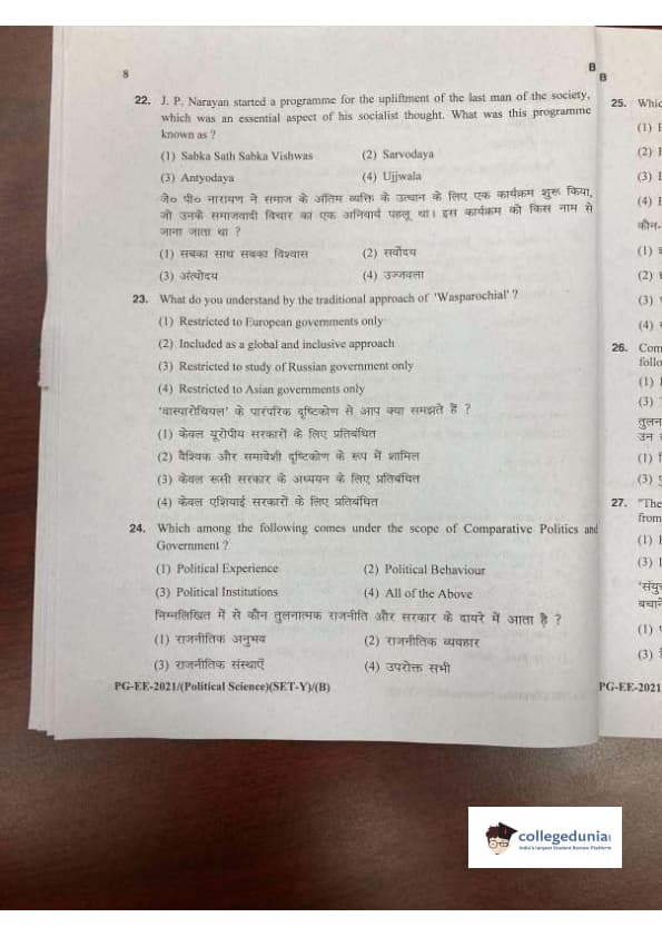 MDUCEE 2021 M.A. Political Science Set B Question Paper with Answer Key PDFs