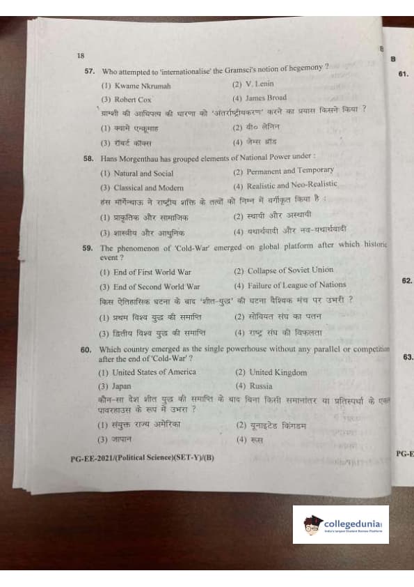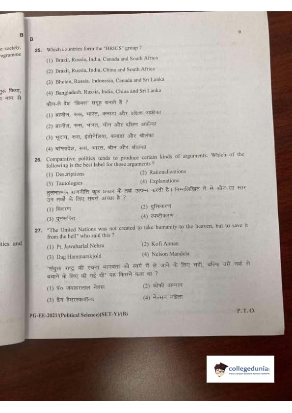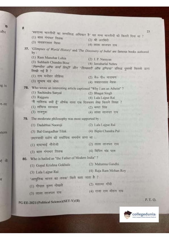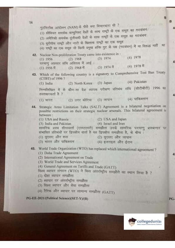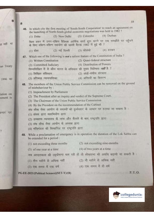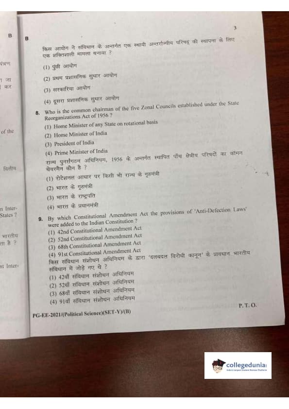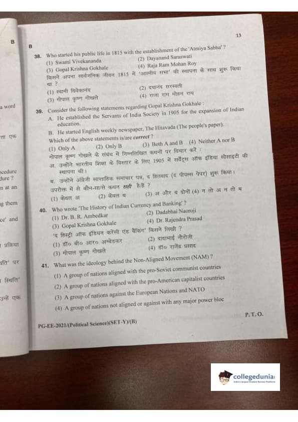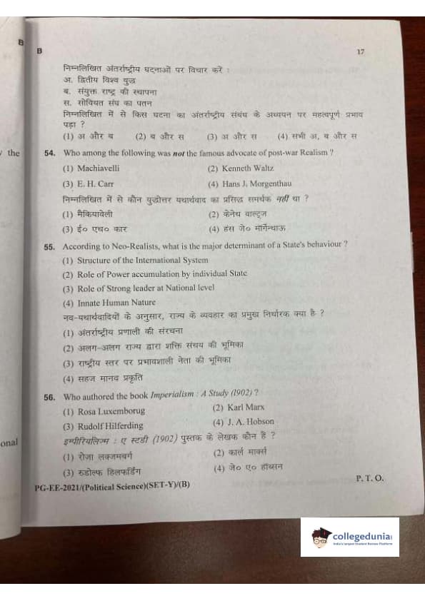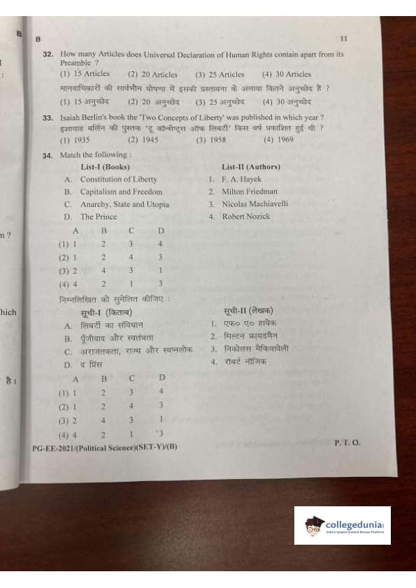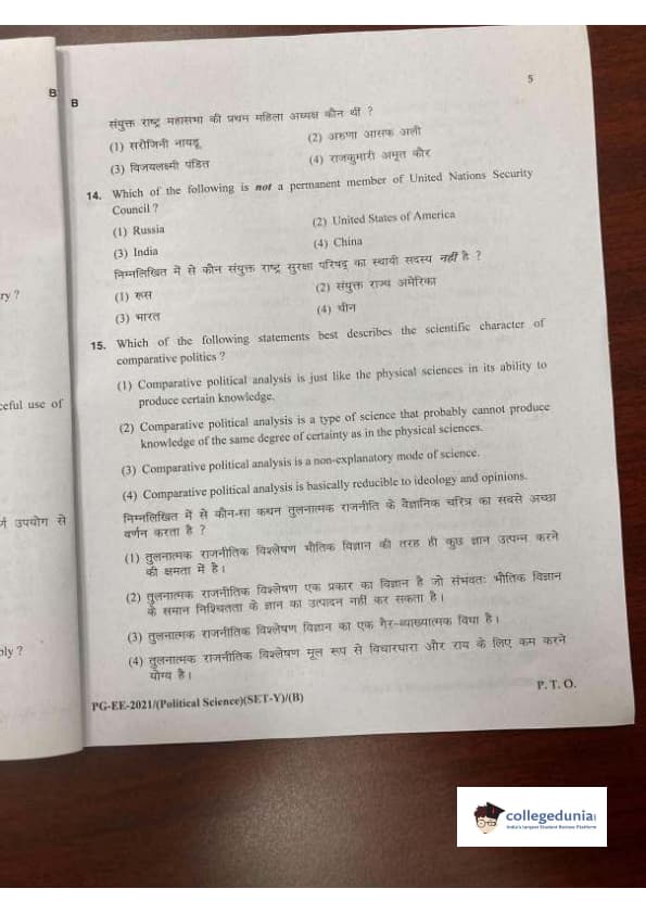MDUCEE 2021 M.A. Political Science Set B Question Paper with Answer Key PDFs