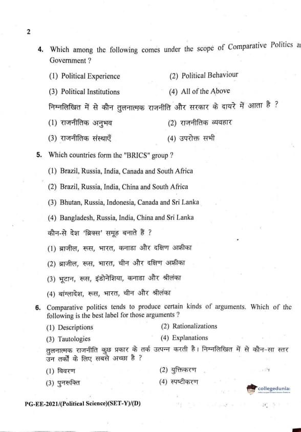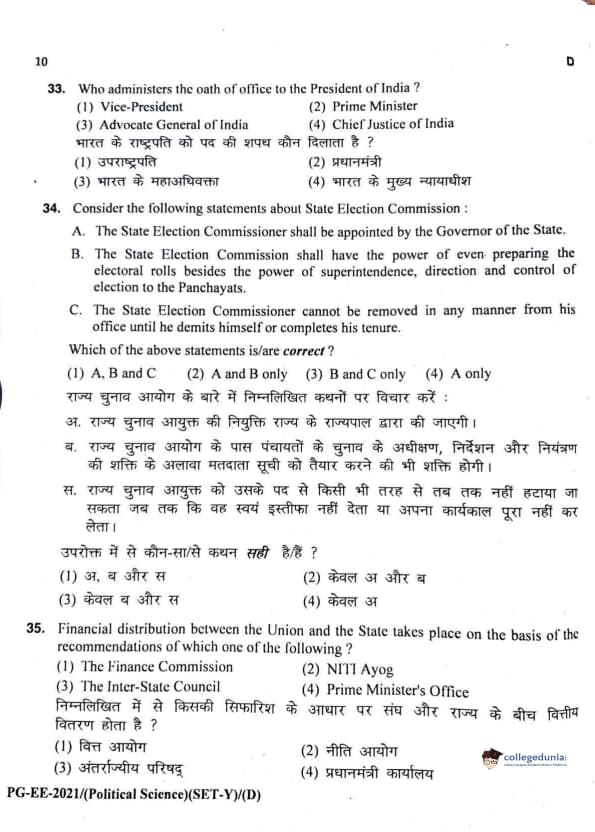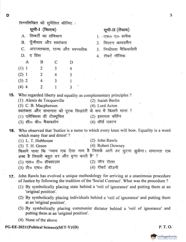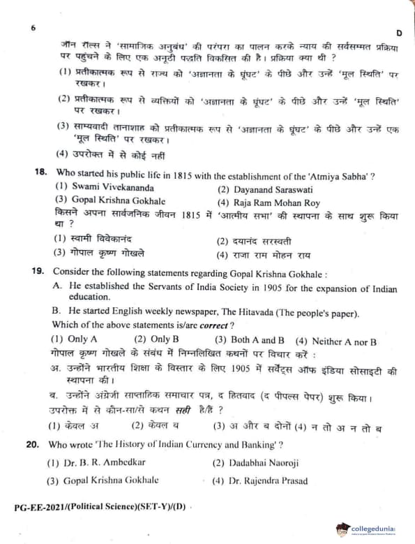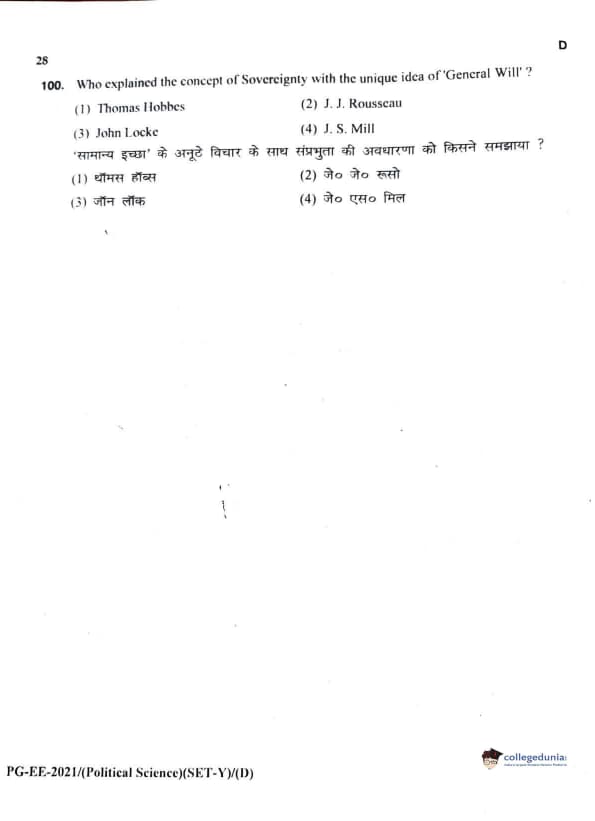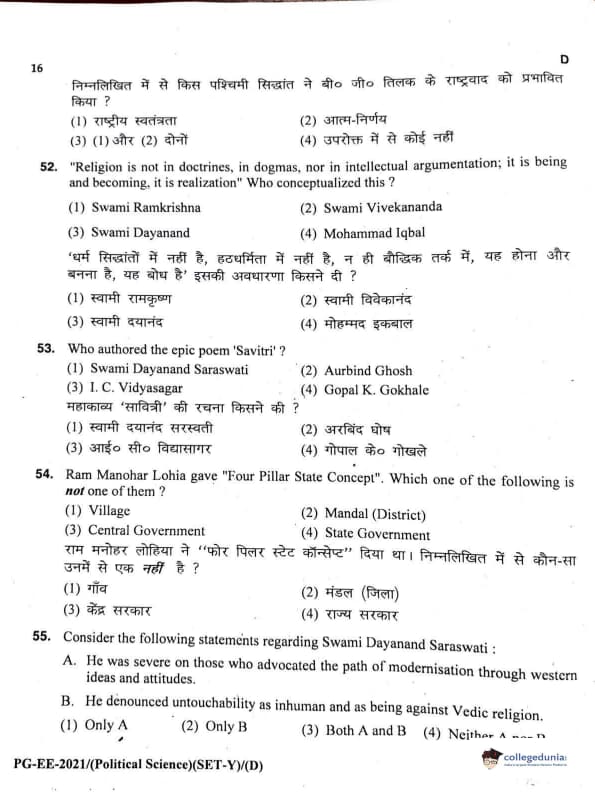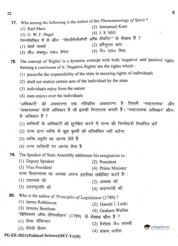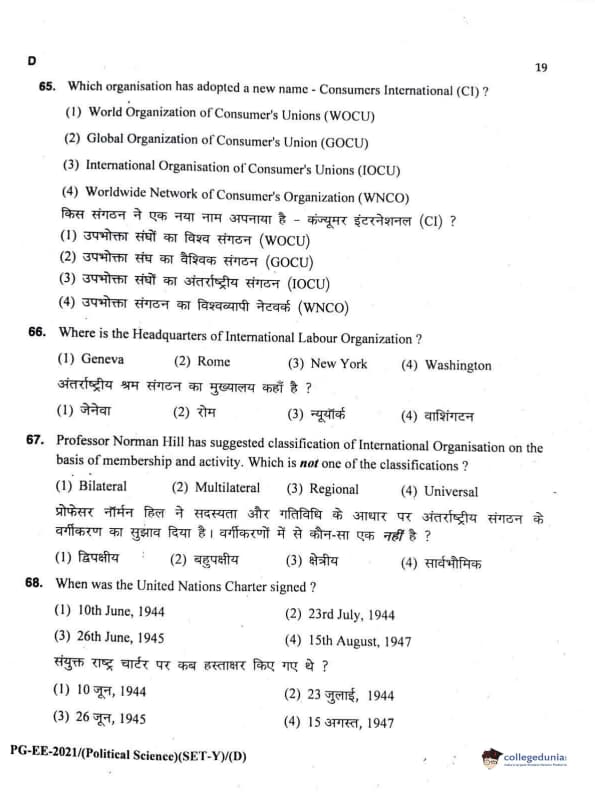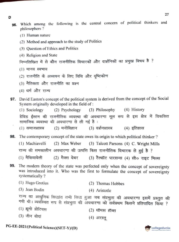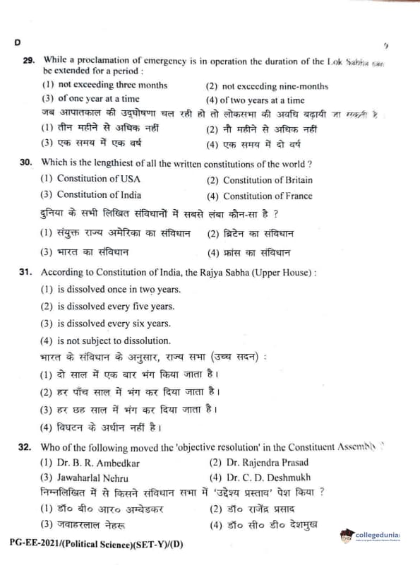 MDUCEE 2021 M.A. Political Science Set D Question Paper with Answer Key PDFs