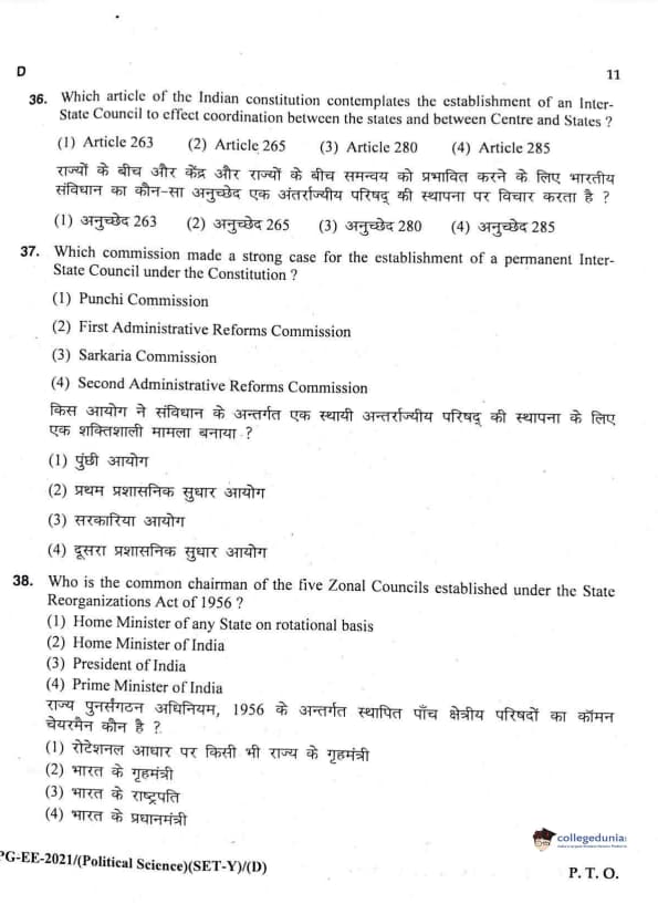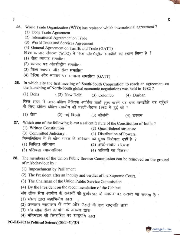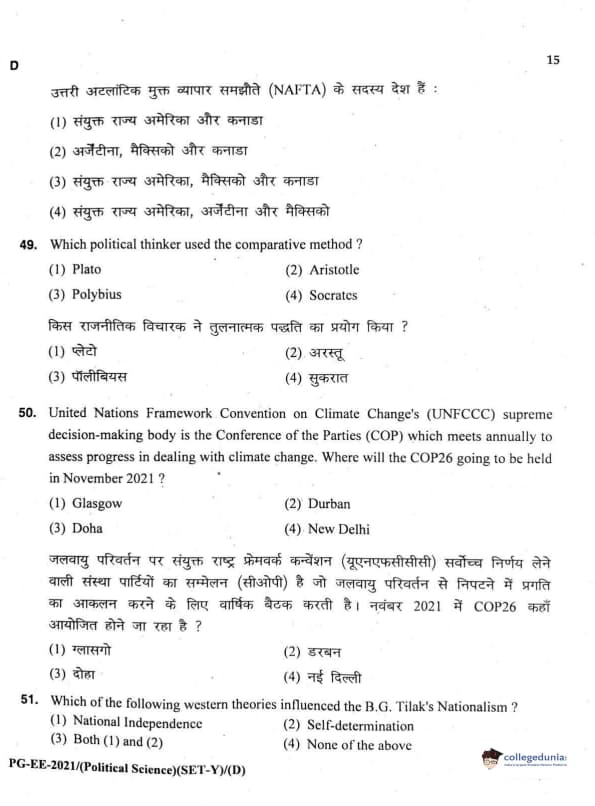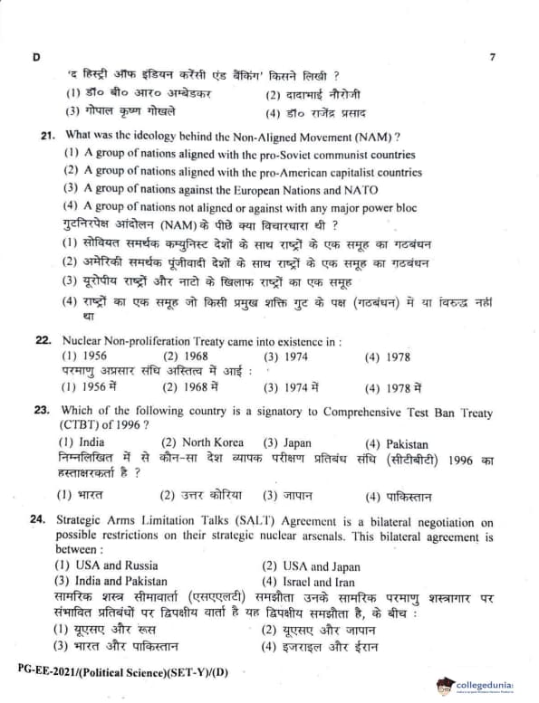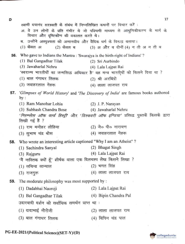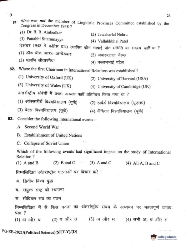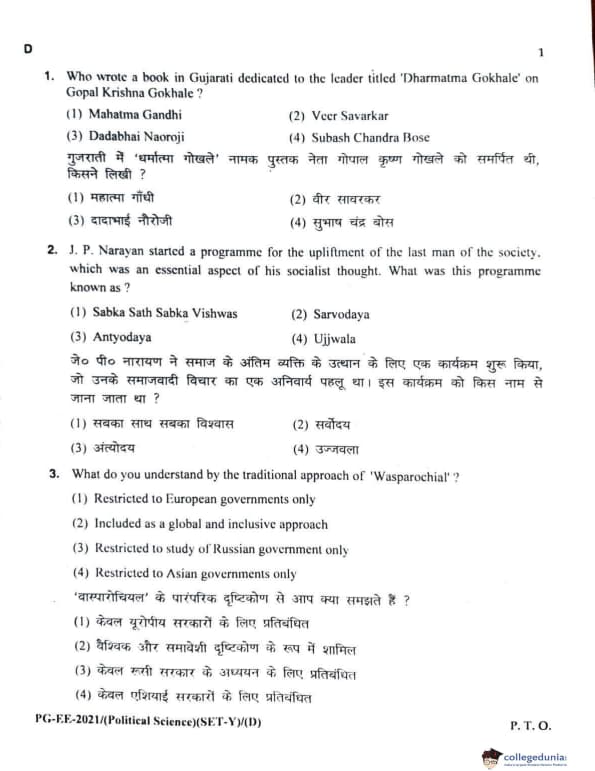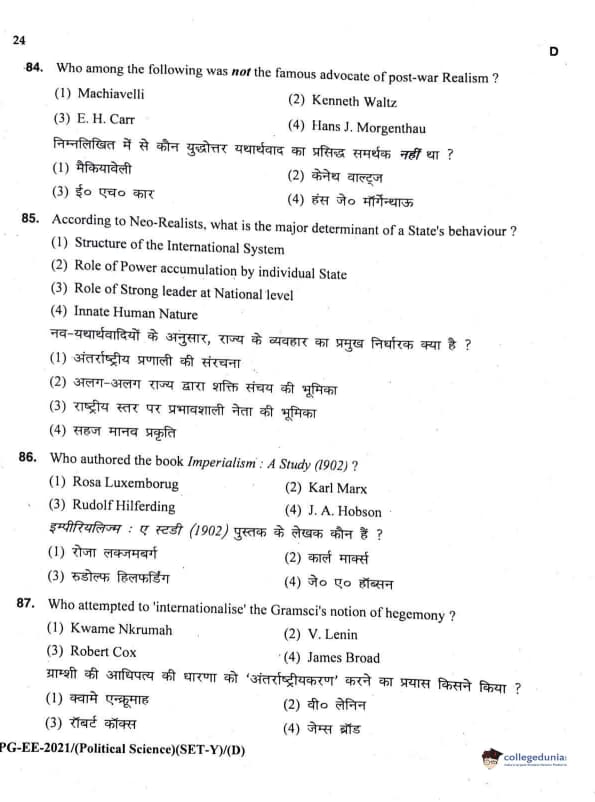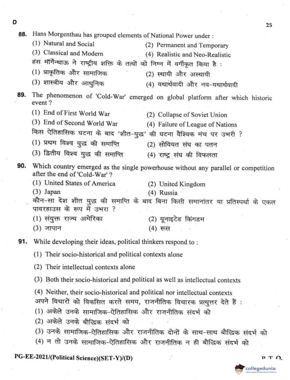 MDUCEE 2021 M.A. Political Science Set D Question Paper with Answer Key PDFs