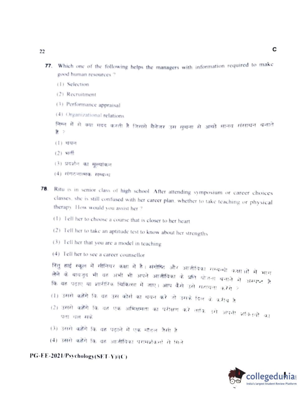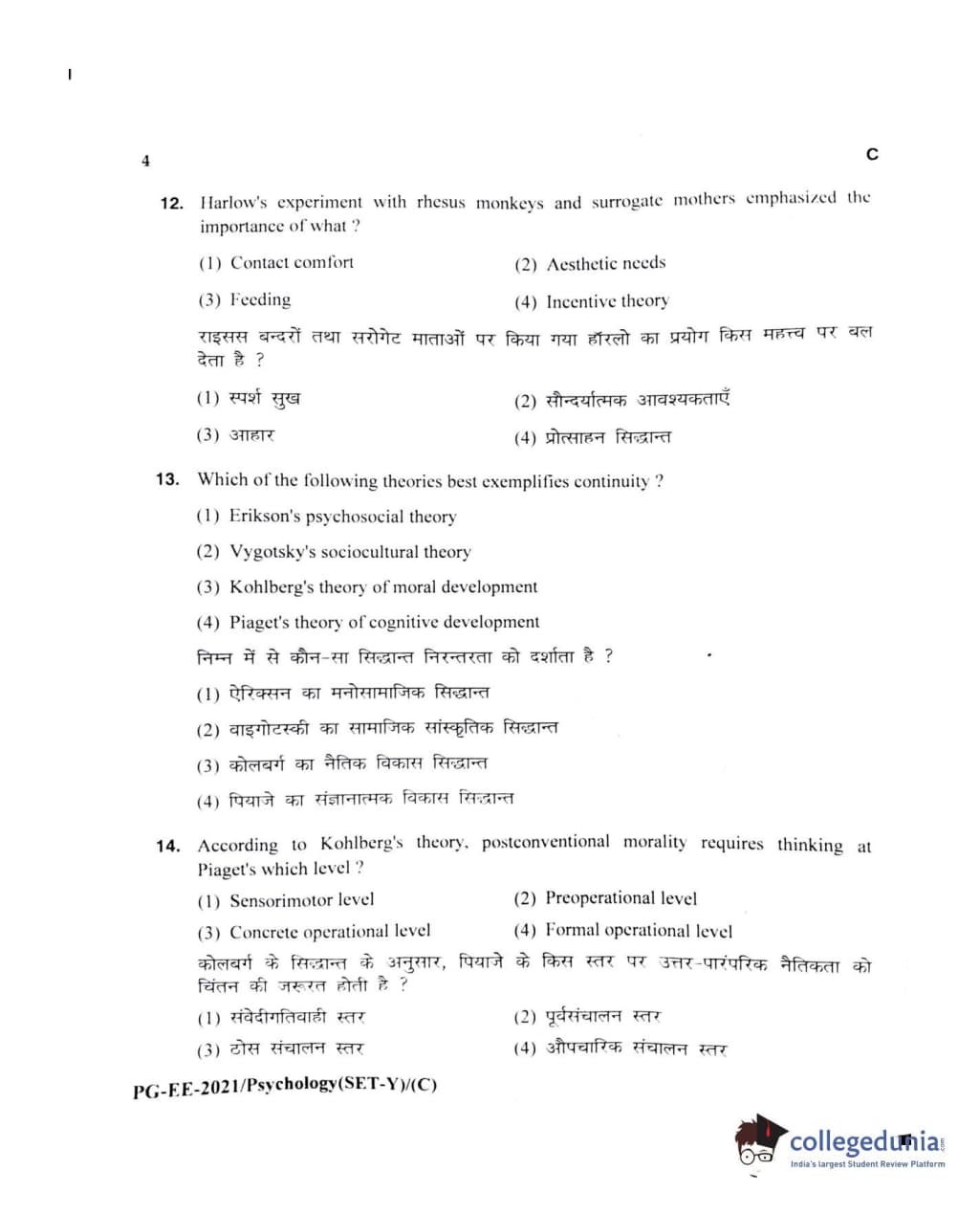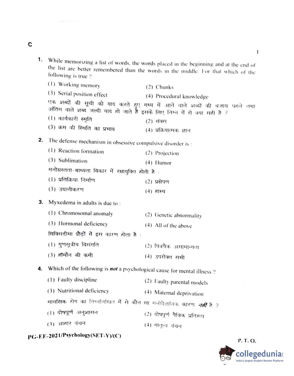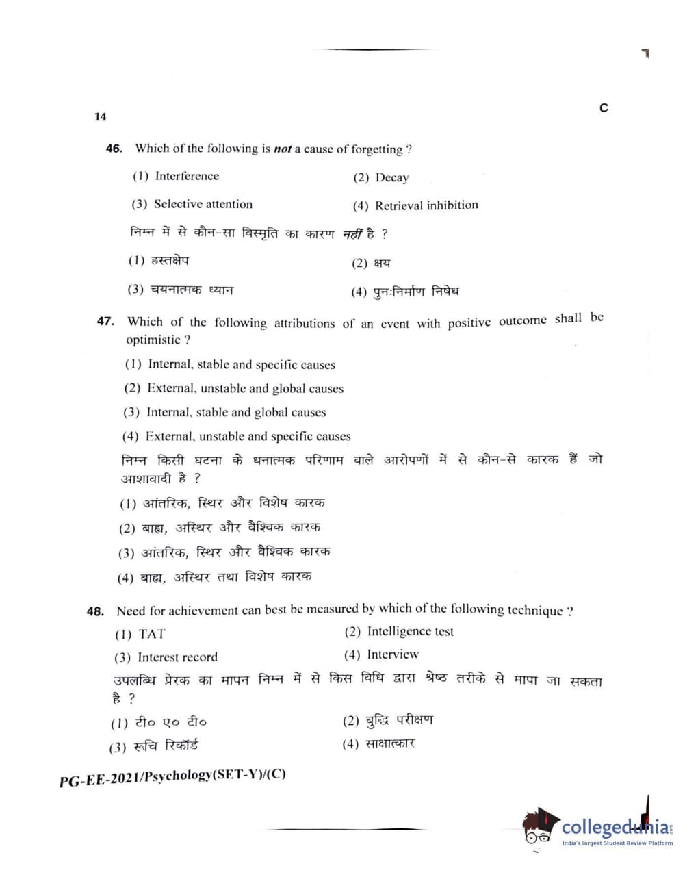 MDUCEE 2021 M.A Psychology Set C Question Paper with Answer Key PDFs