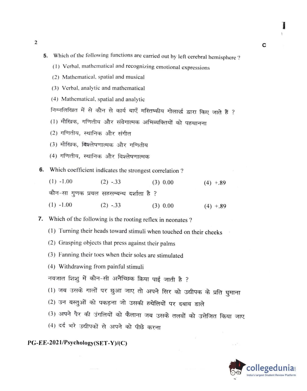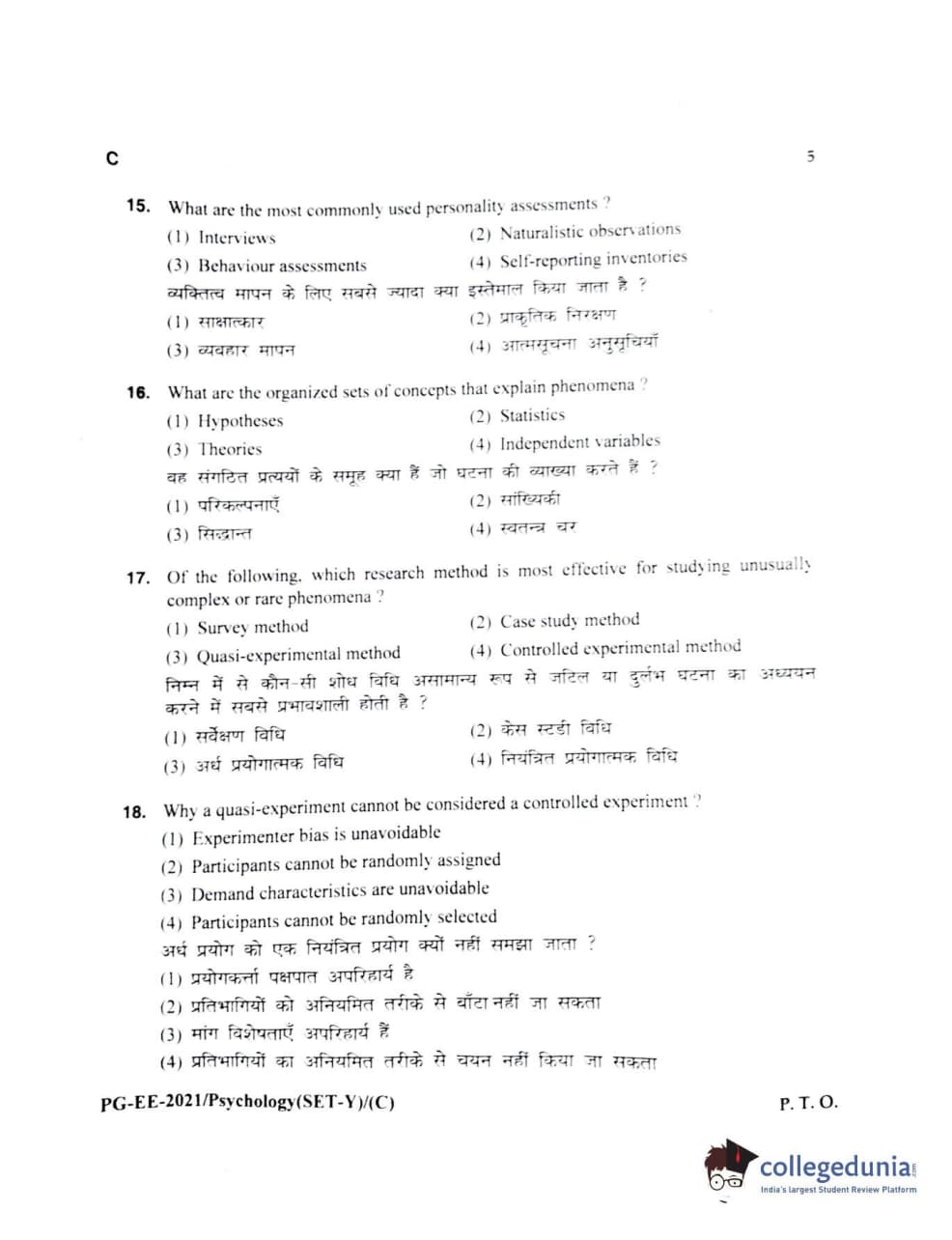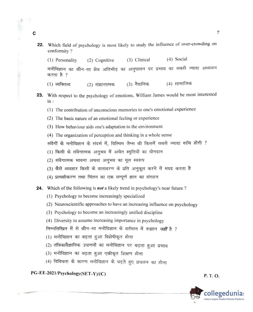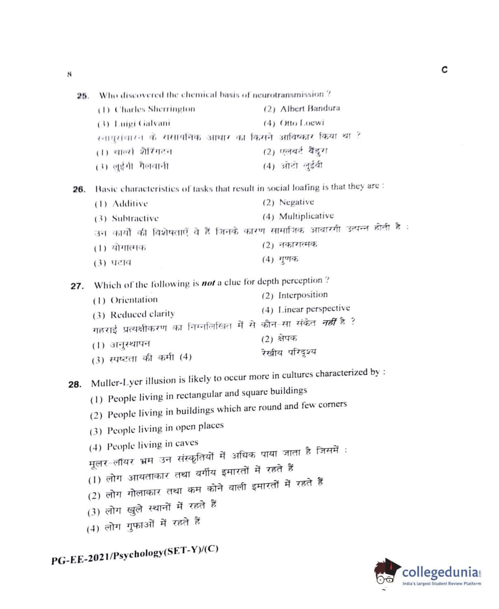 MDUCEE 2021 M.A Psychology Set C Question Paper with Answer Key PDFs