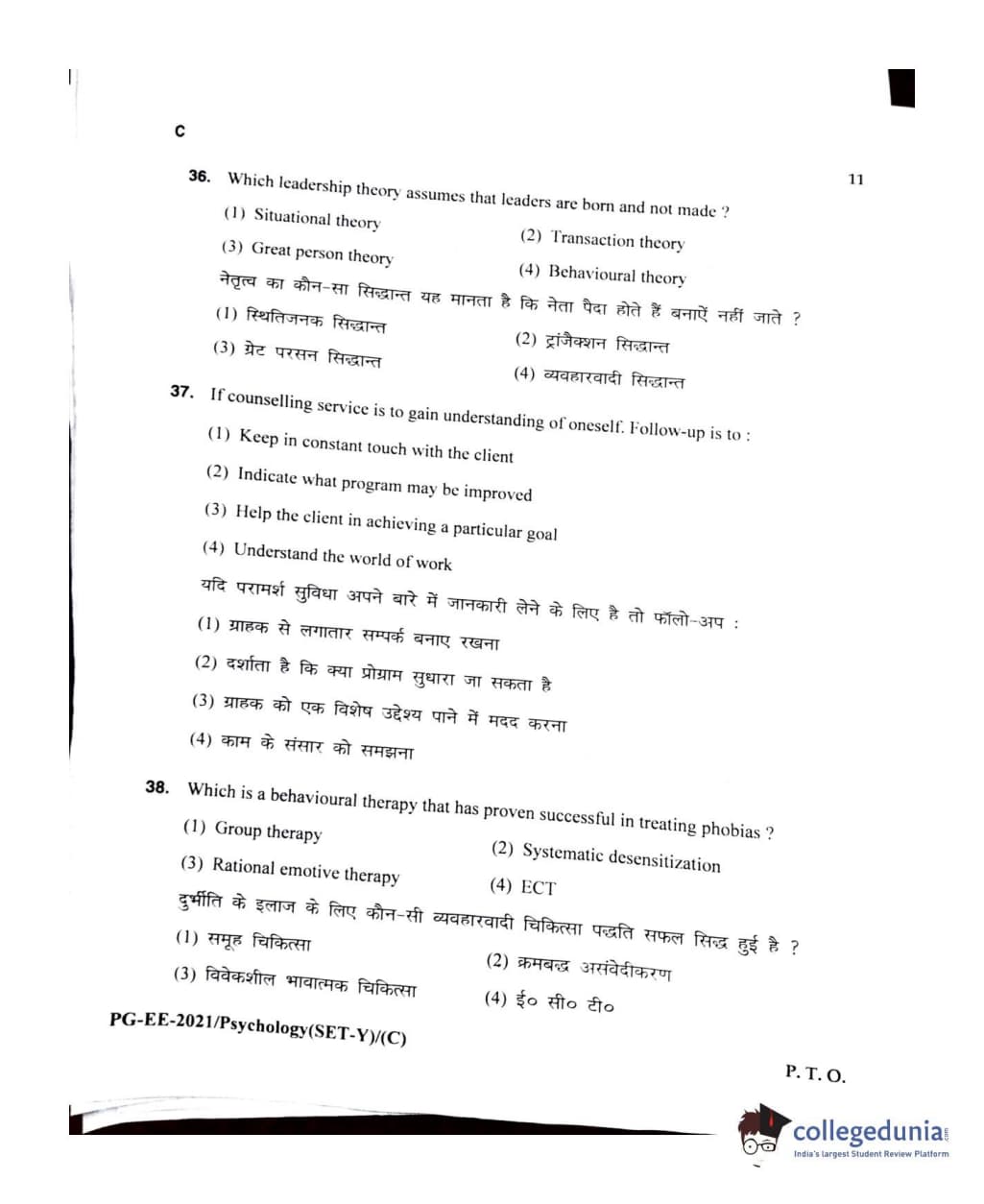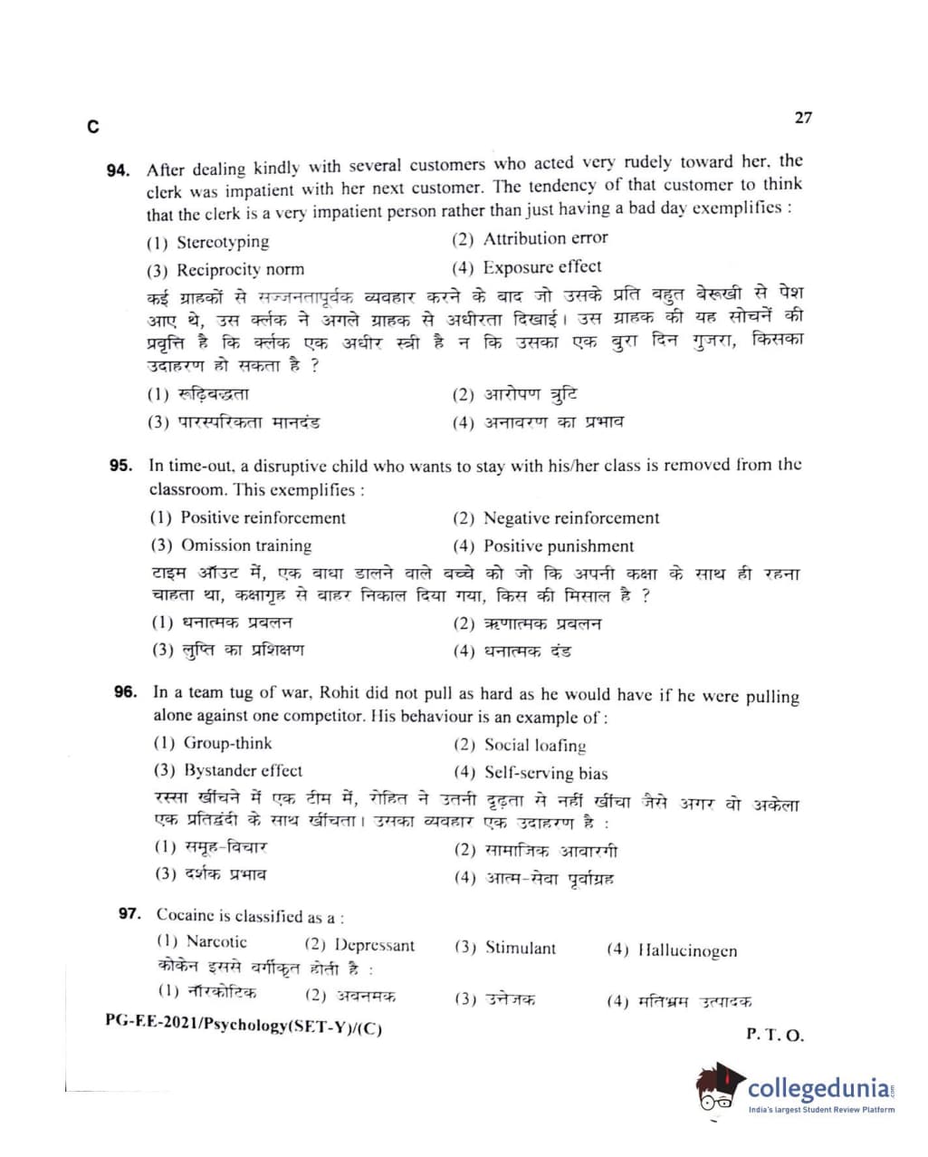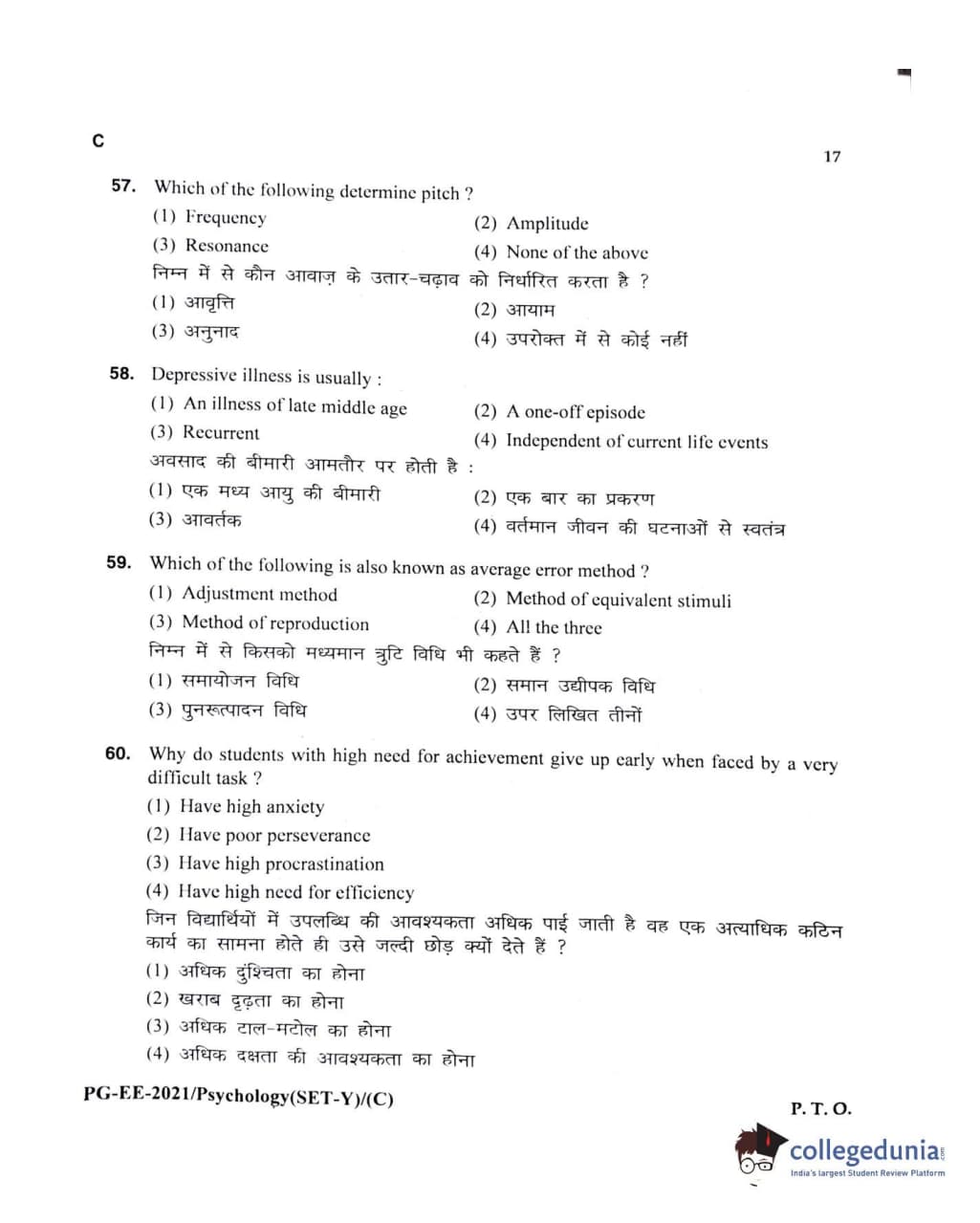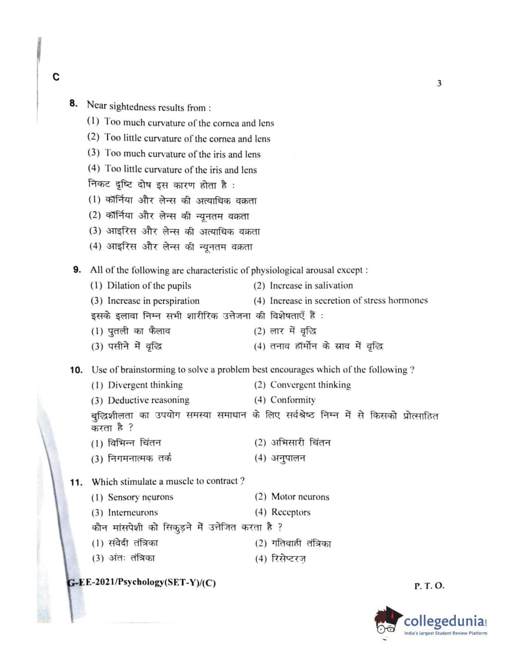 MDUCEE 2021 M.A Psychology Set C Question Paper with Answer Key PDFs