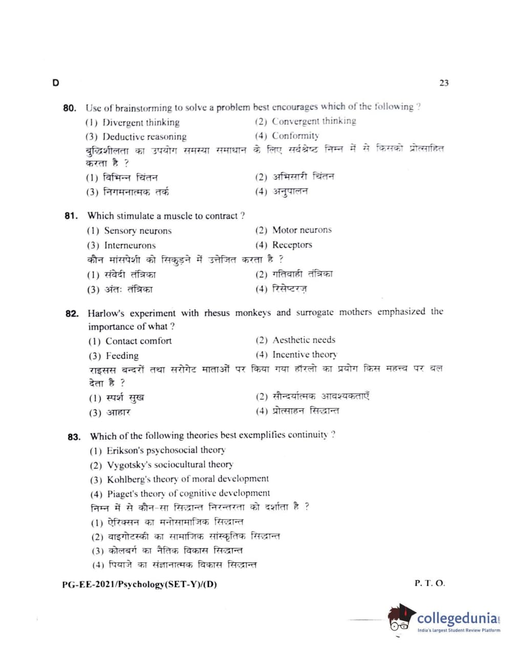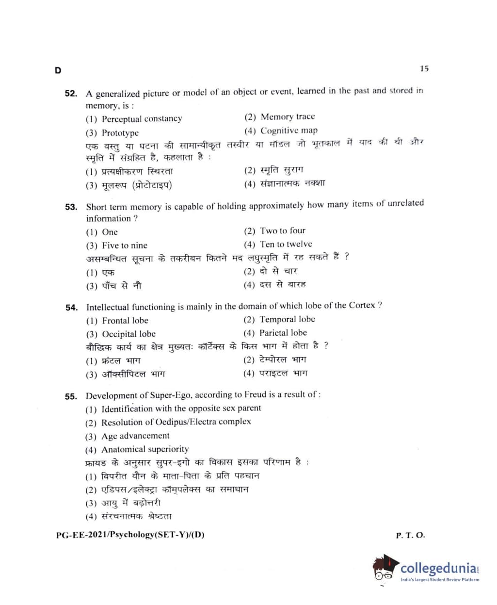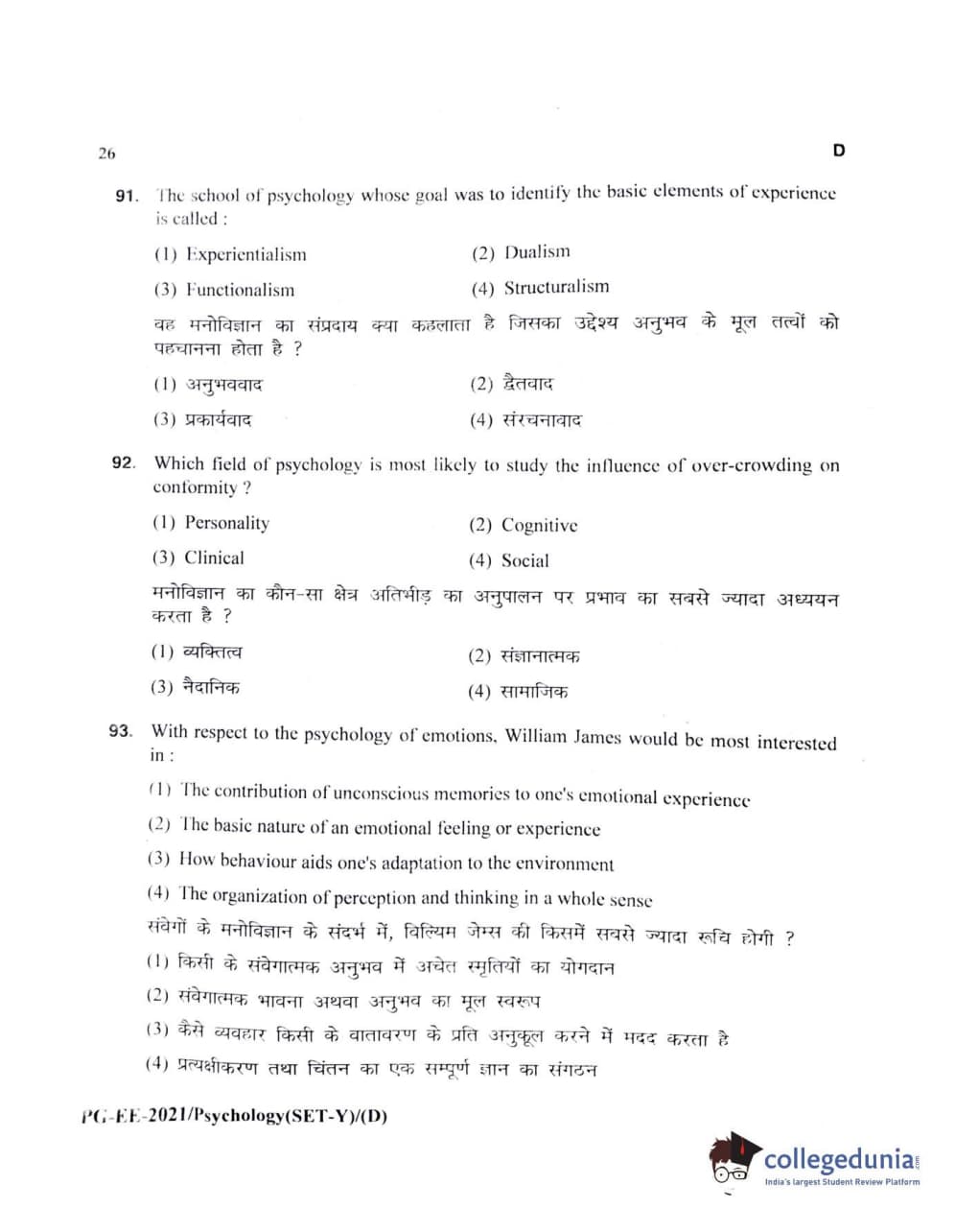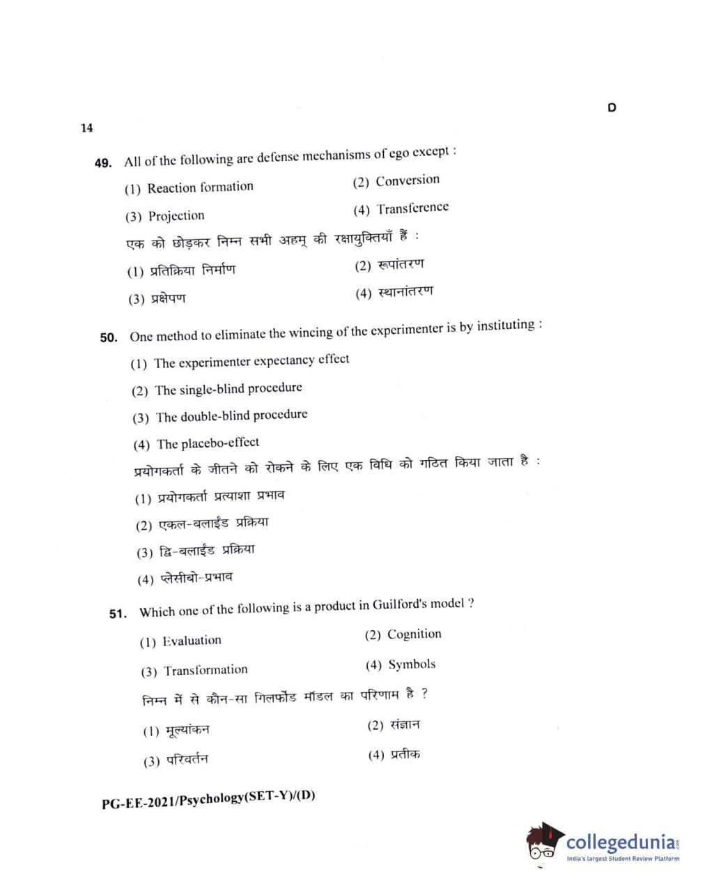 MDUCEE 2021 M.A Psychology Set D Question Paper with Answer Key PDFs