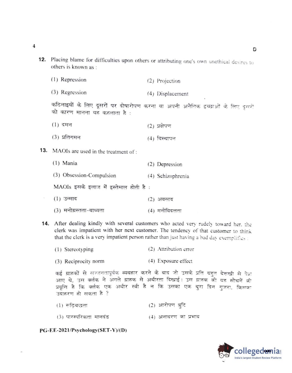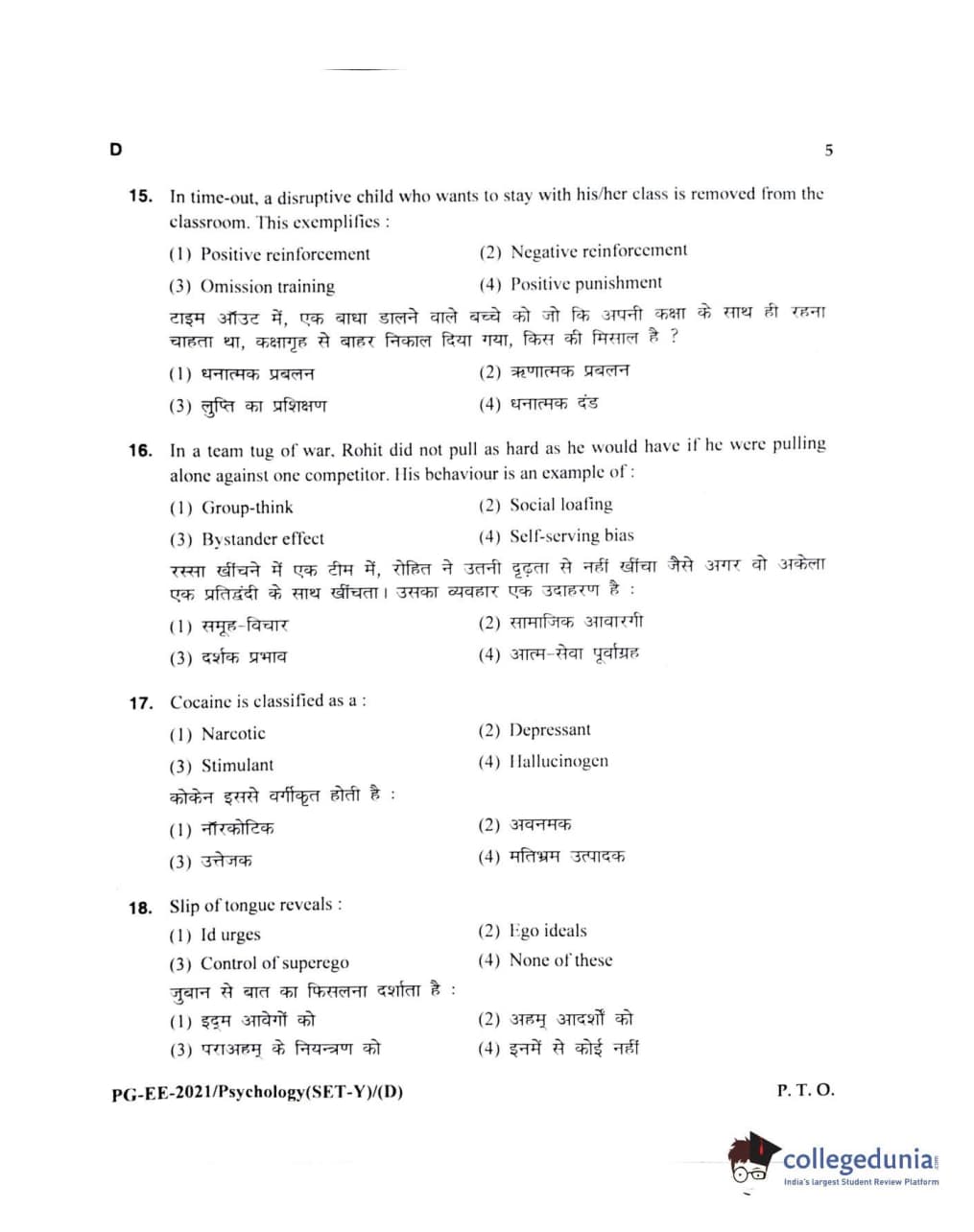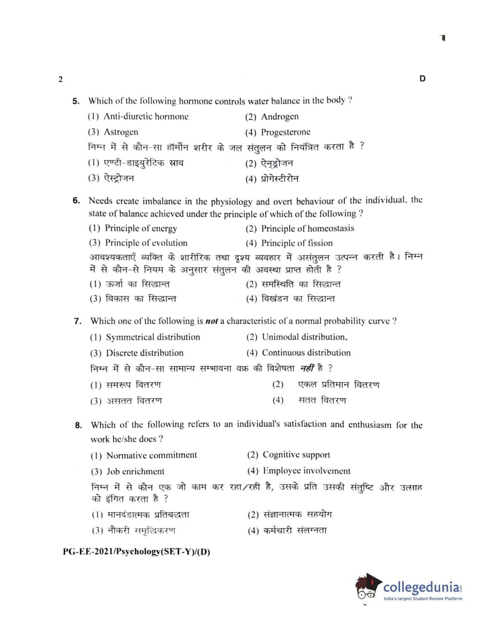MDUCEE 2021 M.A Psychology Set D Question Paper with Answer Key PDFs
