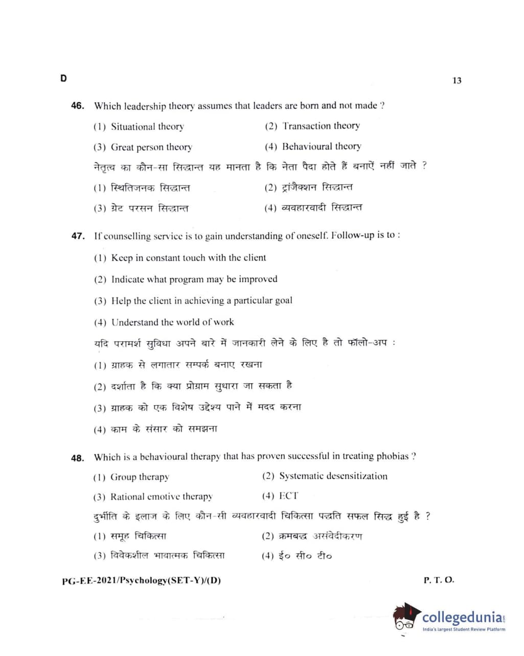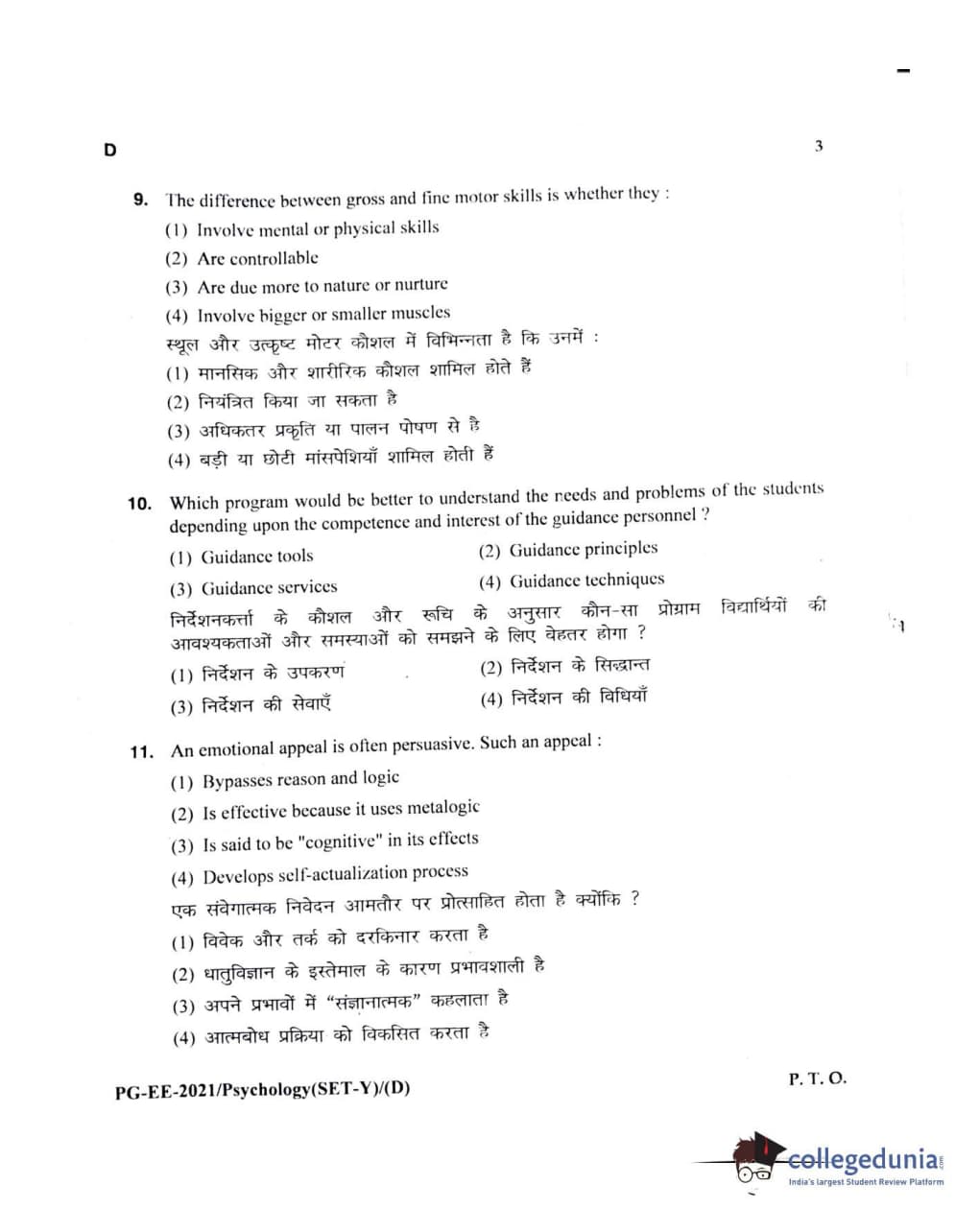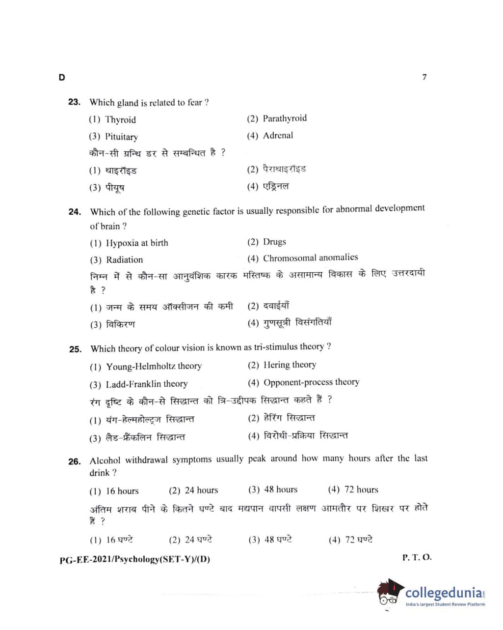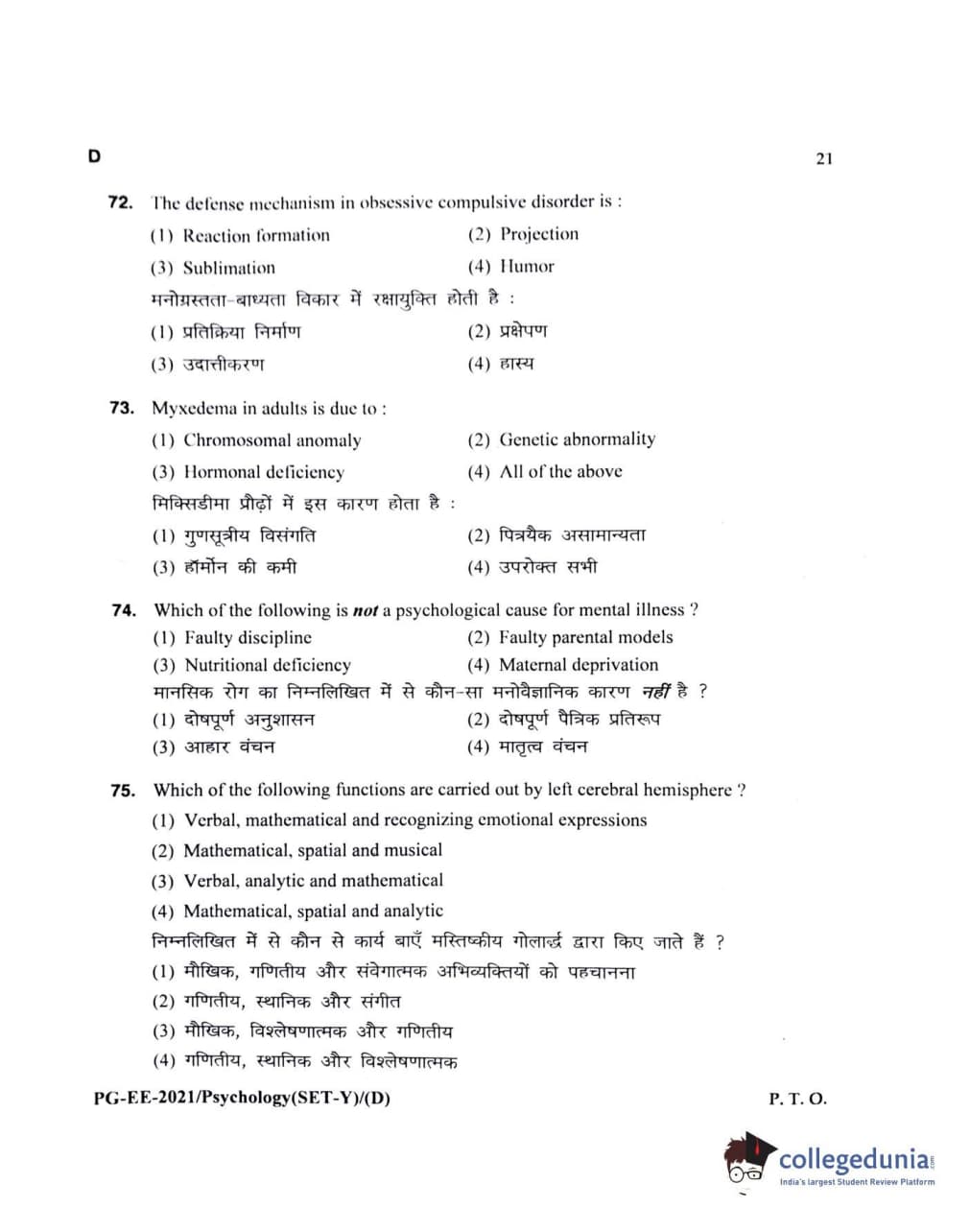 MDUCEE 2021 M.A Psychology Set D Question Paper with Answer Key PDFs