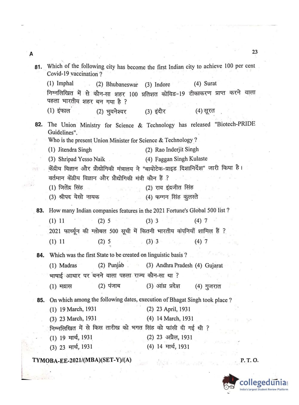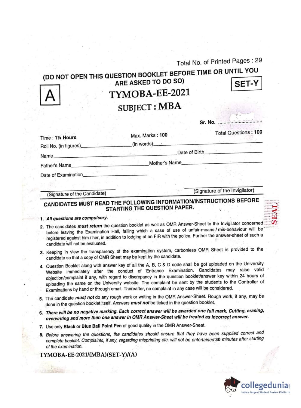 MDUCEE 2021 Management/MBA Question paper with answer key pdf conducted on September 21, 2021 is available for download. The exam was successfully organized by Maharishi Dayanand University. The question paper comprised a total of 100 questions.