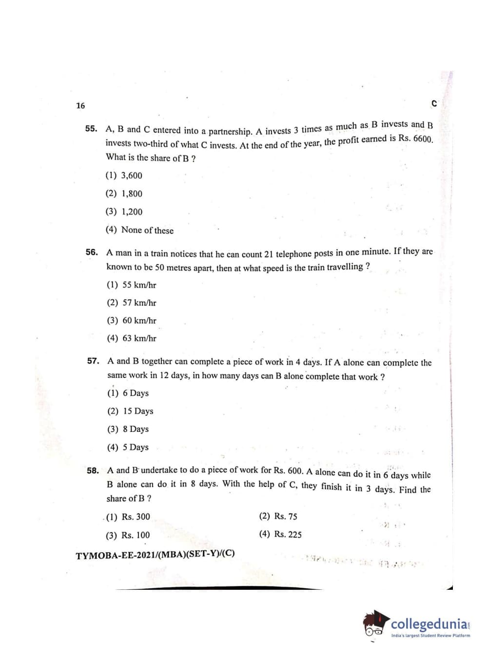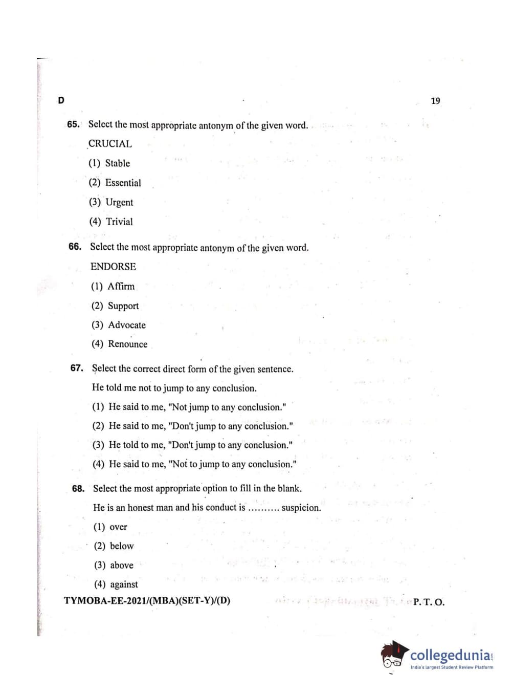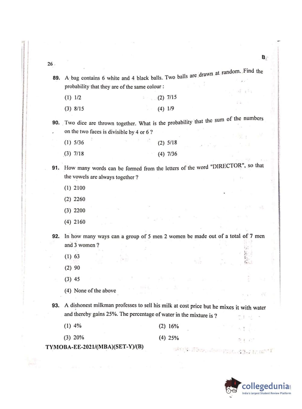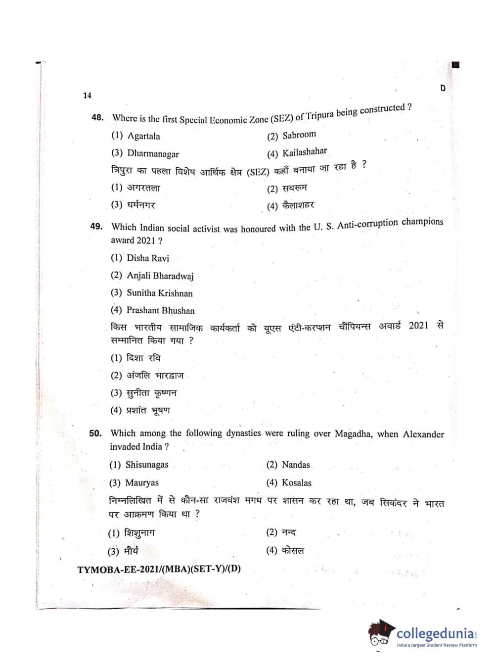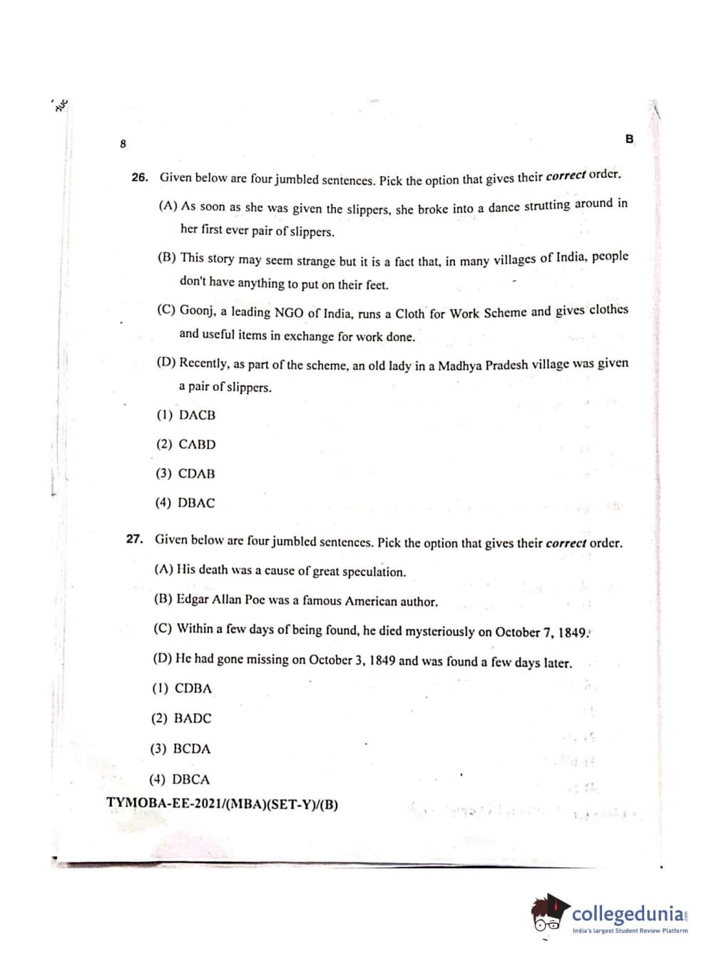 MDUCEE 2021 Management/MBA Question Paper with Answer Key PDFs