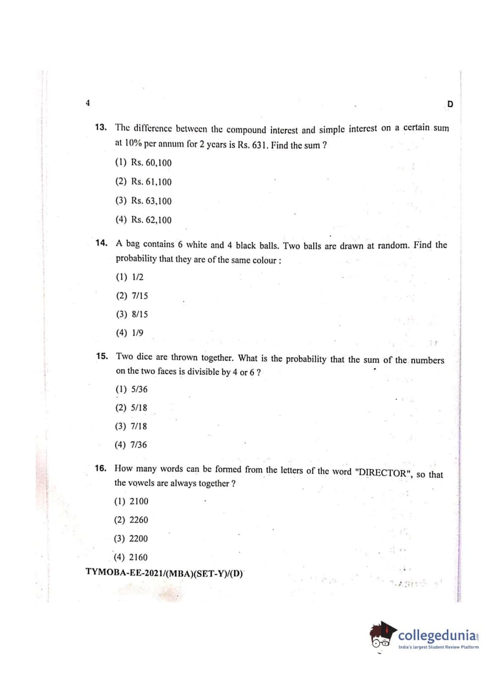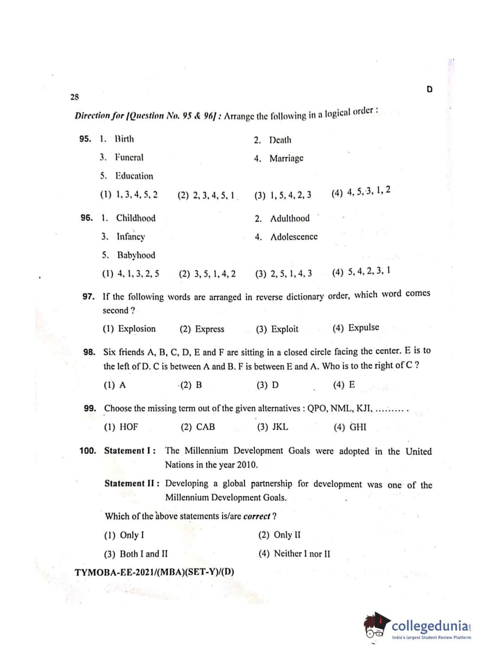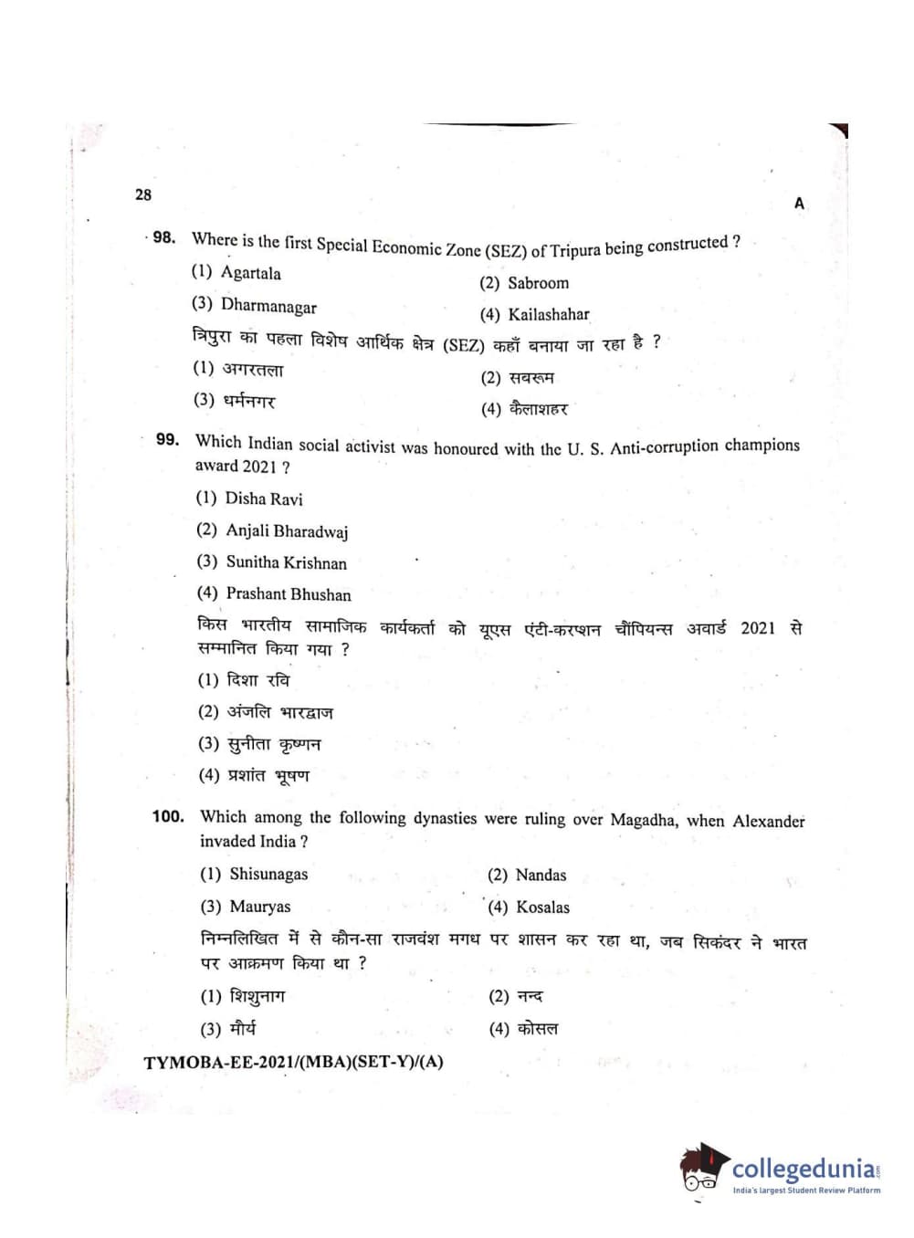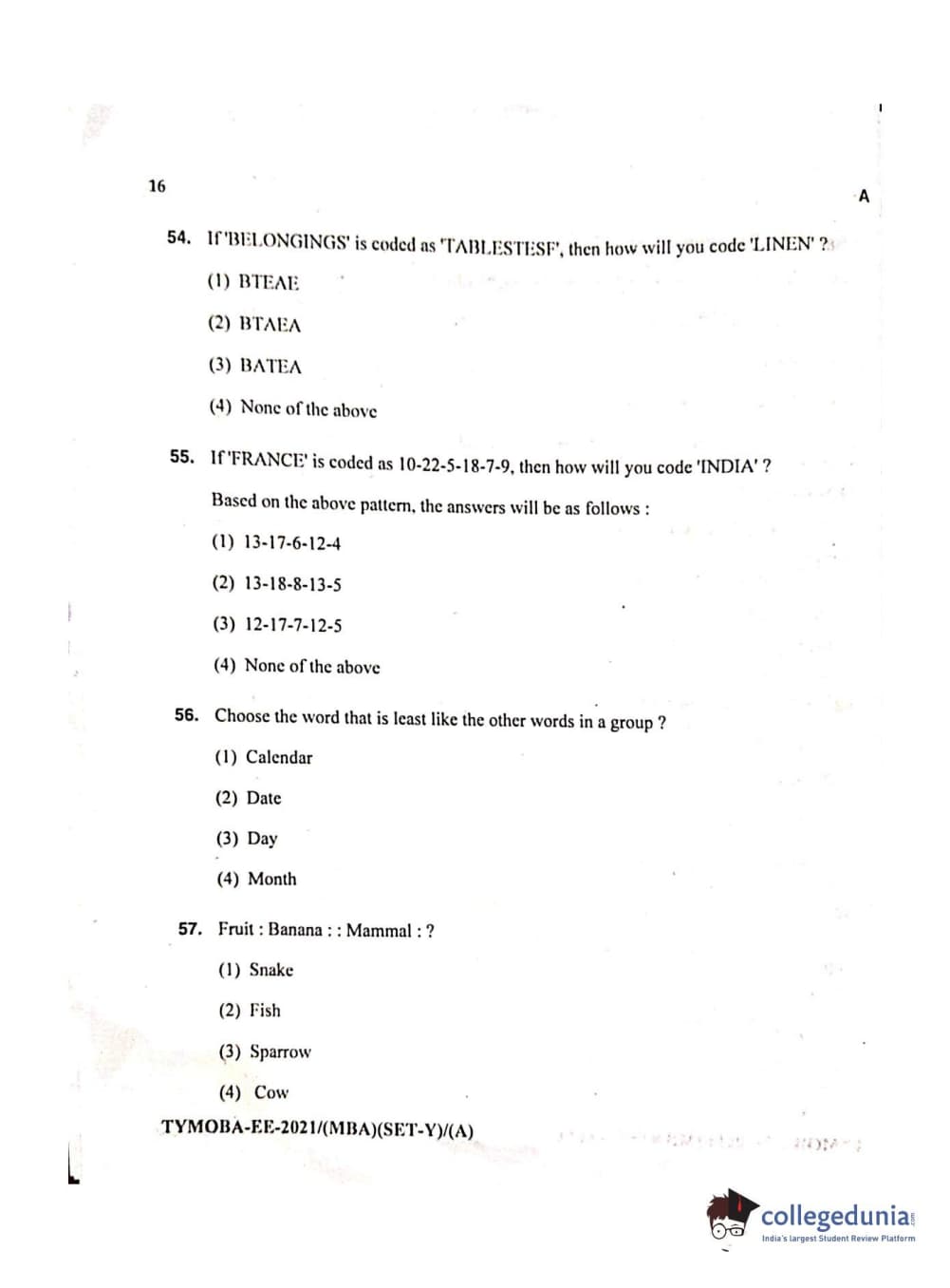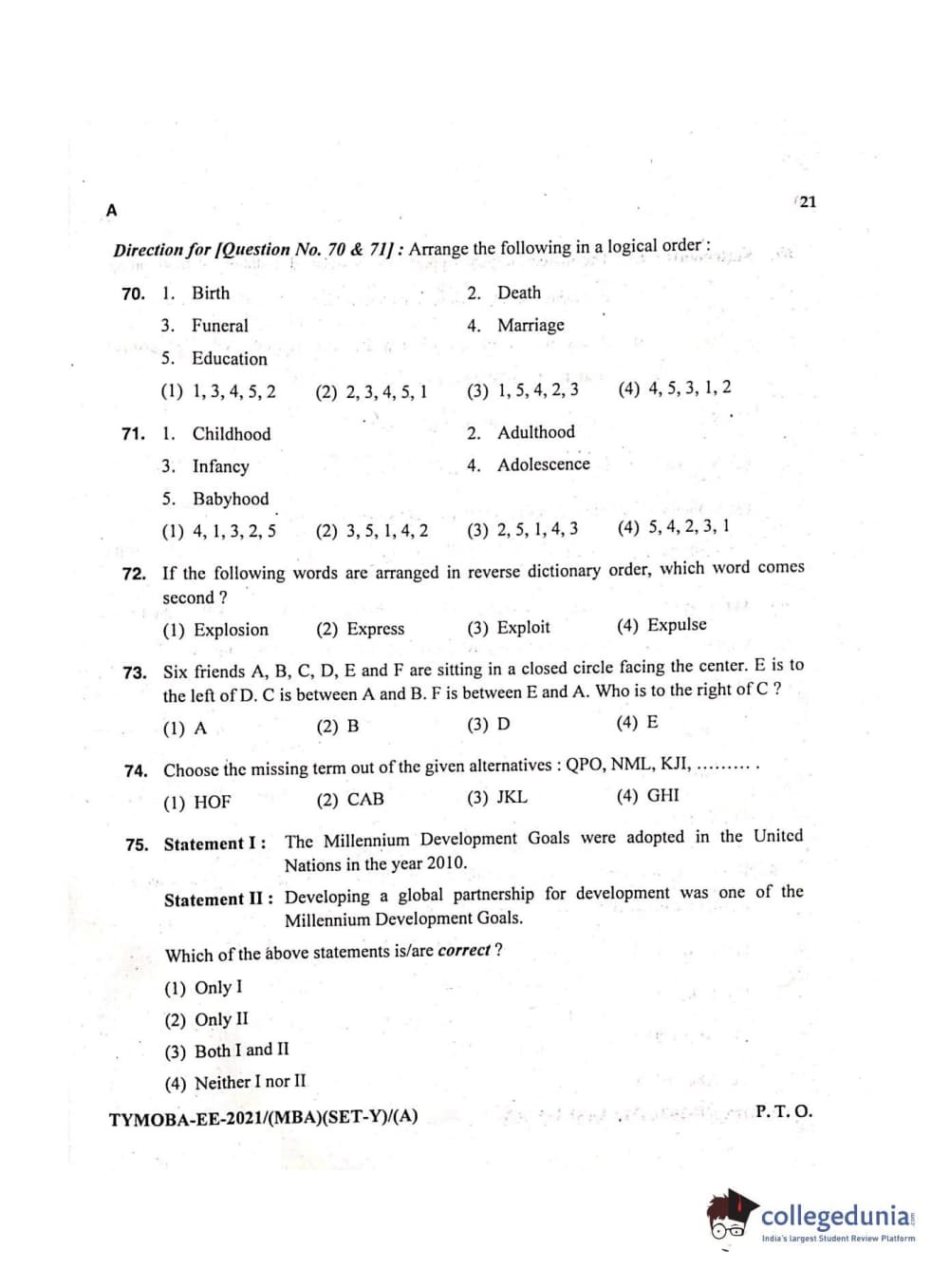 MDUCEE 2021 Management/MBA Question Paper with Answer Key PDFs