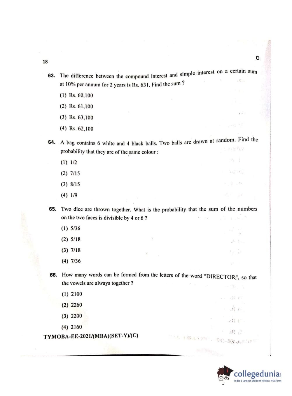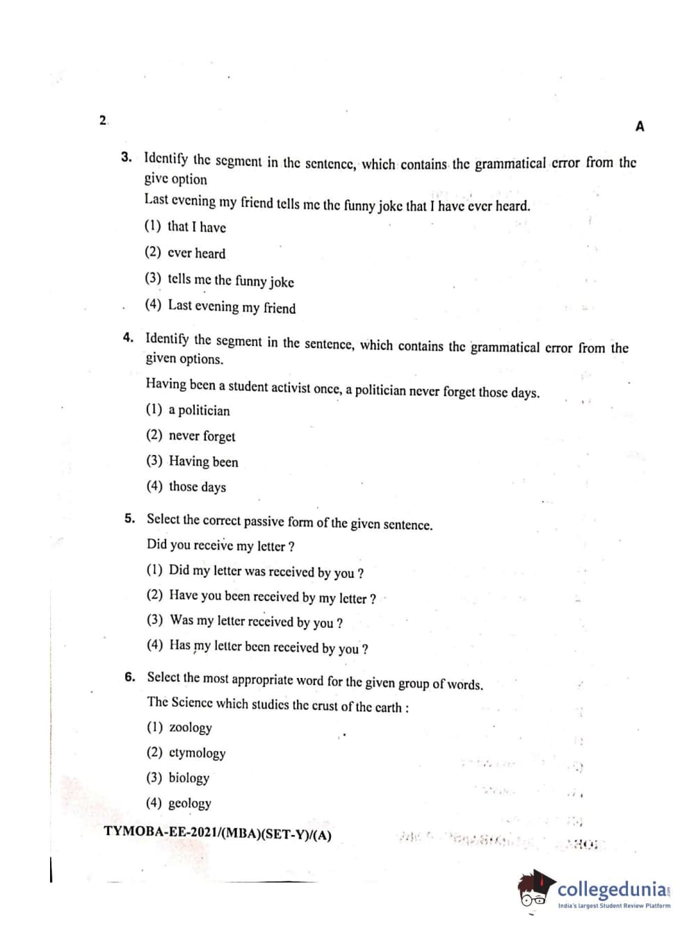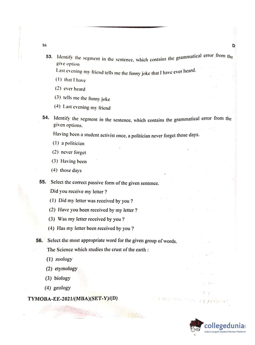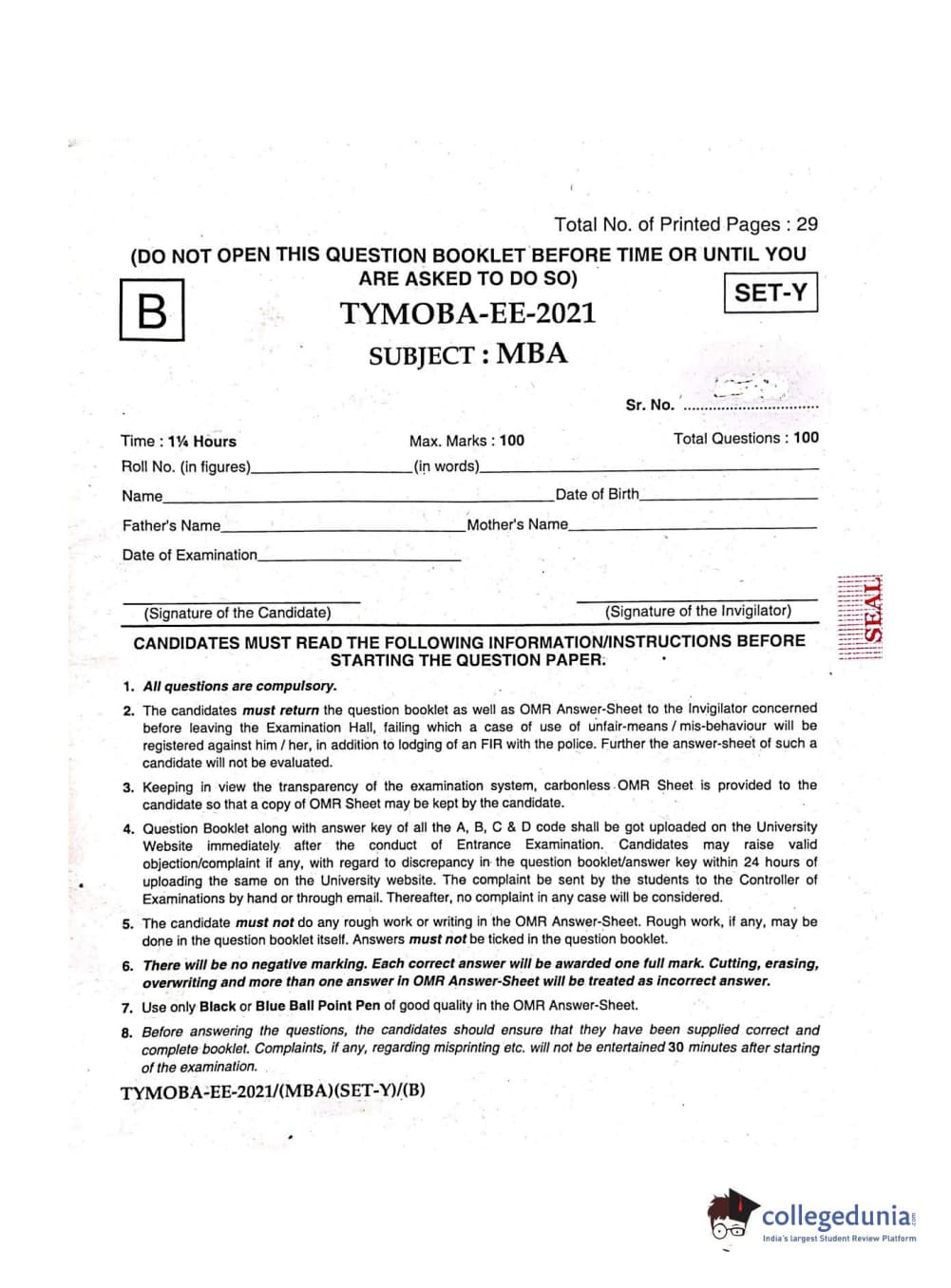 MDUCEE 2021 Management/MBA Question Paper with Answer Key PDFs
