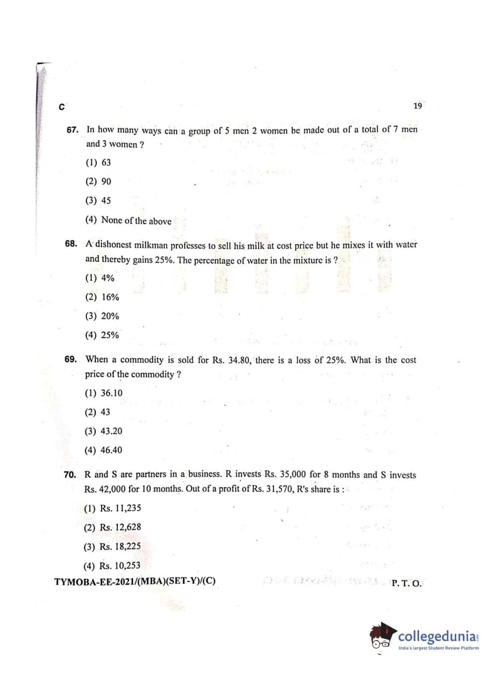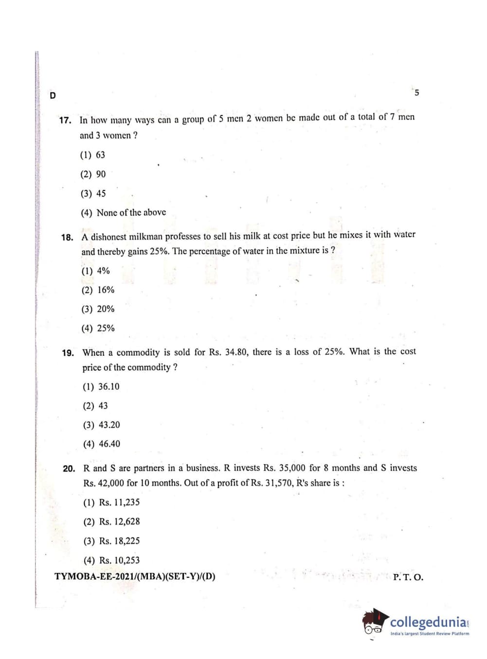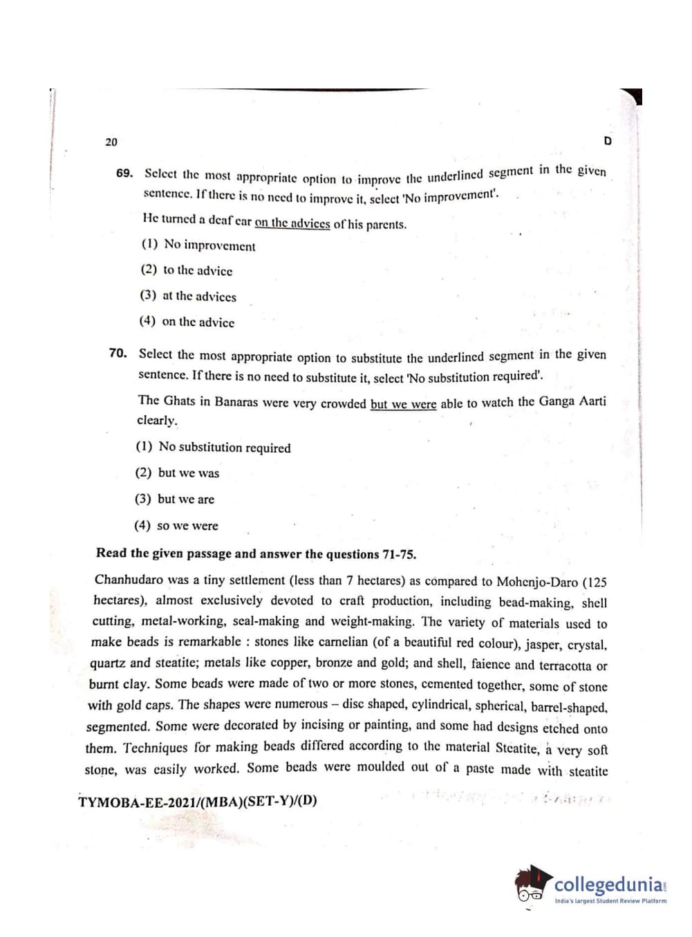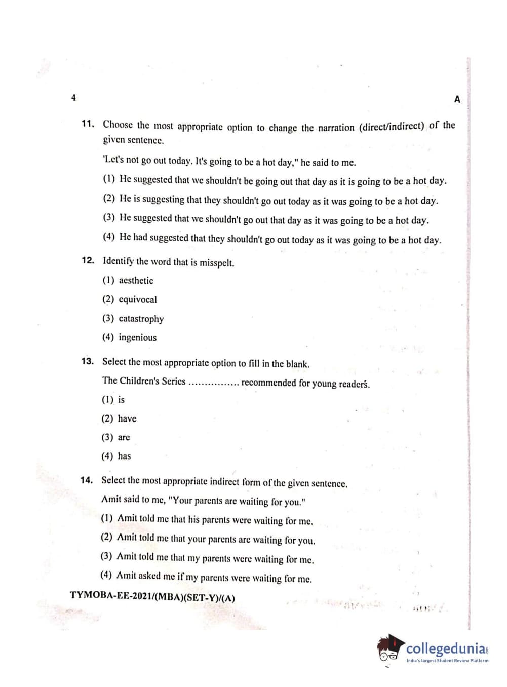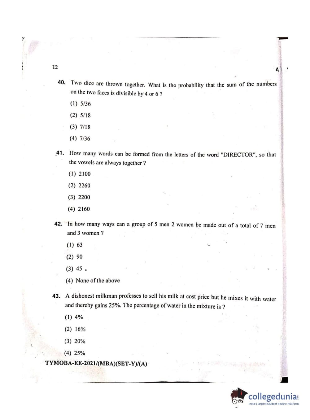MDUCEE 2021 Management/MBA Question Paper with Answer Key PDFs