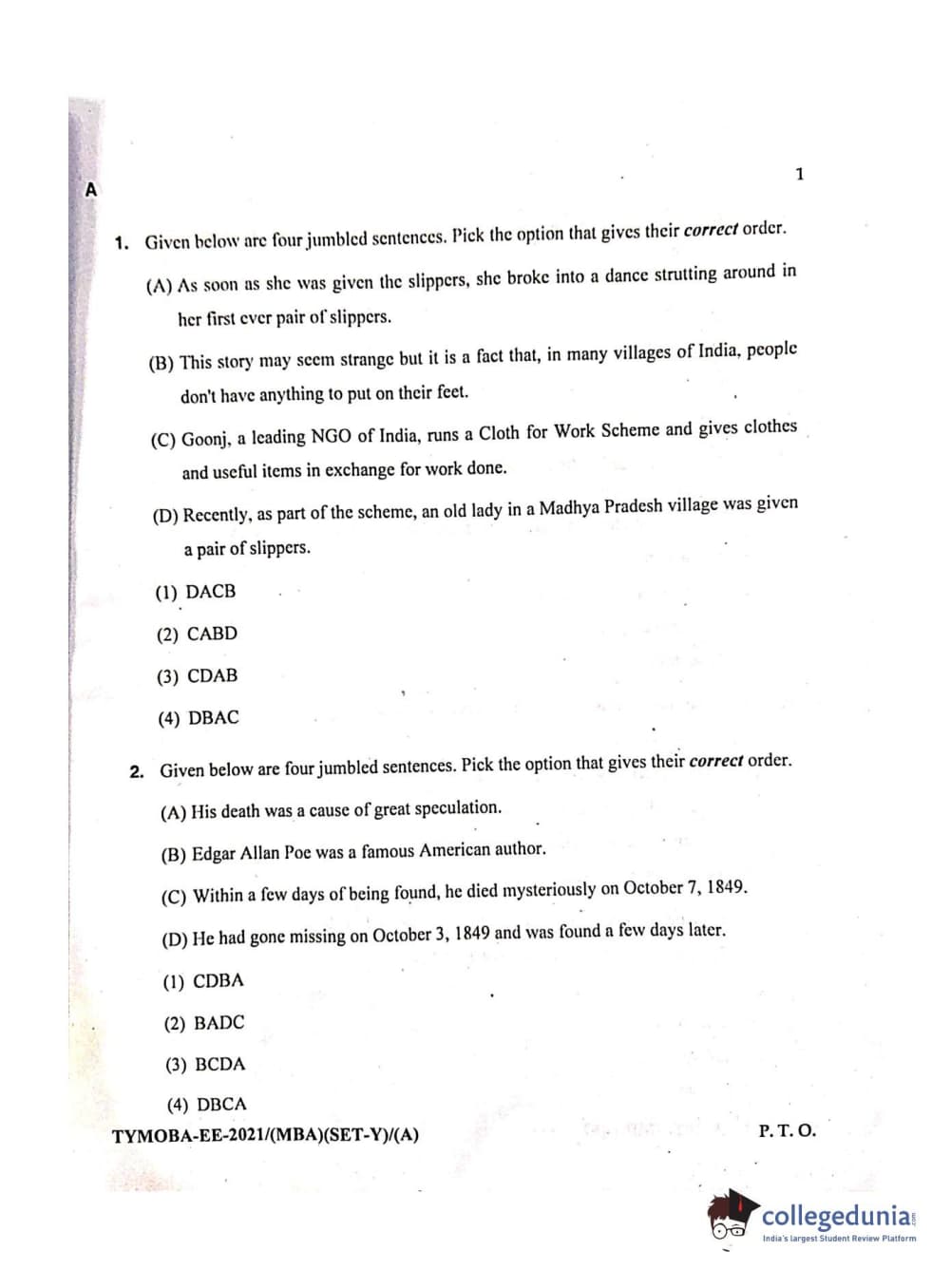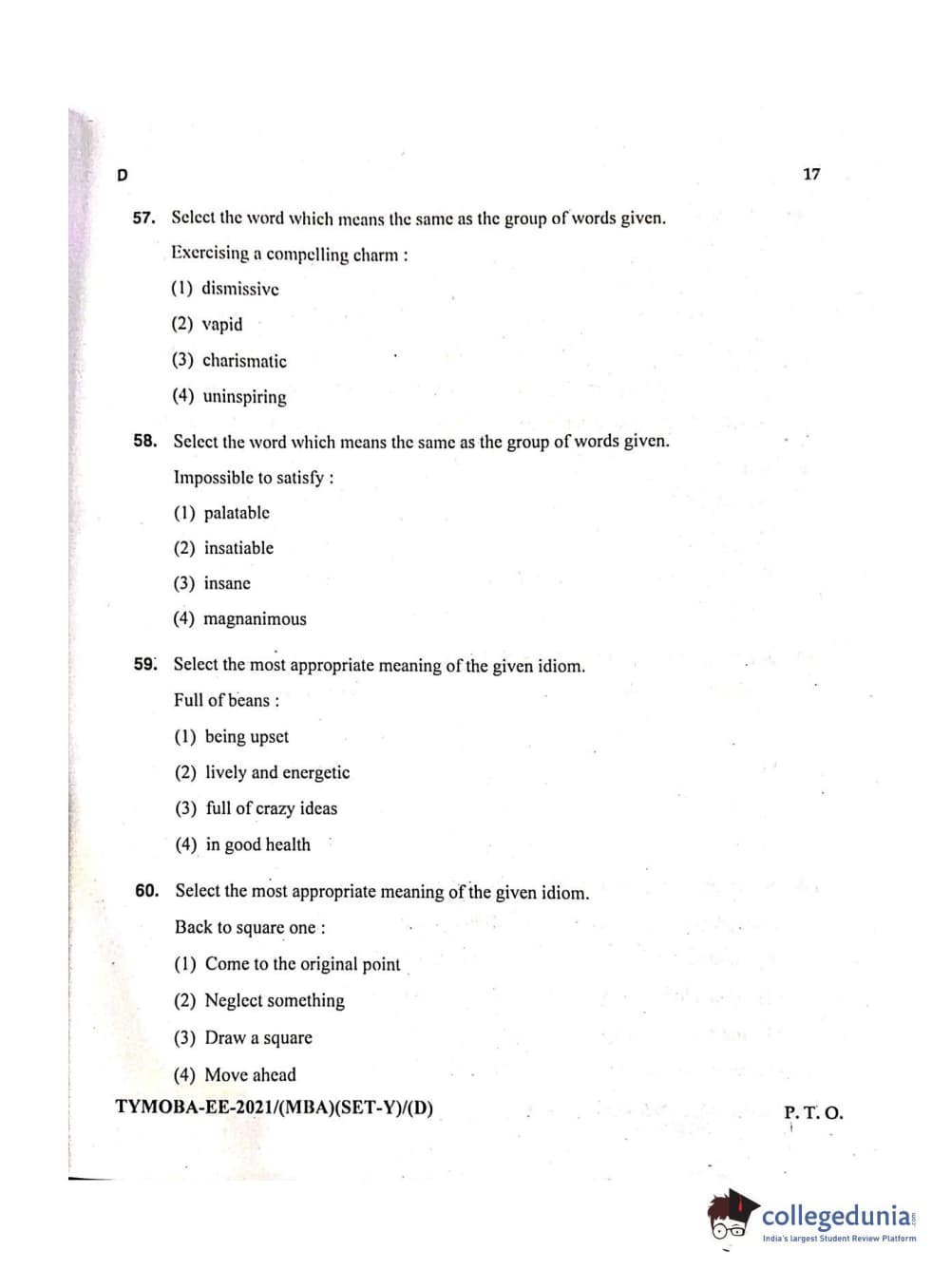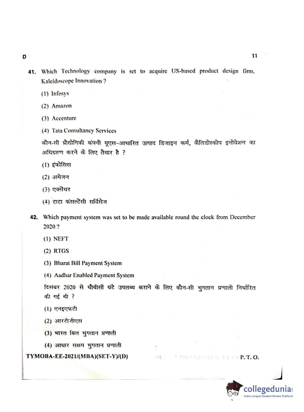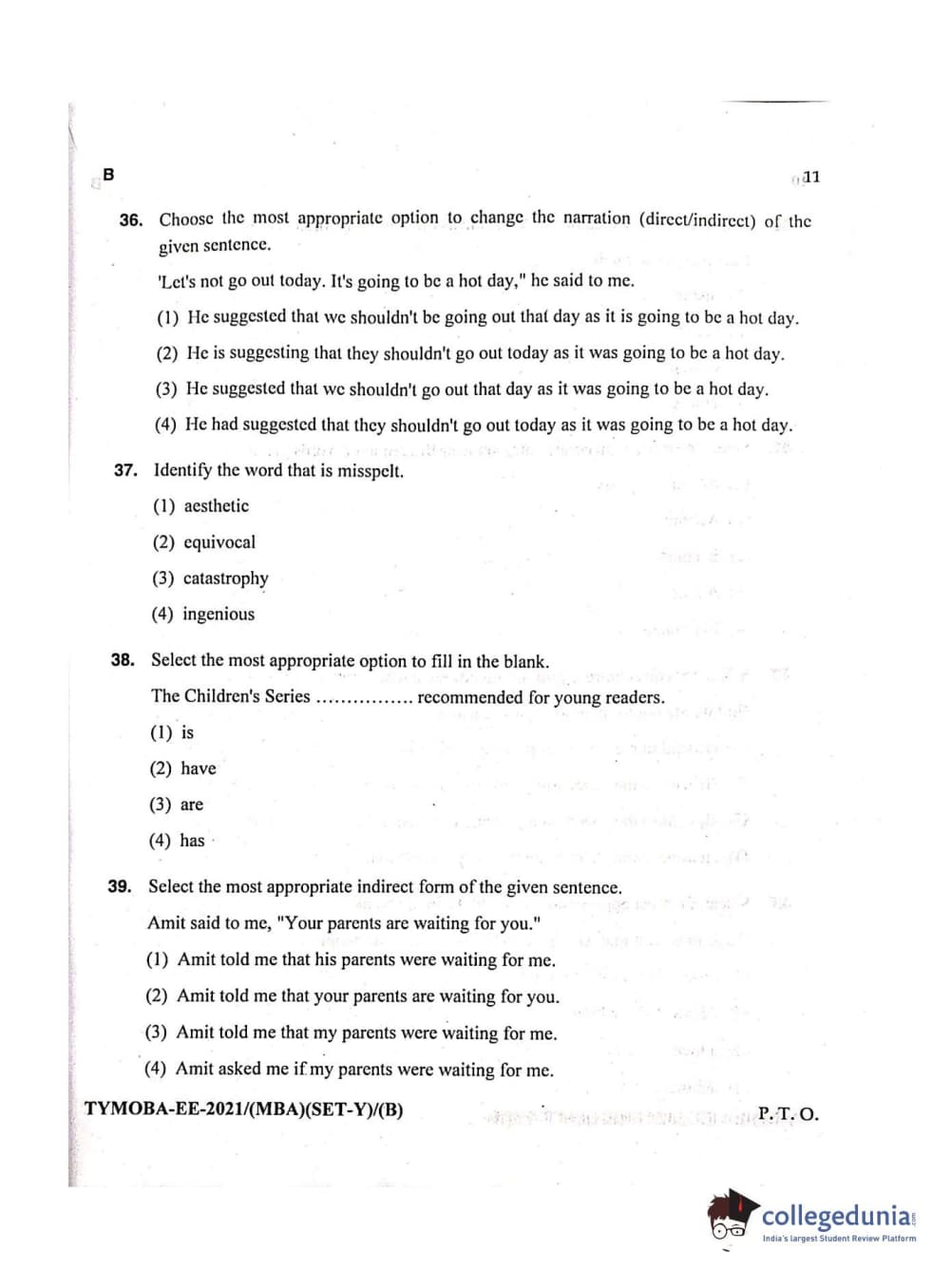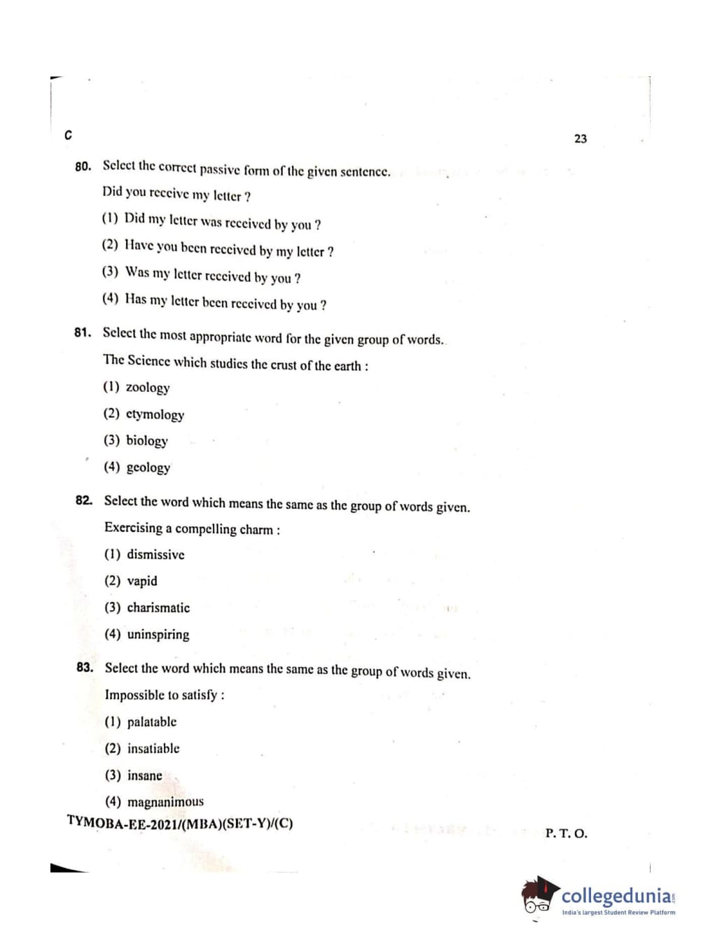 MDUCEE 2021 Management/MBA Question Paper with Answer Key PDFs