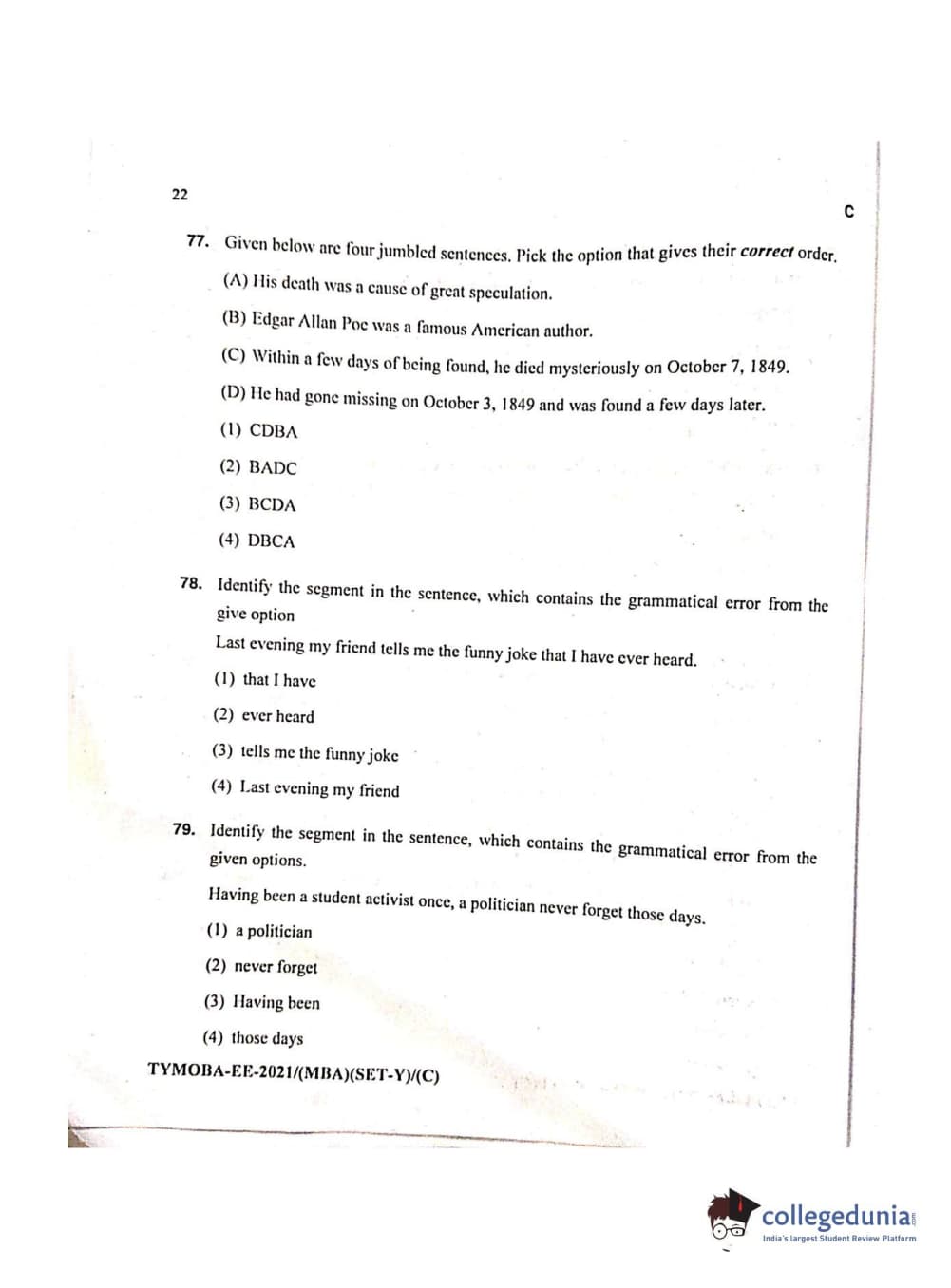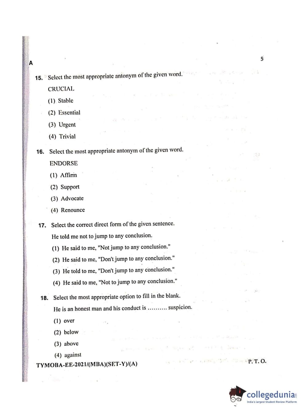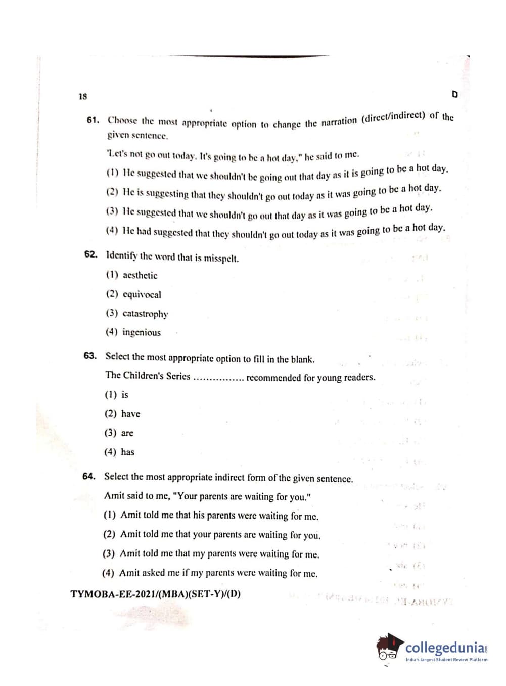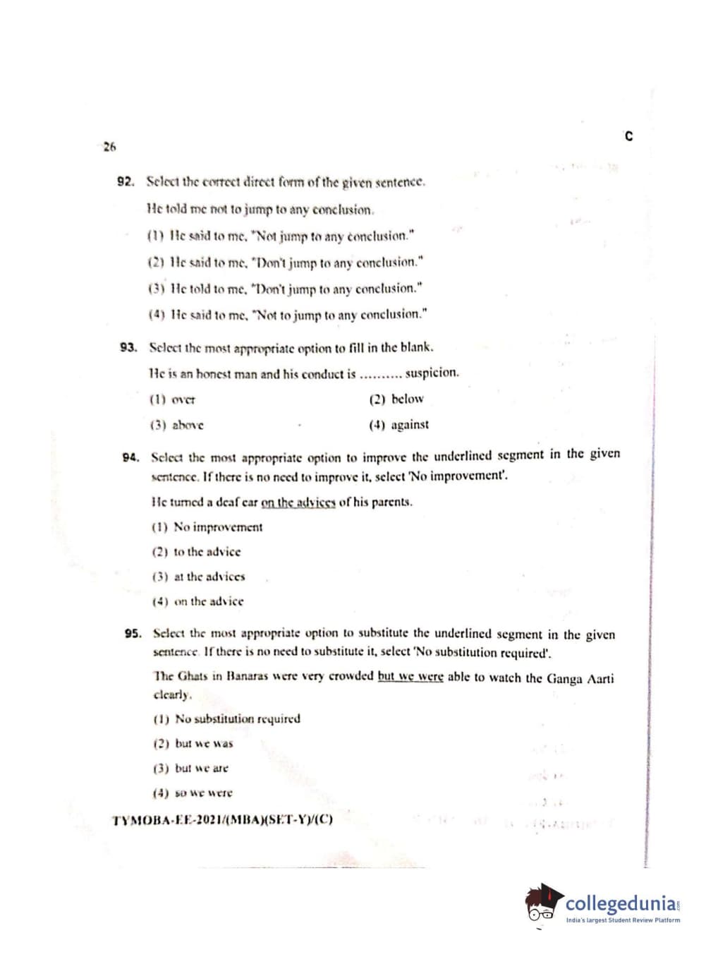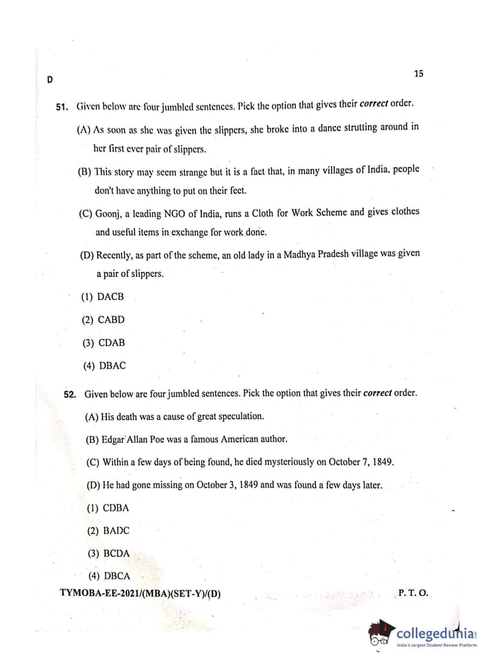 MDUCEE 2021 Management/MBA Question Paper with Answer Key PDFs