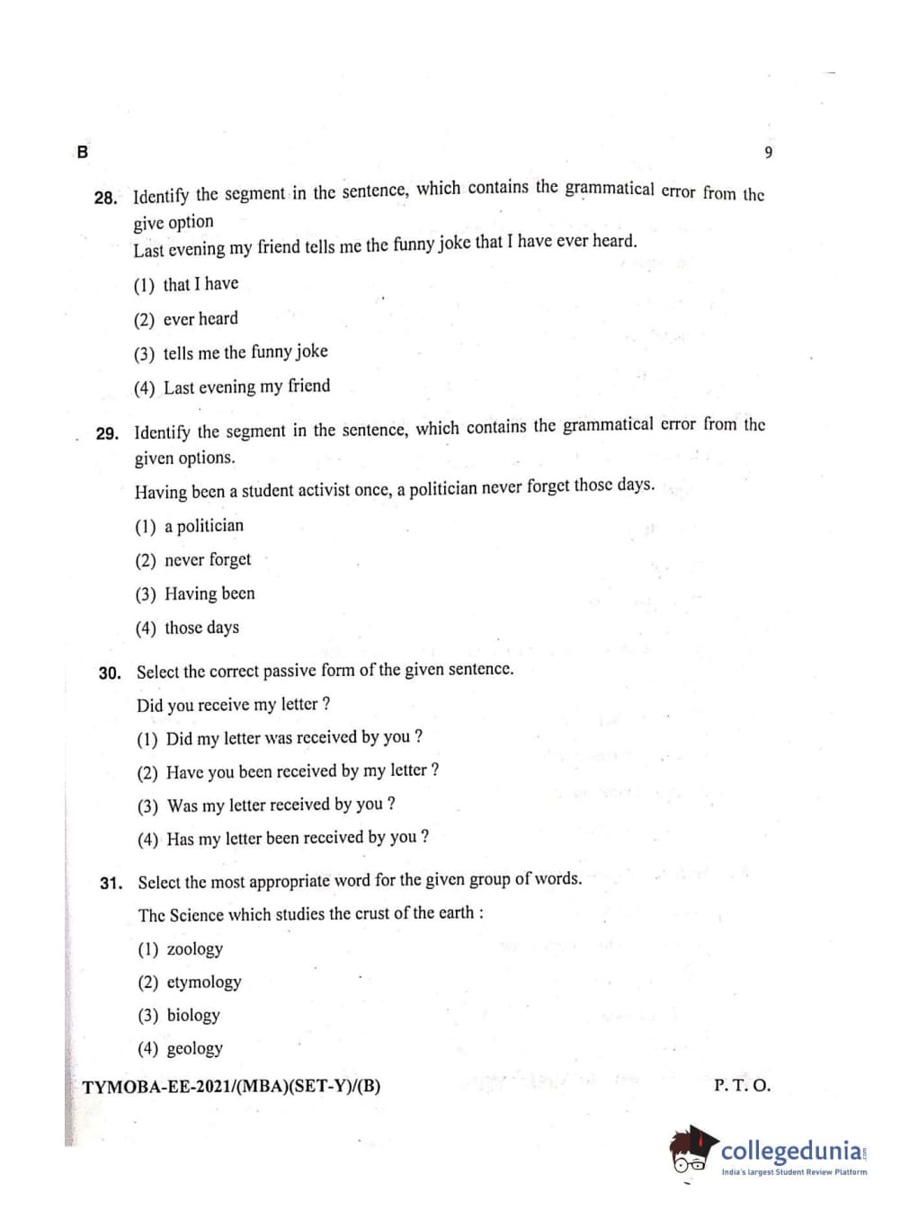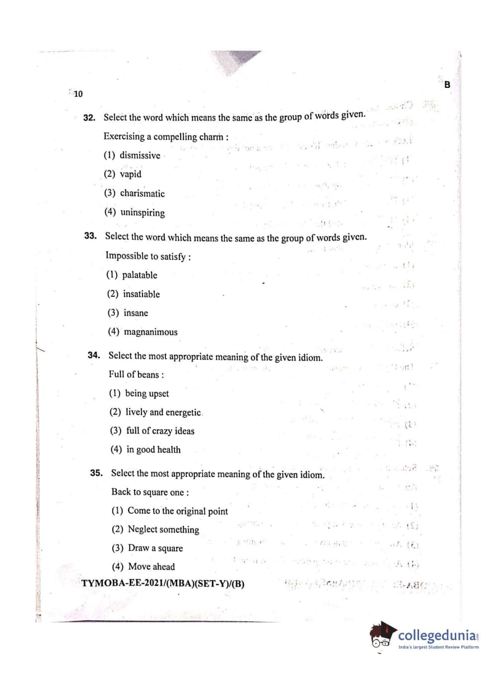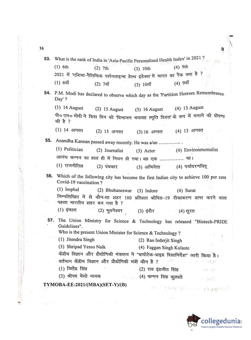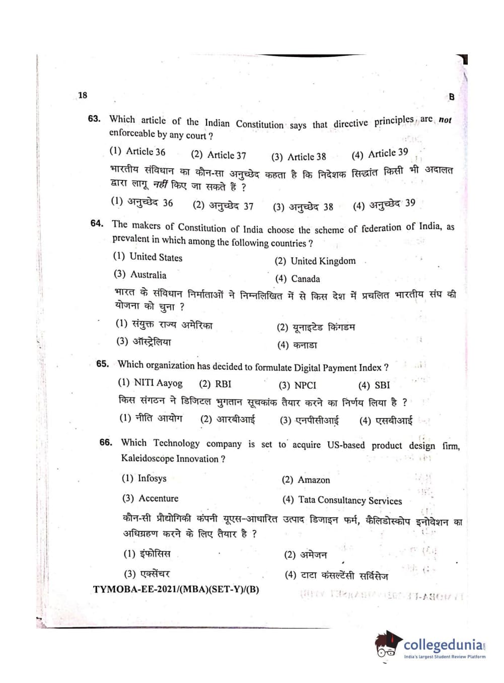 MDUCEE 2021 Management/MBA Set B Question paper with answer key pdf conducted on September 21, 2021 is available for download. The exam was successfully organized by Maharishi Dayanand University. The question paper comprised a total of 100 questions.