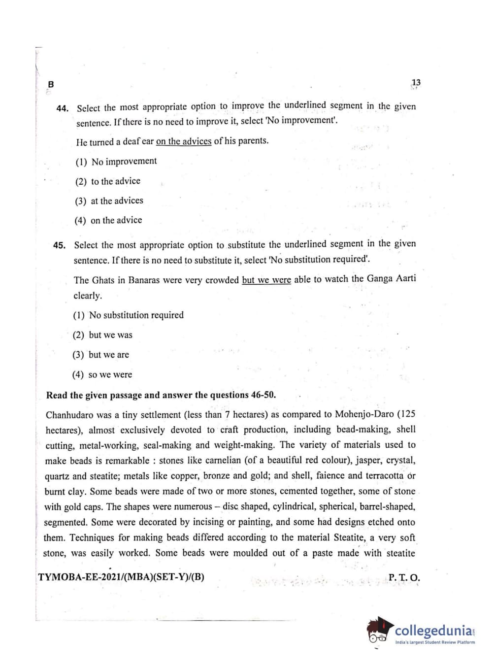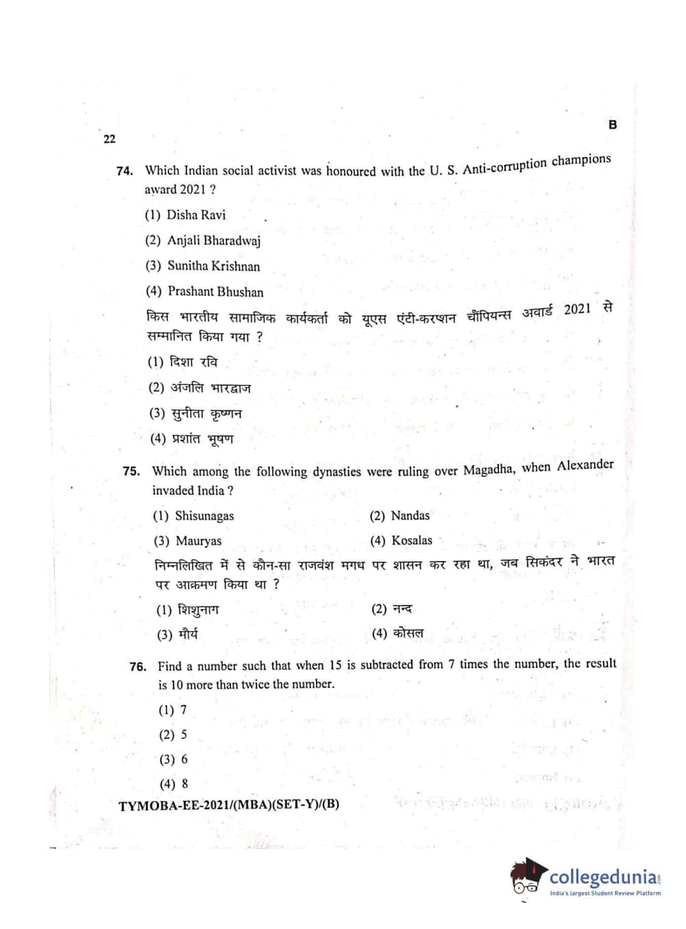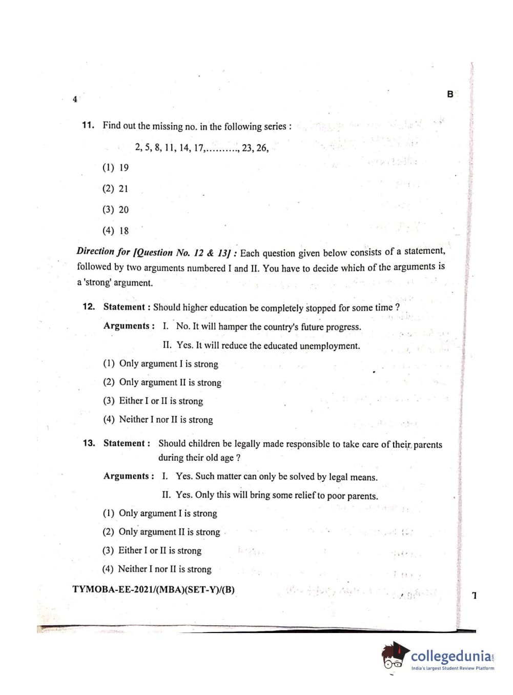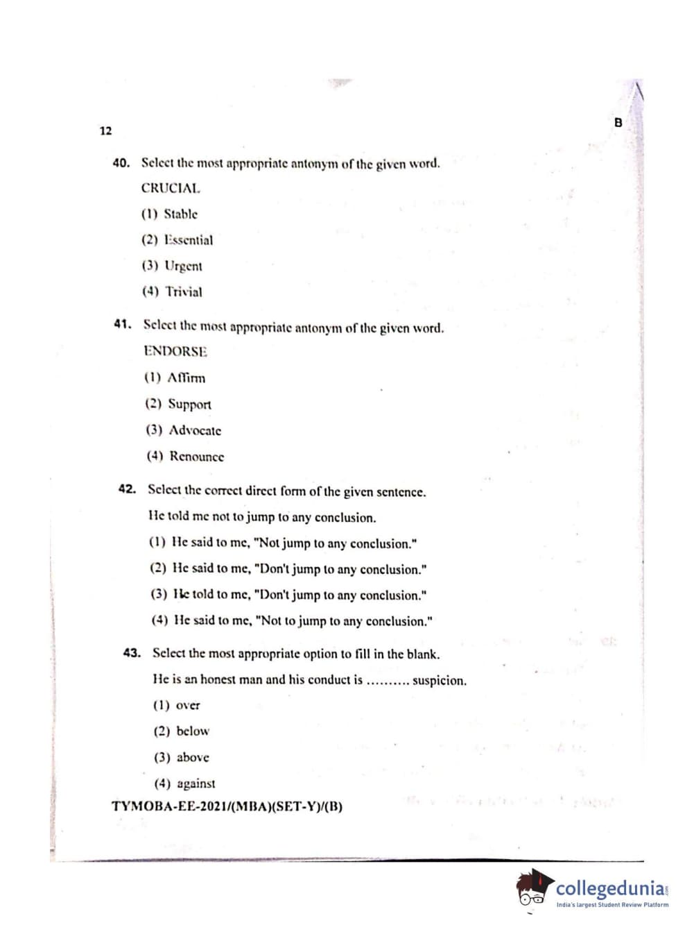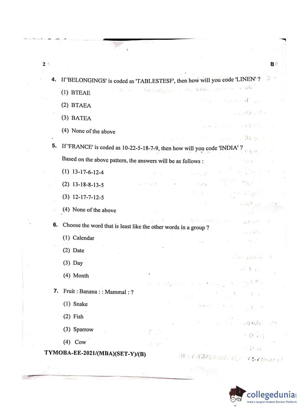 MDUCEE 2021 Management/MBA Set B Question Paper with Answer Key PDFs