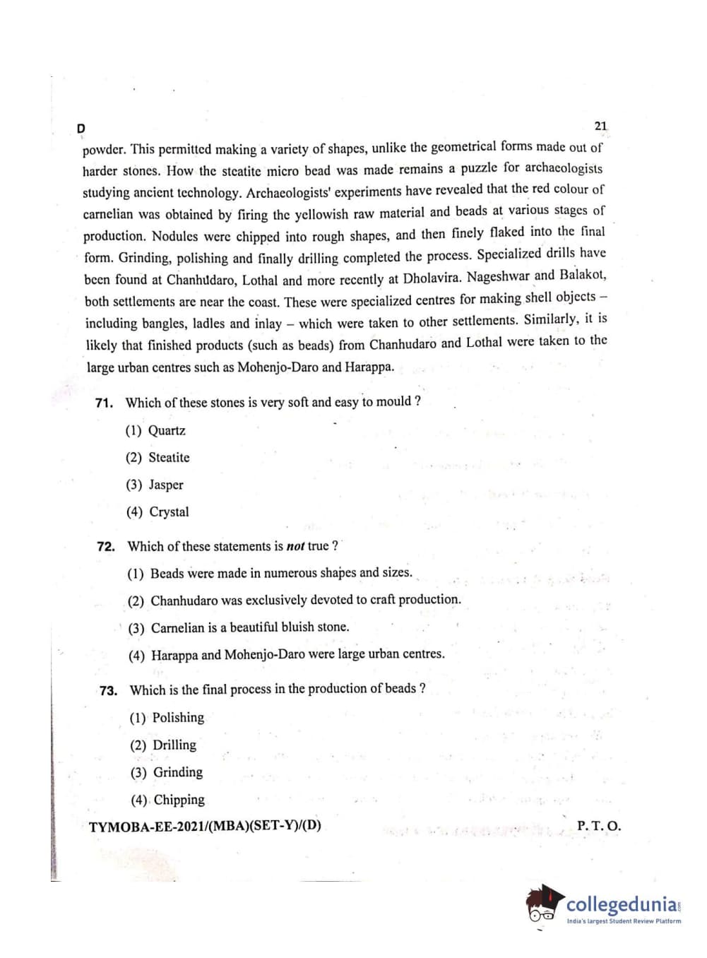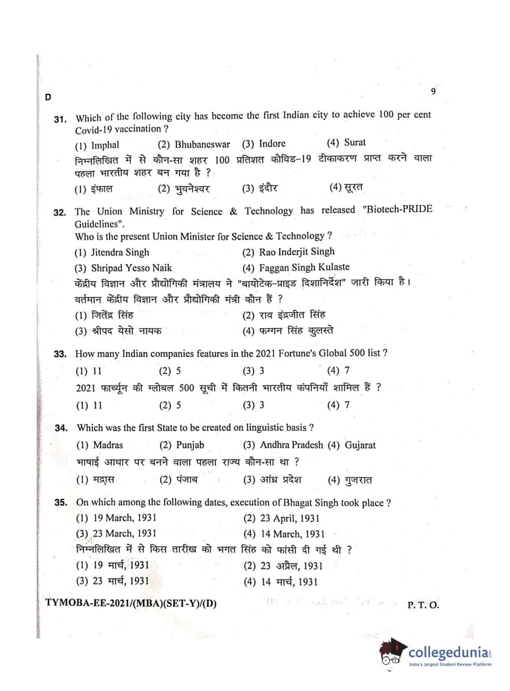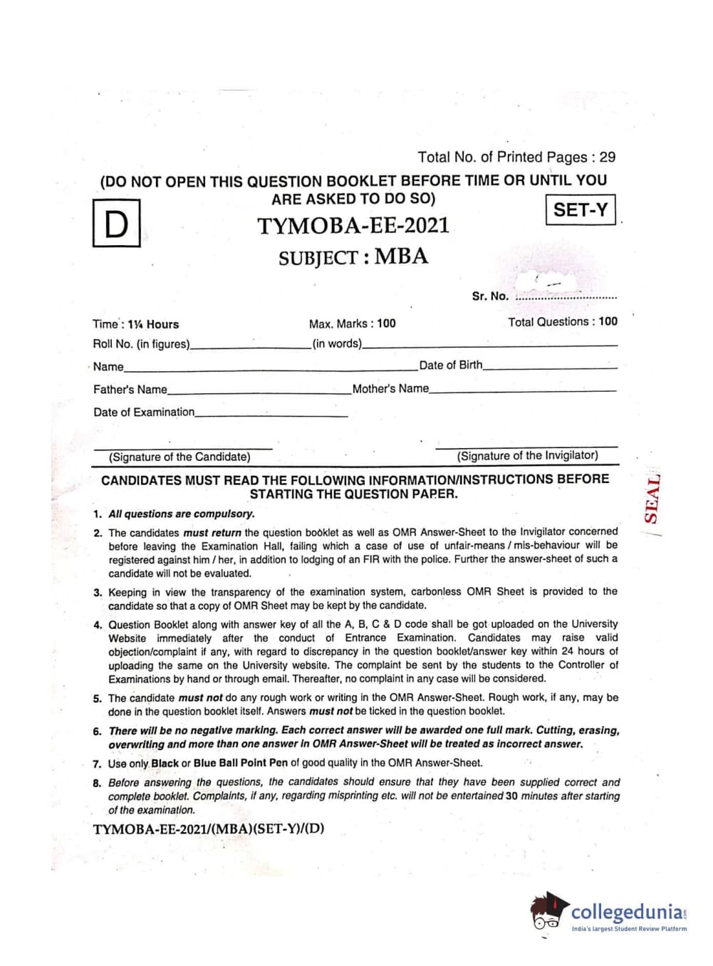 MDUCEE 2021 Management/MBA Set D Question paper with answer key pdf conducted on September 21, 2021 is available for download. The exam was successfully organized by Maharishi Dayanand University. The question paper comprised a total of 100 questions.