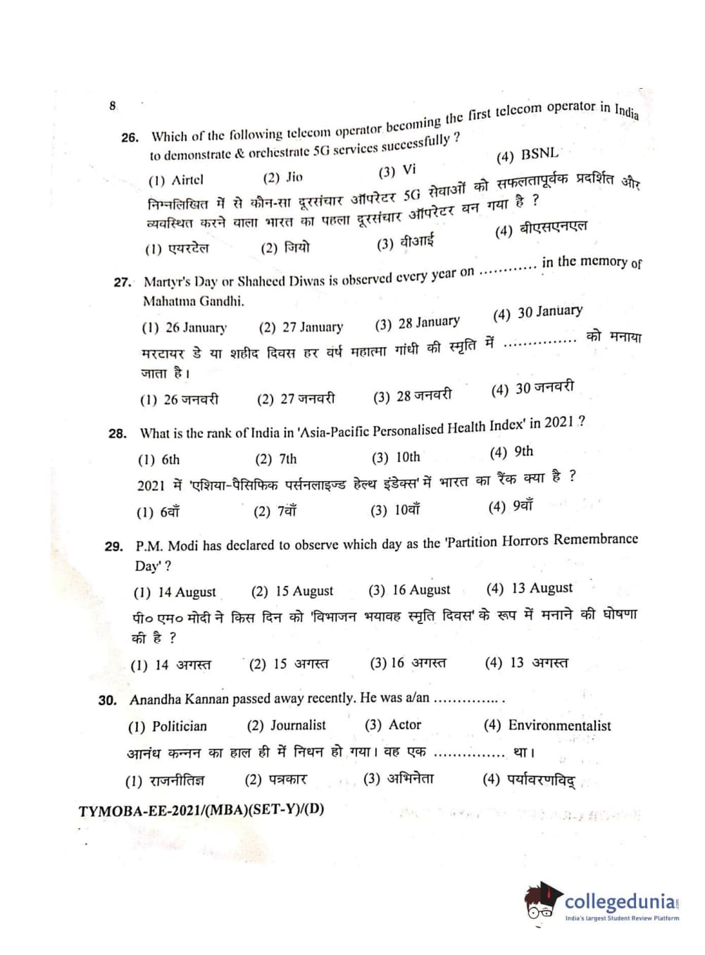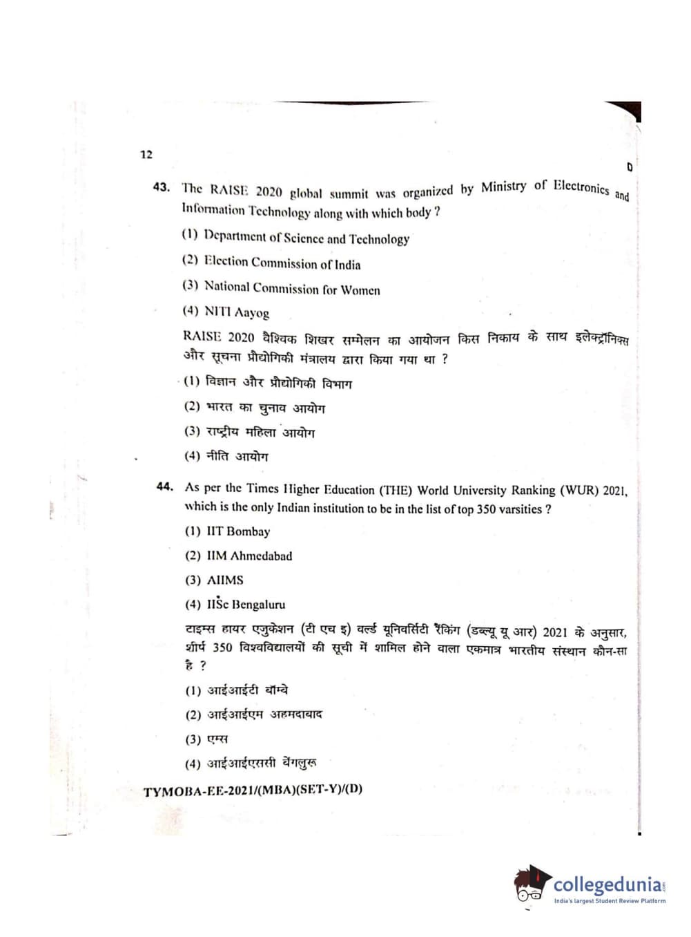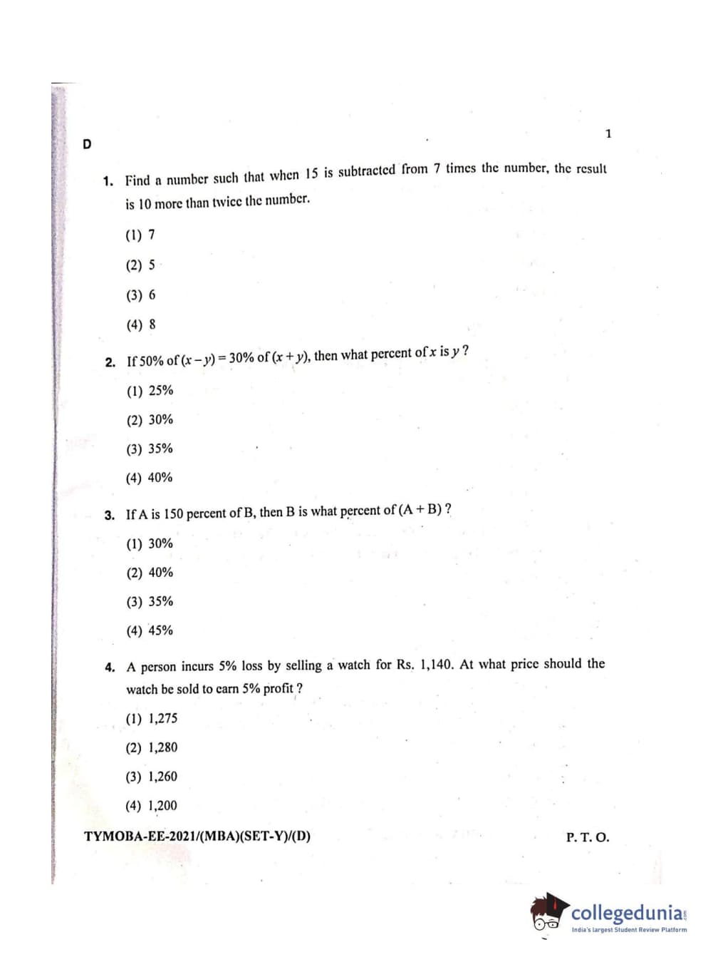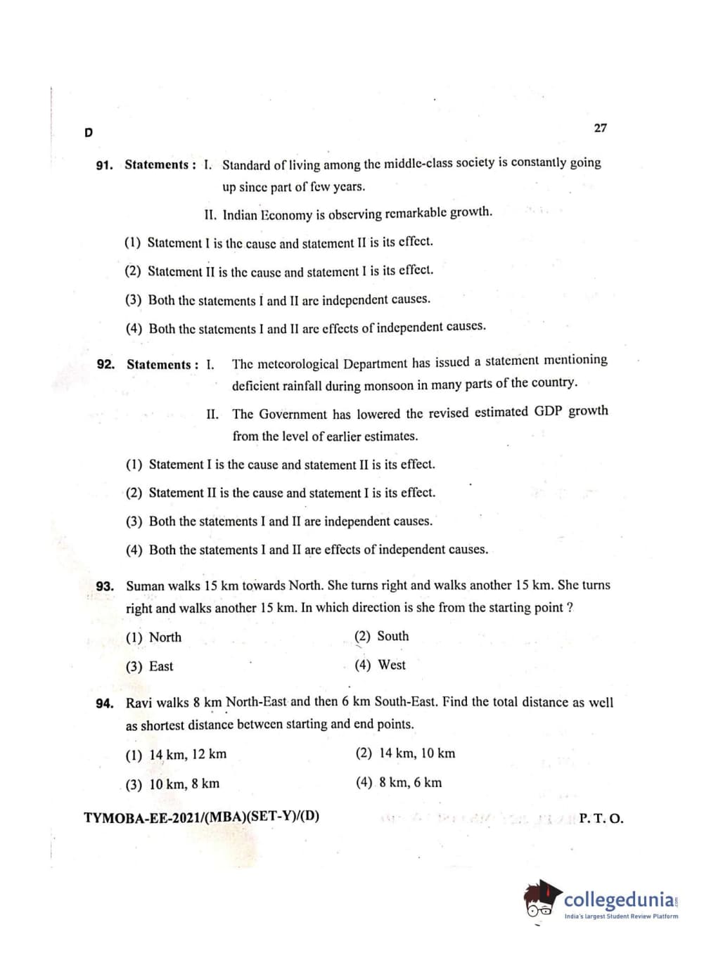 MDUCEE 2021 Management/MBA Set D Question paper with answer key pdf conducted on September 21, 2021 is available for download. The exam was successfully organized by Maharishi Dayanand University. The question paper comprised a total of 100 questions.