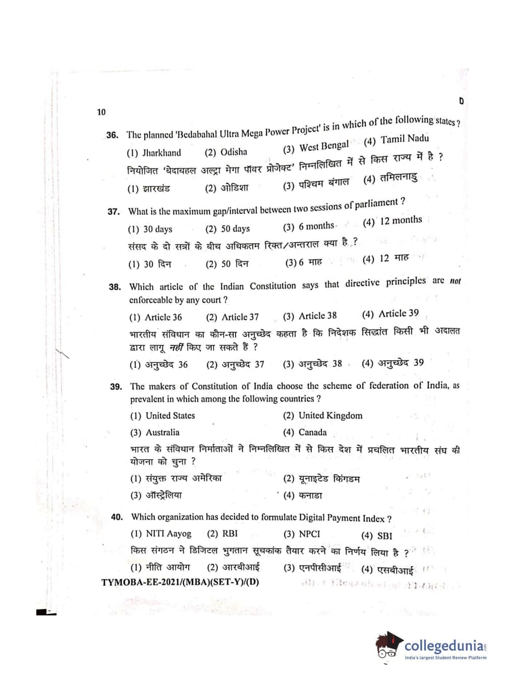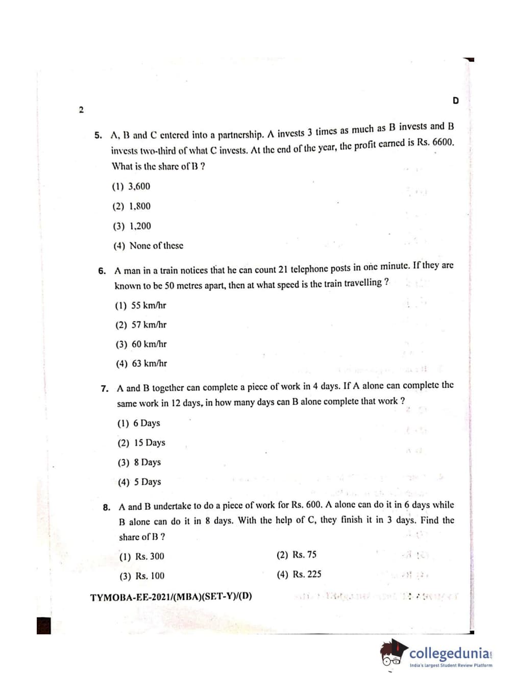 | MDUCEE 2021 Management/MBA Set D Question Paper PDF | MDUCEE 2021 Management/MBA Set D Answer Key PDF |
