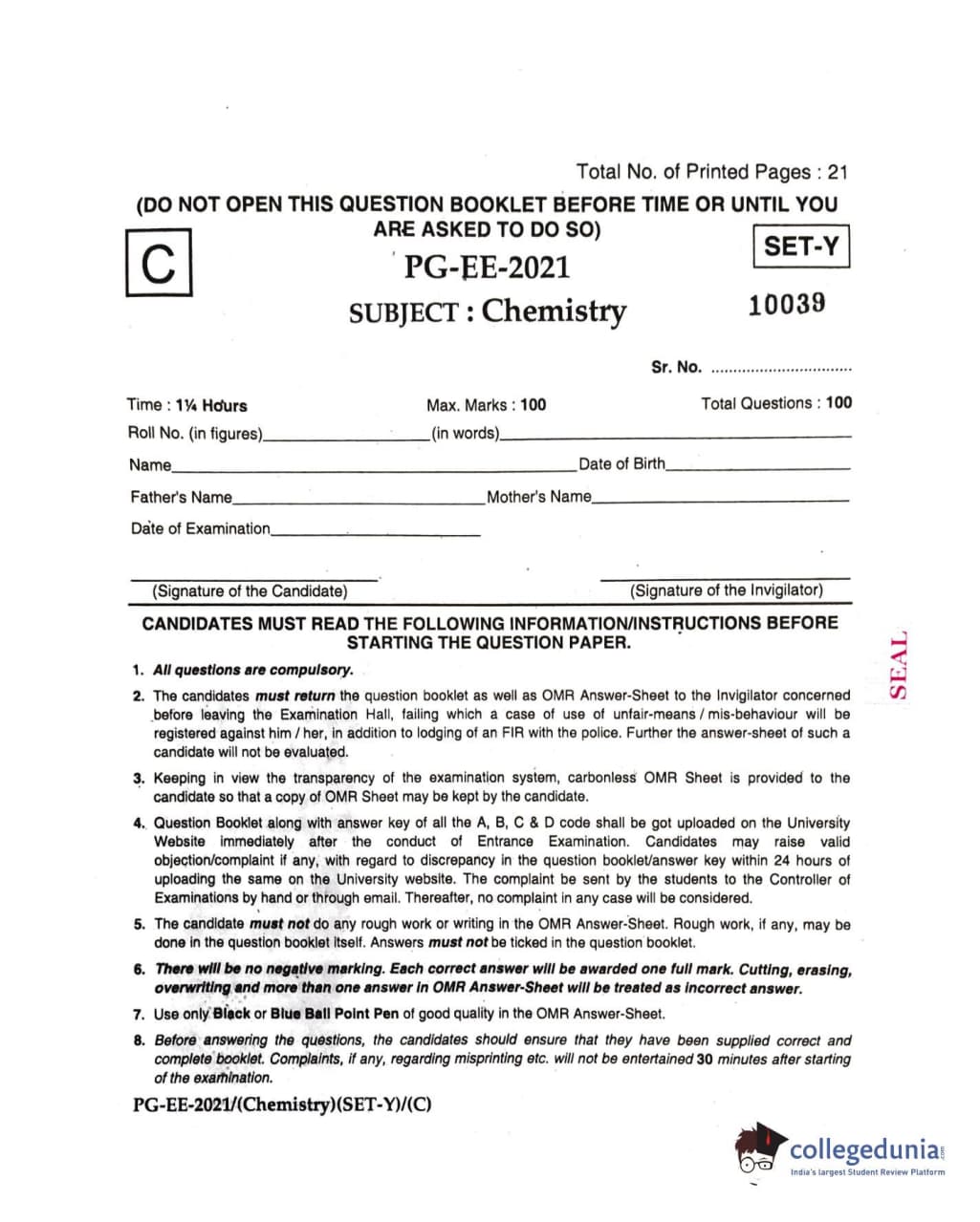 | MDUCEE 2021 M.Sc. Chemistry Set C Question Paper PDF | MDUCEE 2021 M.Sc. Chemistry Set C Answer Key PDF |