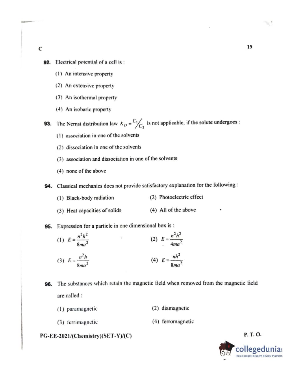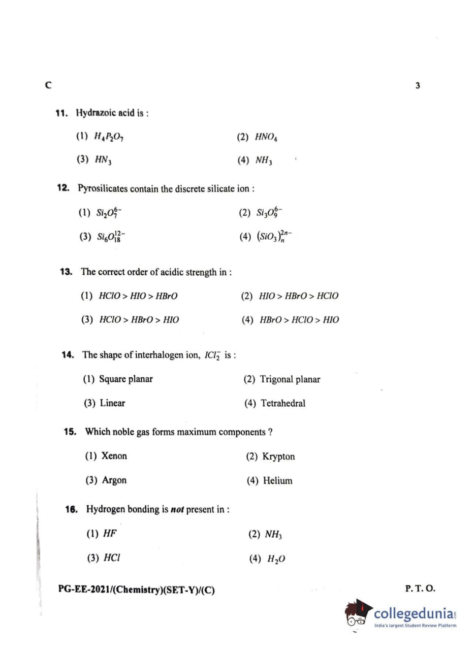 MDUCEE 2021 M.Sc. Chemistry Set C Question Paper with Answer Key PDFs
