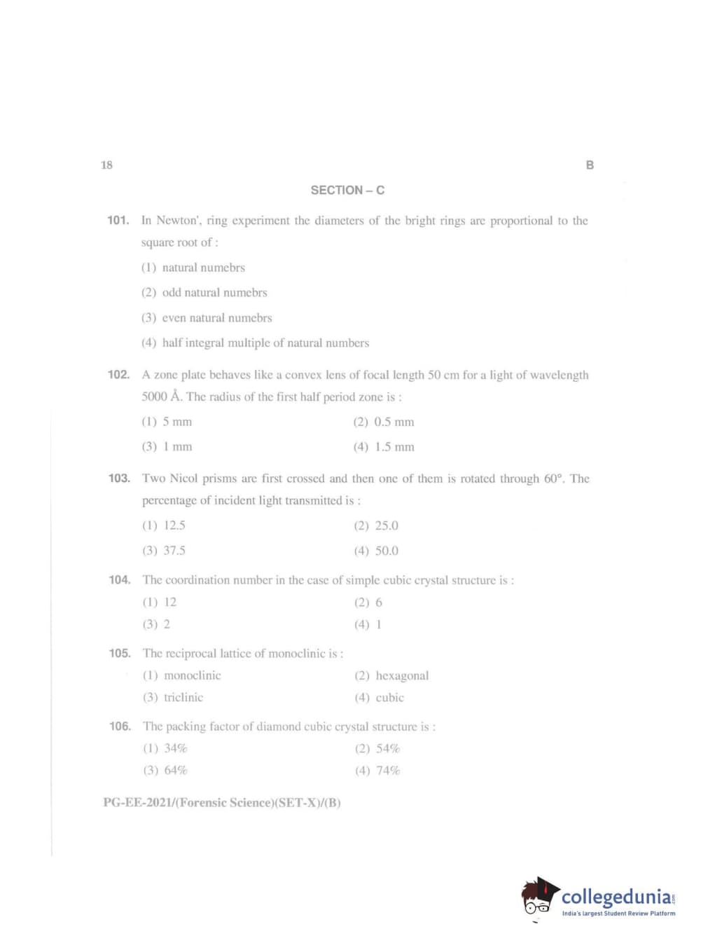| MDUCEE 2021 M.Sc. (Forensic Science) Set B Question Paper PDF | MDUCEE 2021 M.Sc. (Forensic Science) Set B Answer Key PDF |