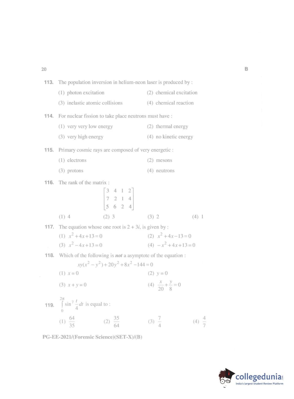 MDUCEE 2021 M.Sc. (Forensic Science) Set B Question paper with answer key pdf conducted on September 21, 2021 is available for download. The exam was successfully organized by Maharishi Dayanand University. The question paper comprised a total of 100 questions.